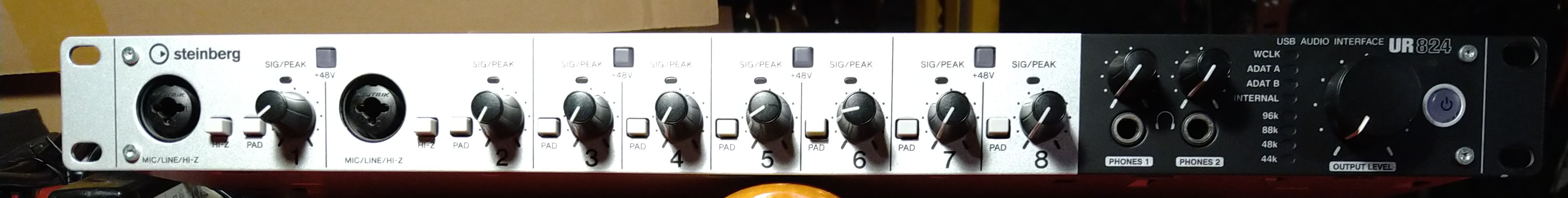 Je vends ma carte son UR 824 USB STEINBERG, utilisée en home studio, non fumeur, elle est en parfait état et fonctionne parfaitement, je la vends dans son emballage d'origine avec les câbles d'alimentation secteur, USB, et alimentation externe.Je n'ai plus la notice mais je l'enverrai par fichier joint à l'acquéreur, elle est également disponible sur le site STEINBERG.