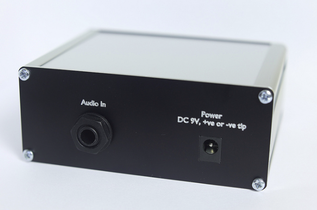 L’interface USAMO présente une entrée audio sur jack 6.35mm, une sortie MIDI, un trim et trois indicateurs lumineux pour la mise en marche, l’activité et le clipping.