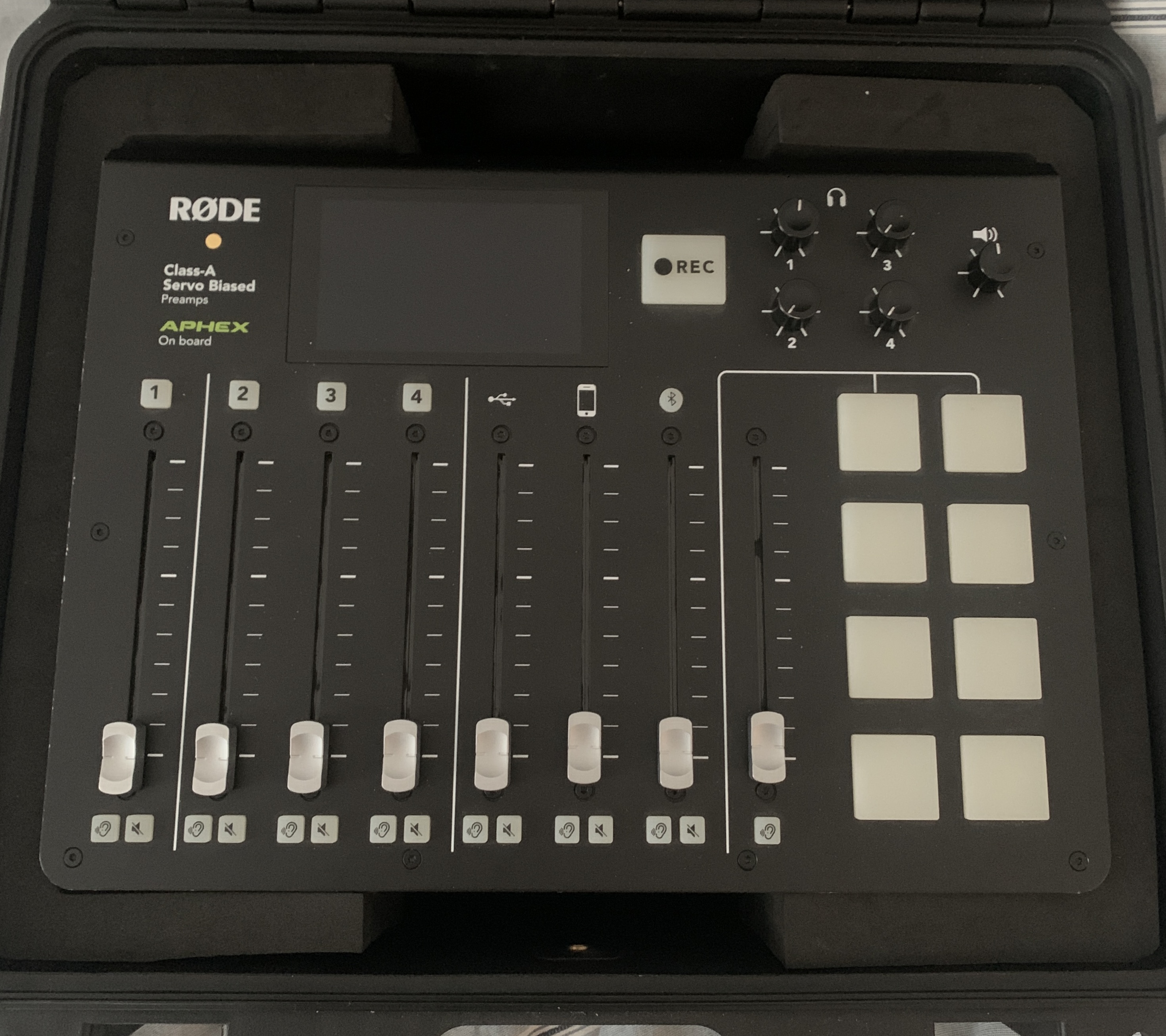 Le tout en parfait état esthétique (quelques fines abrasions sur le côté gauche du Rodecaster ) et de fonctionnement