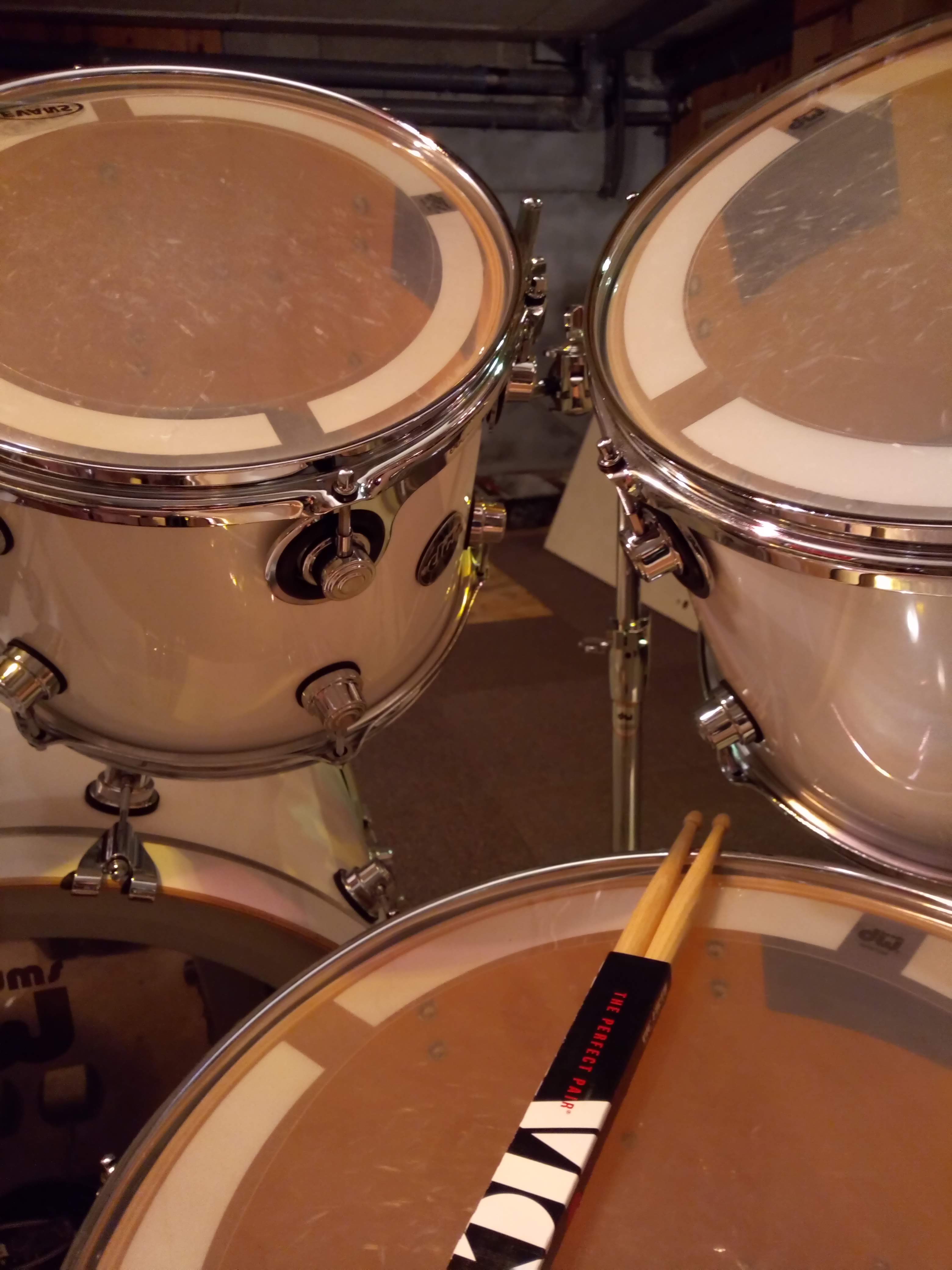 Kit de batterie DW de la série performance 6 fûts complète sauf cymbales / Couleur blanc lacquer / Millesime déc 2017 - Factures fournies - Ce kit comprend :- 1 x Caisse claire : 14"x6.5"