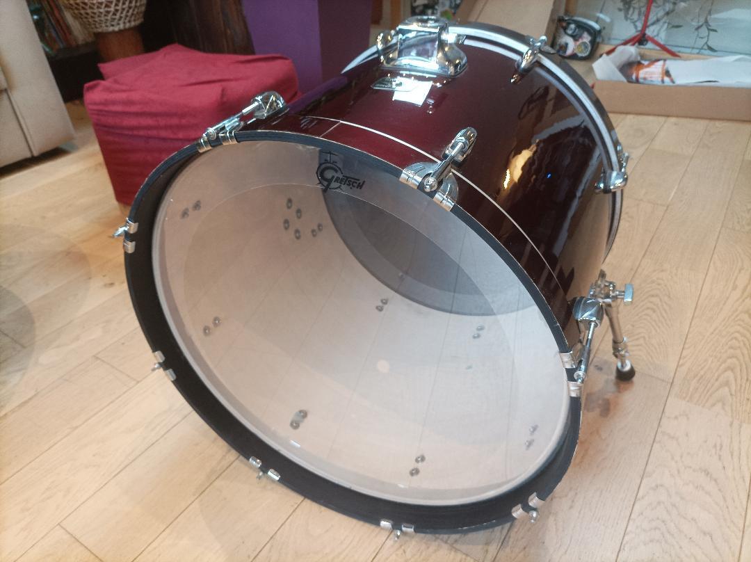 Vends grosse caisse Gretsch BlackHawk. Elle n'a jamais servi et est en parfait état malgré un défaut de fabrication eu niveau du placcage sur le dessous (voir photo)
