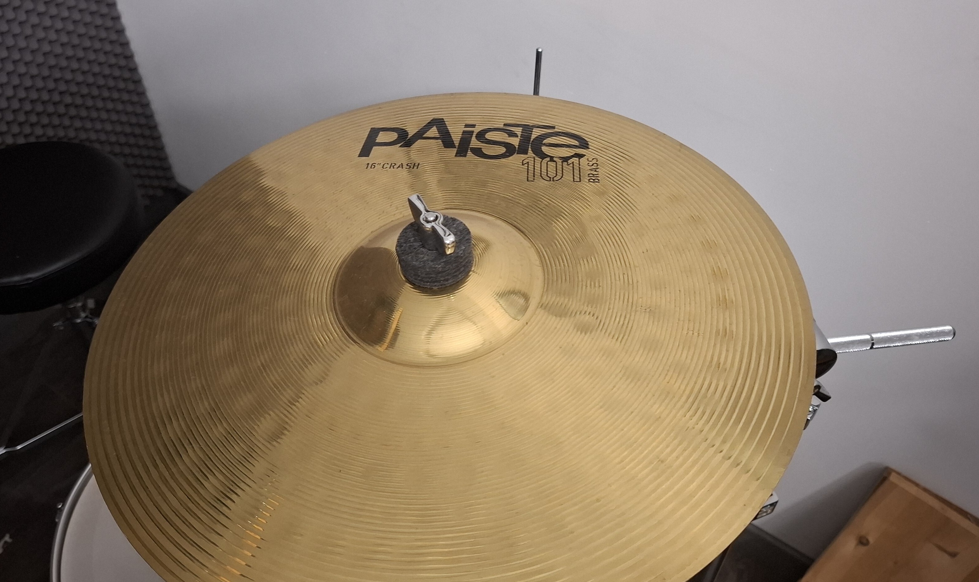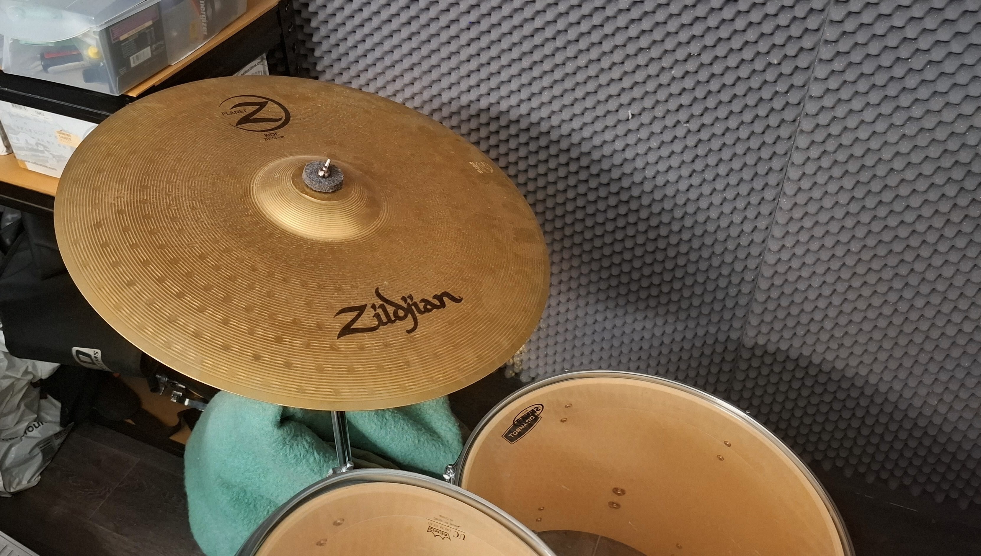 Upgradée avec: cymbales charleston Paiste PST3 13'', Crash Paiste 101 16", Ride 20'' Zildjian Planet Z, Tambourin de charleston Meinl et cloche Pearl PCB 6