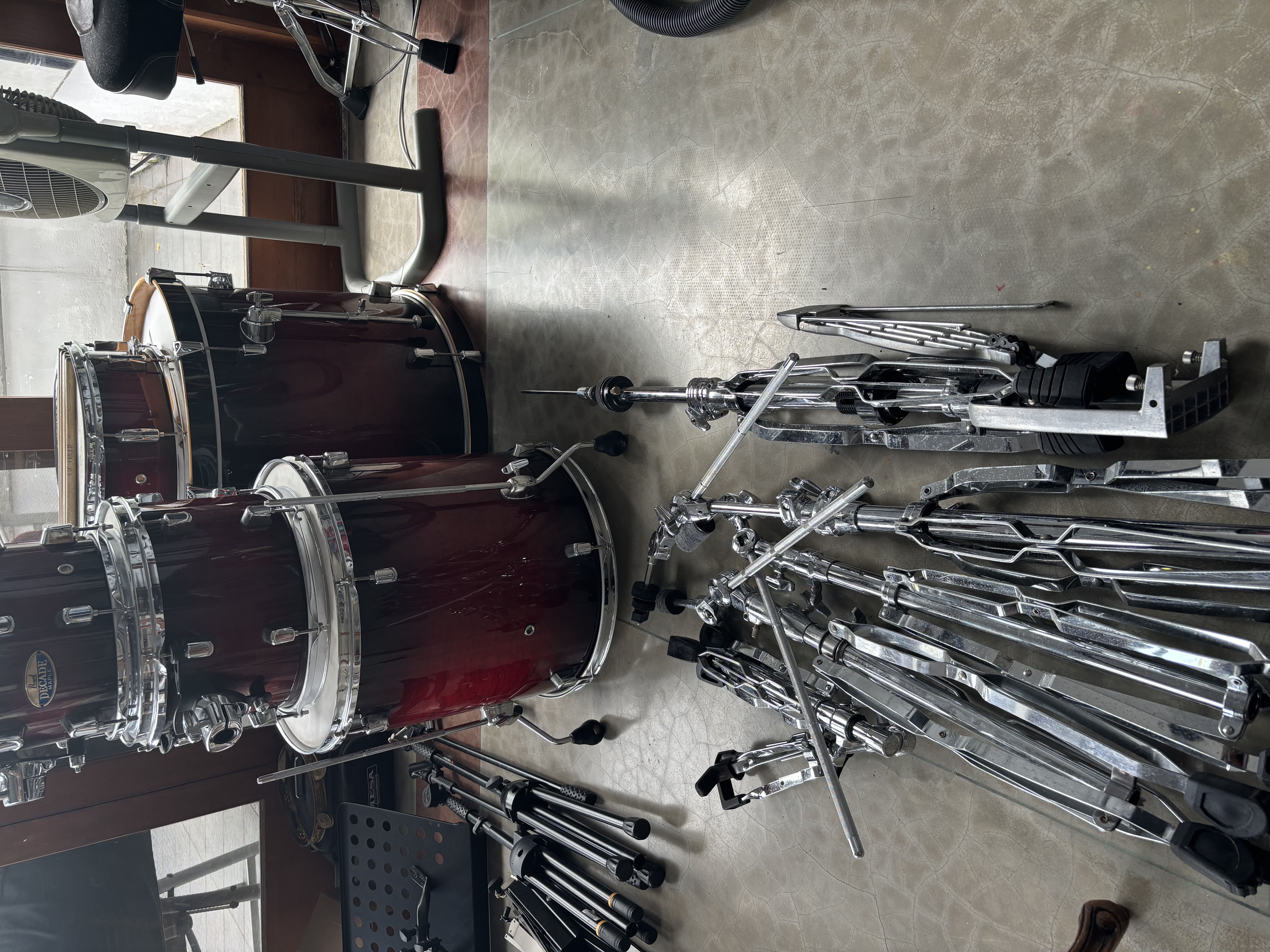 Vends ma batterie Pearl décade Maple rock en gloss deep red burst.