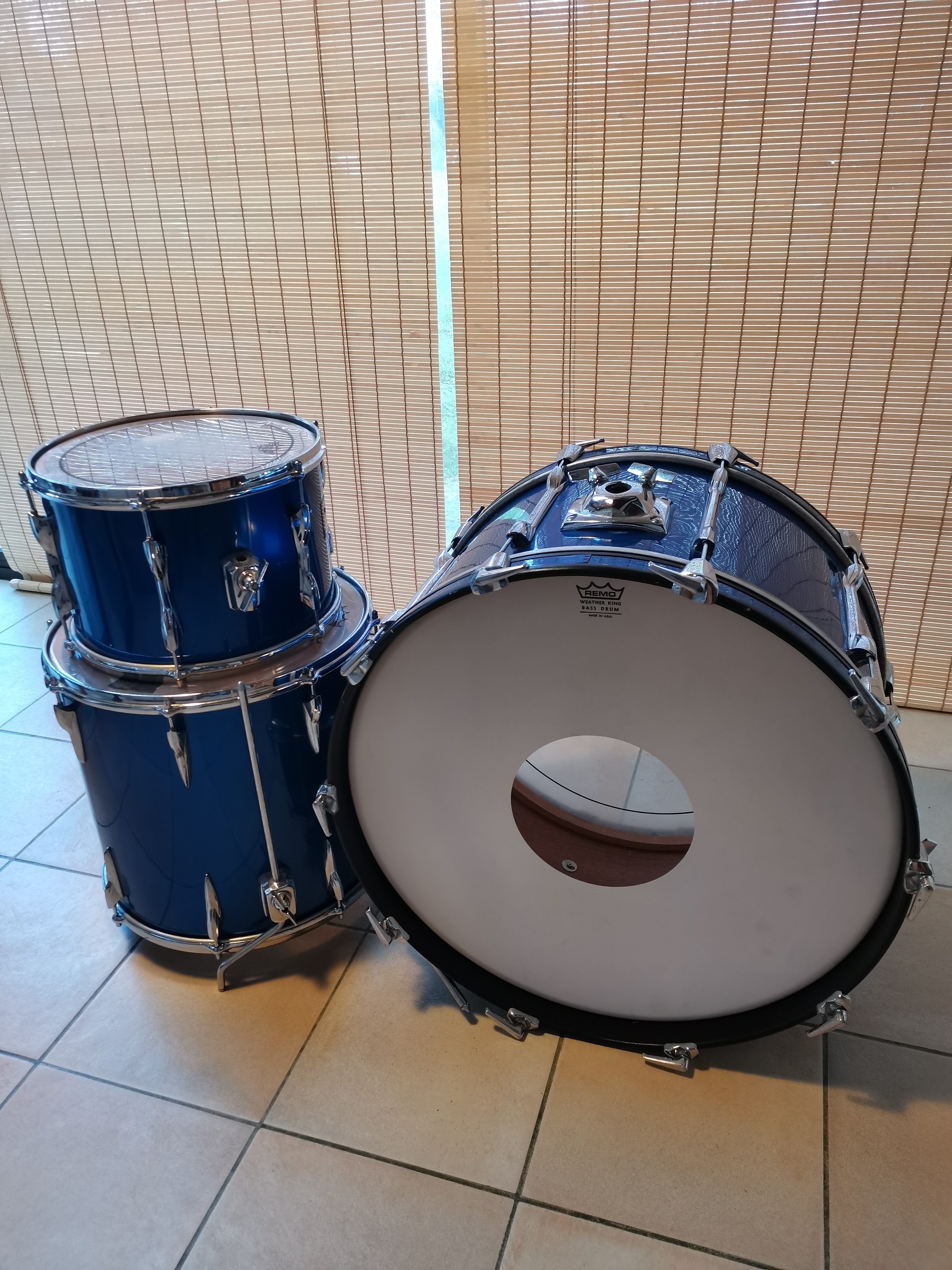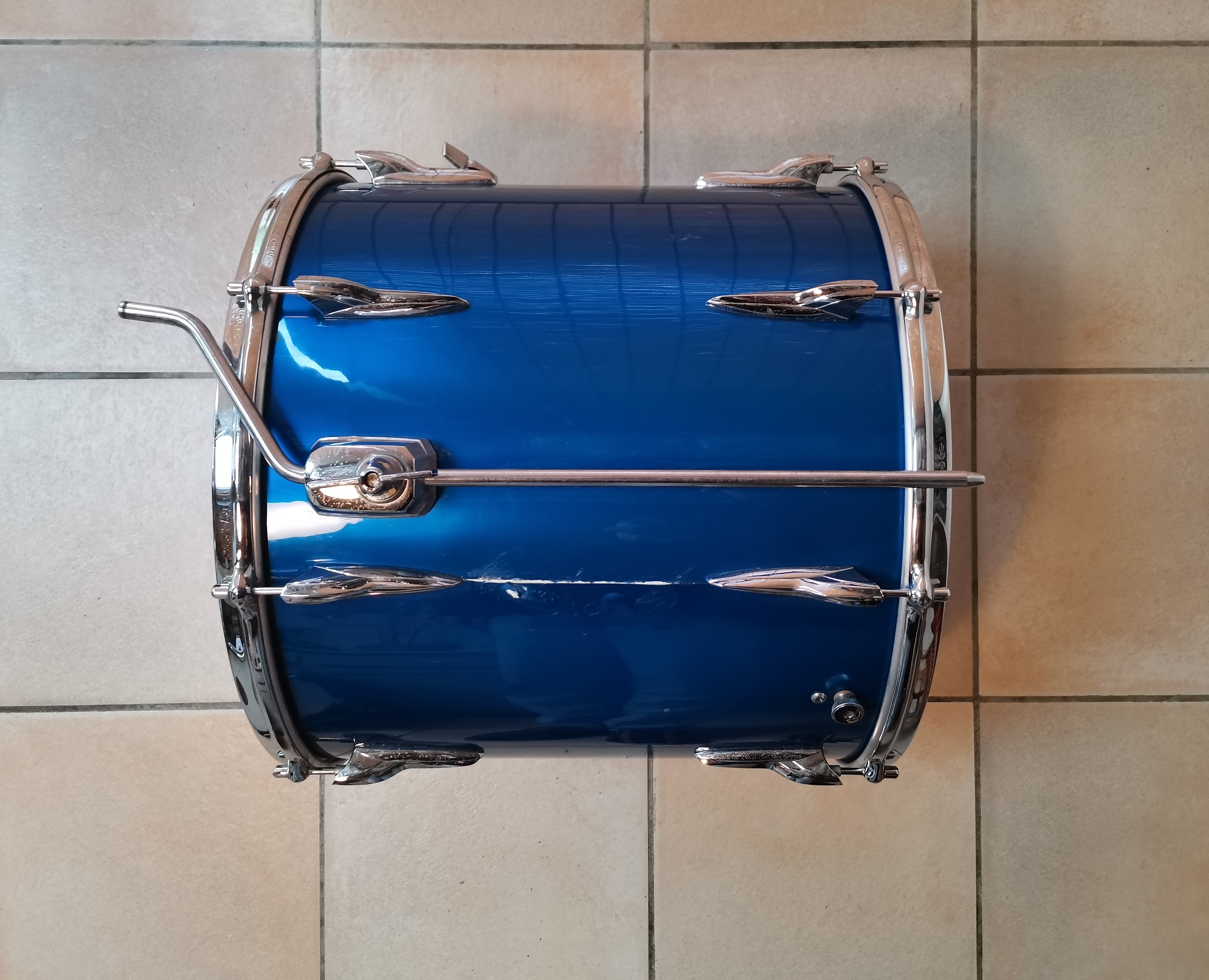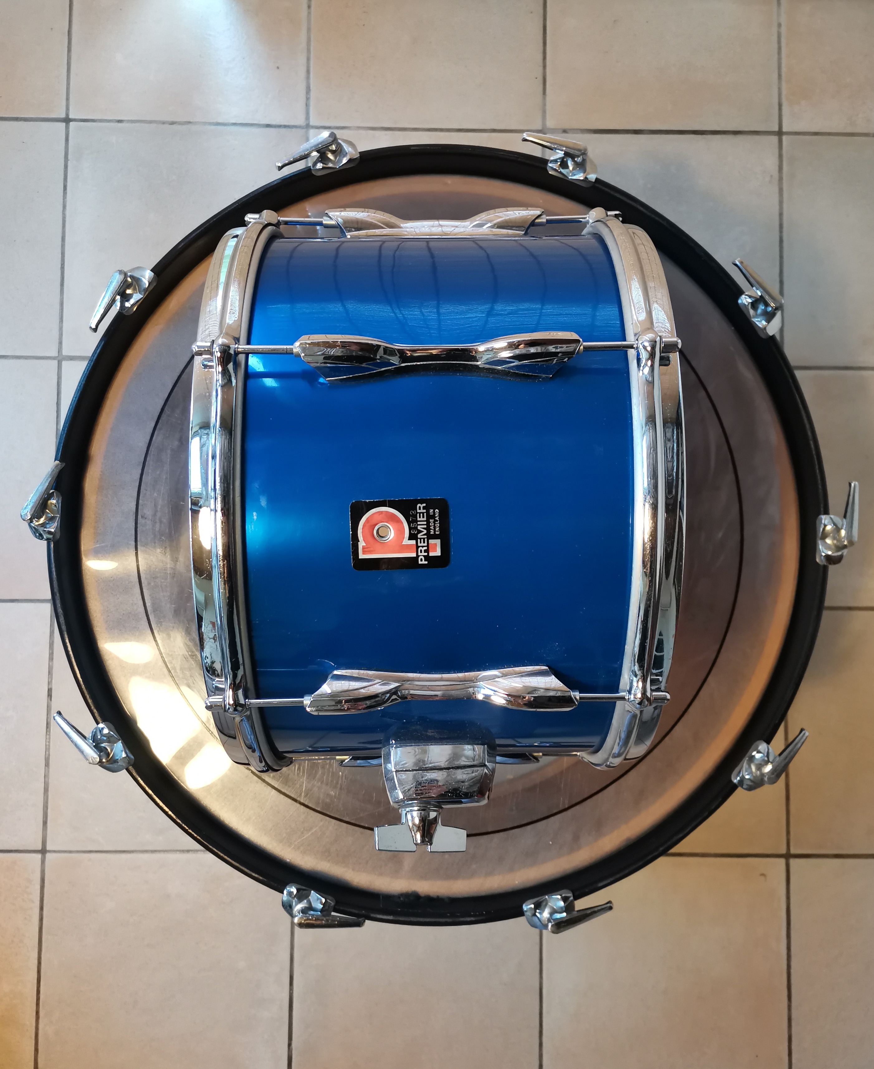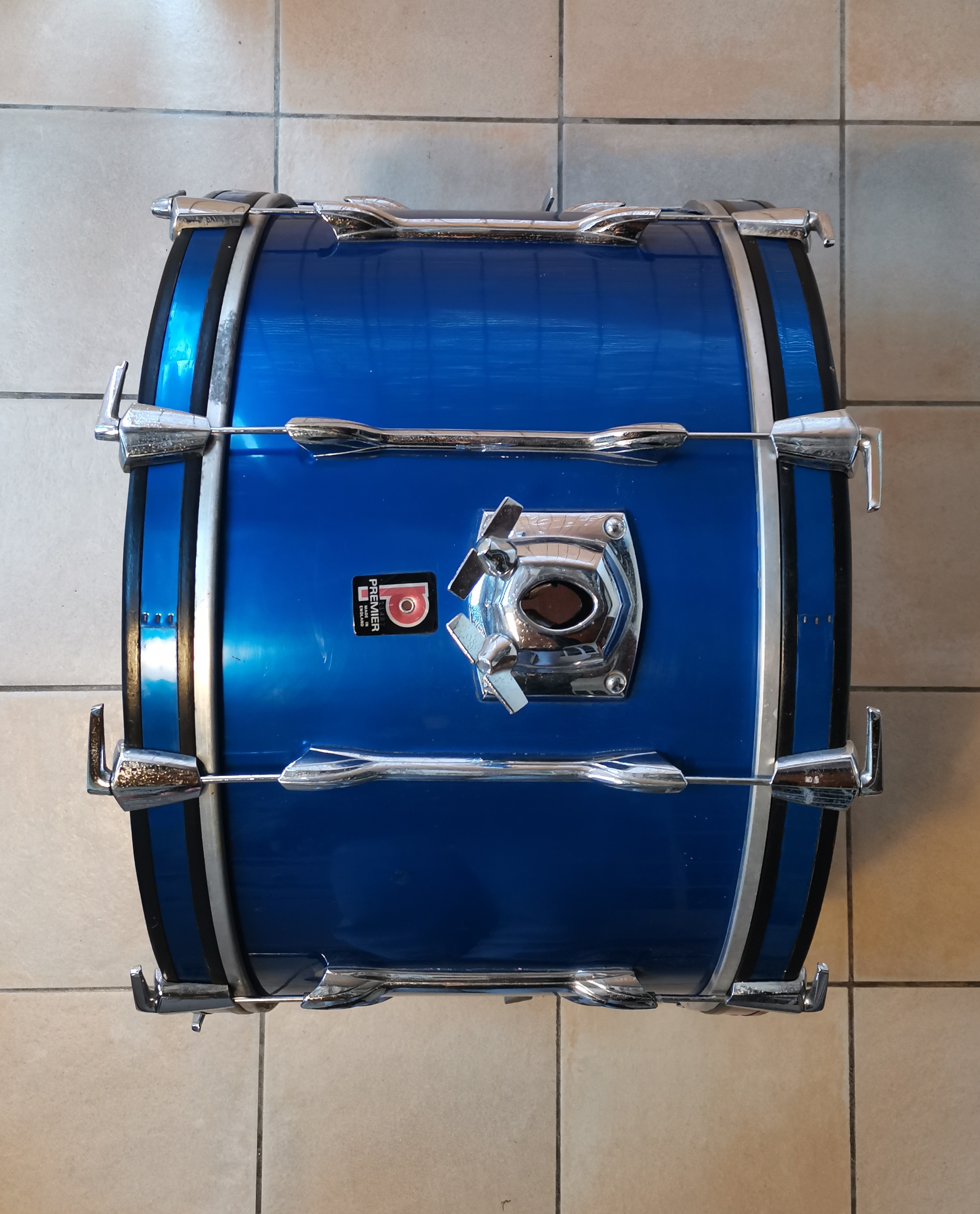 Afin d'investir dans du nouveau matériel, je vends cette Premier Elite de la deuxième moitié des années 70 en 24x14, 13x09, 16x16. Bouleau, renforts de chanfrein. Sourdines sur les deux toms. Rhodoid en état correct. Chromes piqués, bon fonctionnement de l'accastillage. Peaux de la grosse caisse et du tom de 13 en état moyen, peaux du tom de 16 en bon état. Kit utilisé très ponctuellement de 2019 à 2024. Je l'ai toujours trouvée fiable, facile à accorder, et sonnant à mon goût. Les tirants de règlent avec un tournevis plat.Attention, il manque un pied de grosse caisse de diamètre non standard. Il faut donc le chiner sur Ebay ou Reverb (mais c'est rare, ce sont les Premier Lokfast), soit bricoler un truc avec les diamètres actuels (10,5 et 12mm ?) car on se situe ici entre les deux, ou encore changer les coquilles des pieds de grosse caisse.