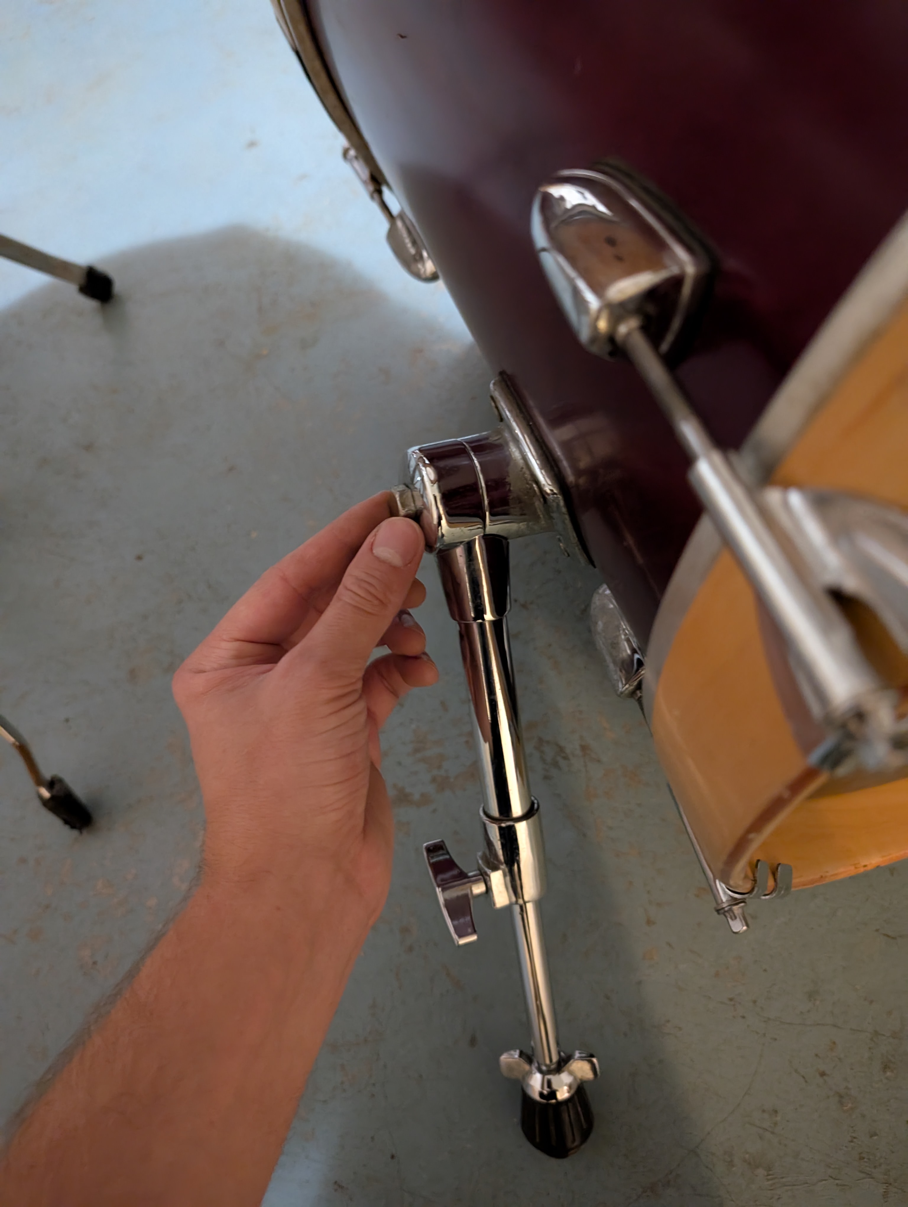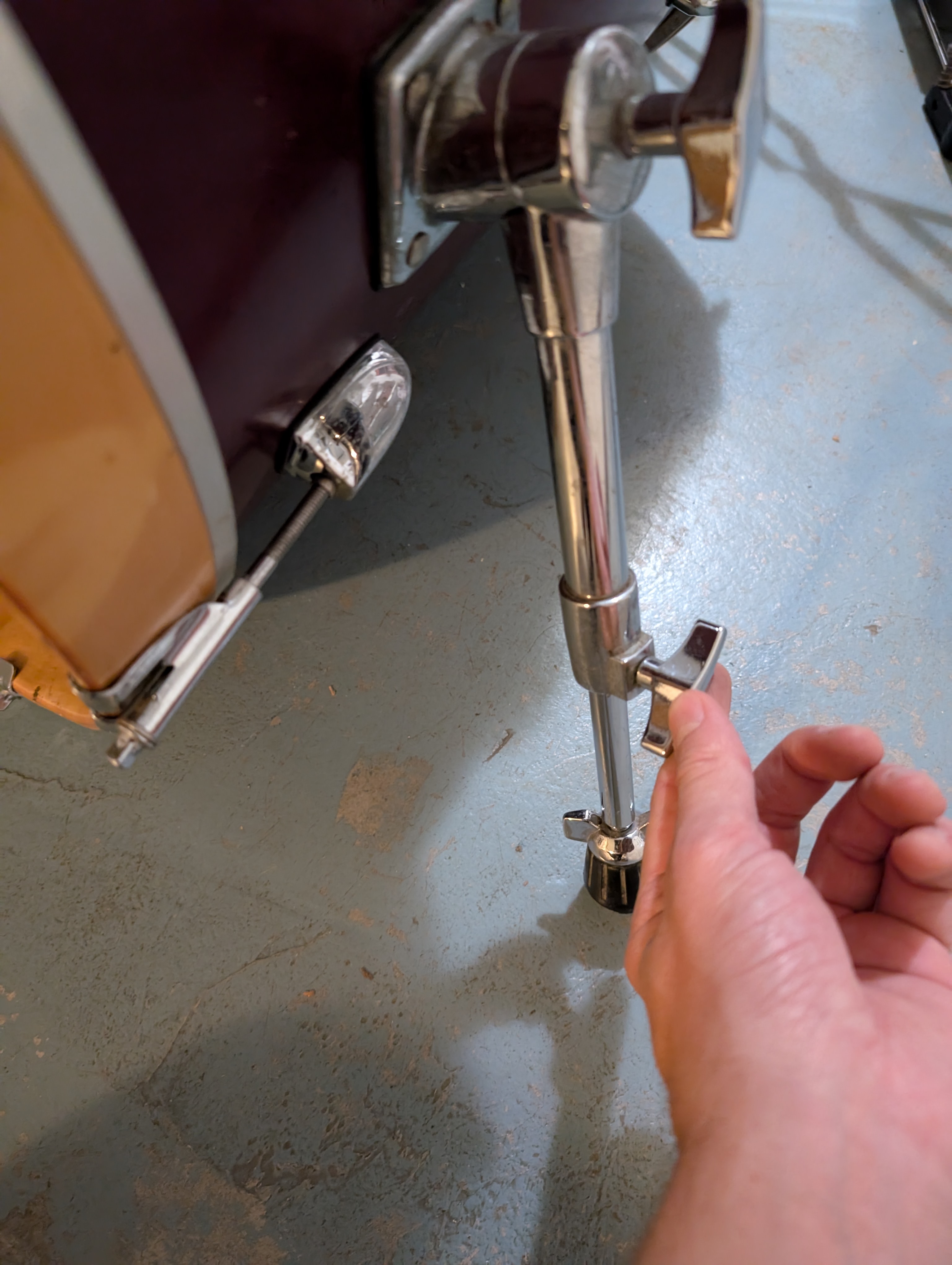 - le pas de vis de serrage pour déplier/replier le pied de grosse caisse droit tourne dans le vide (photo 6)