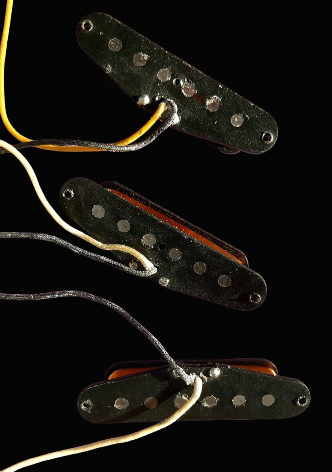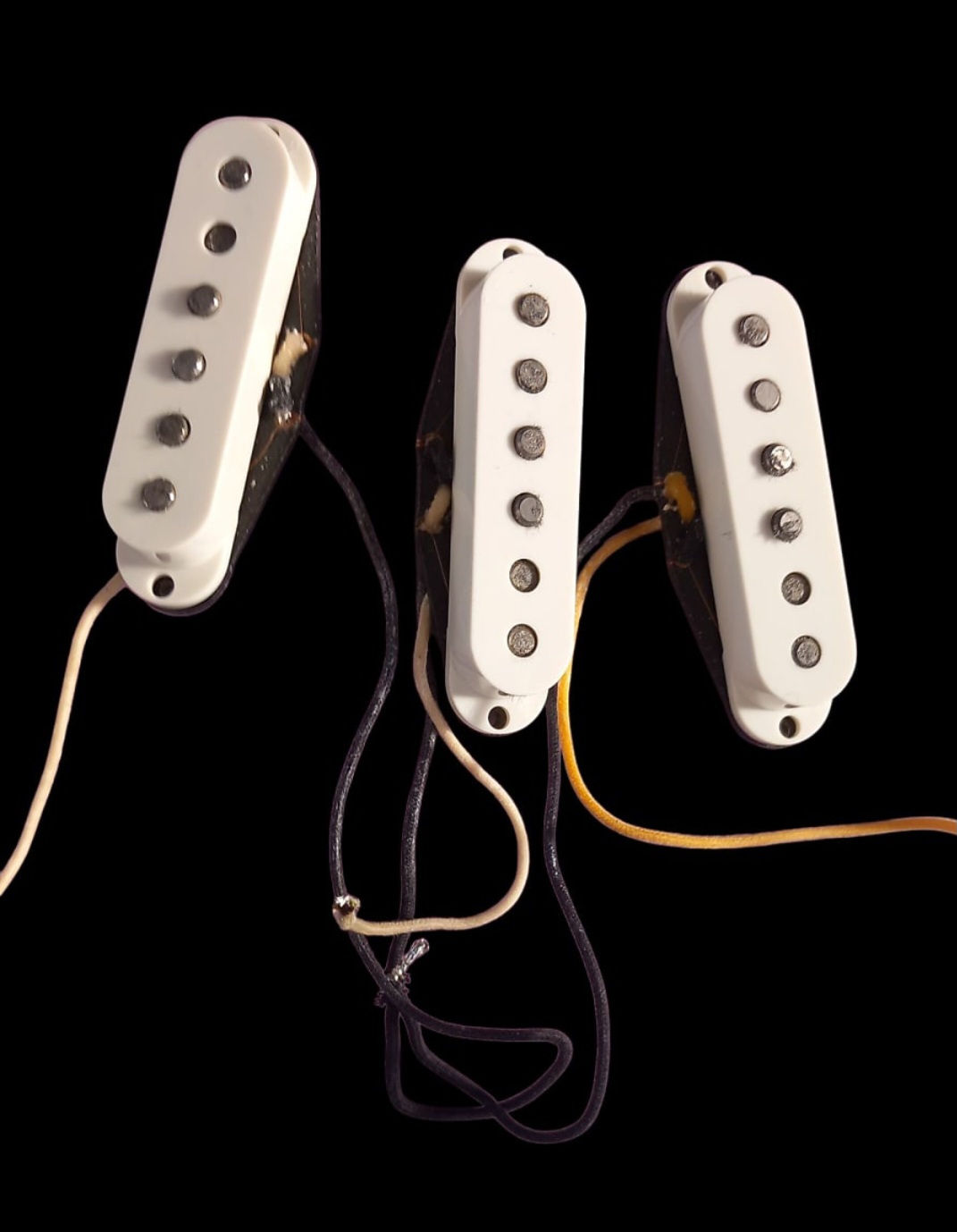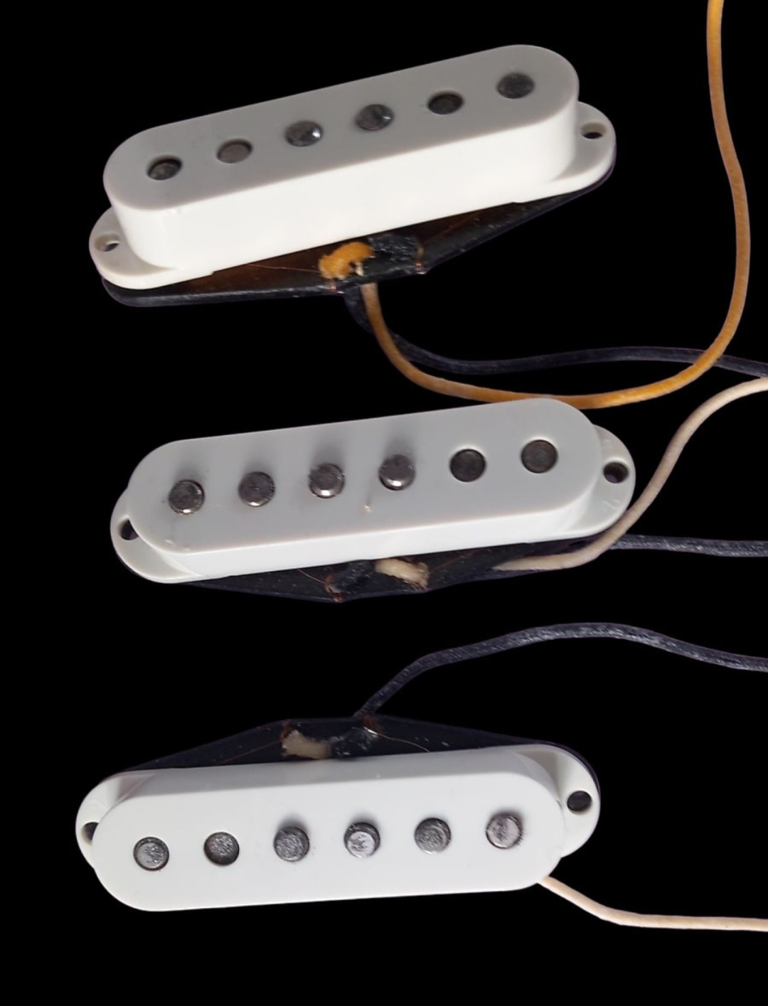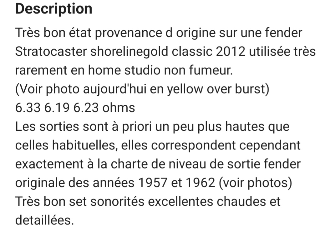 Set fender provenant d'une Stratocaster 2012 voir photosLes micros à simples bobinages Fender Pure Vintage '57/'62 Strat ont été créés à partir des modèles d'une guitare Stratocaster de 1963. Ils reproduisent le son et les sensations des Strat vintage, avec des aigus éclatants et des graves chaleureux. De la construction vintage des bobines jusqu'au câblage en tissu d'époque, tous les micros Fender Pure Vintage sont bobinés selon des spécifications précises afin de vous faire profiter du son et des performances des modèles traditionnels de Fender avec une parfaite authenticité.