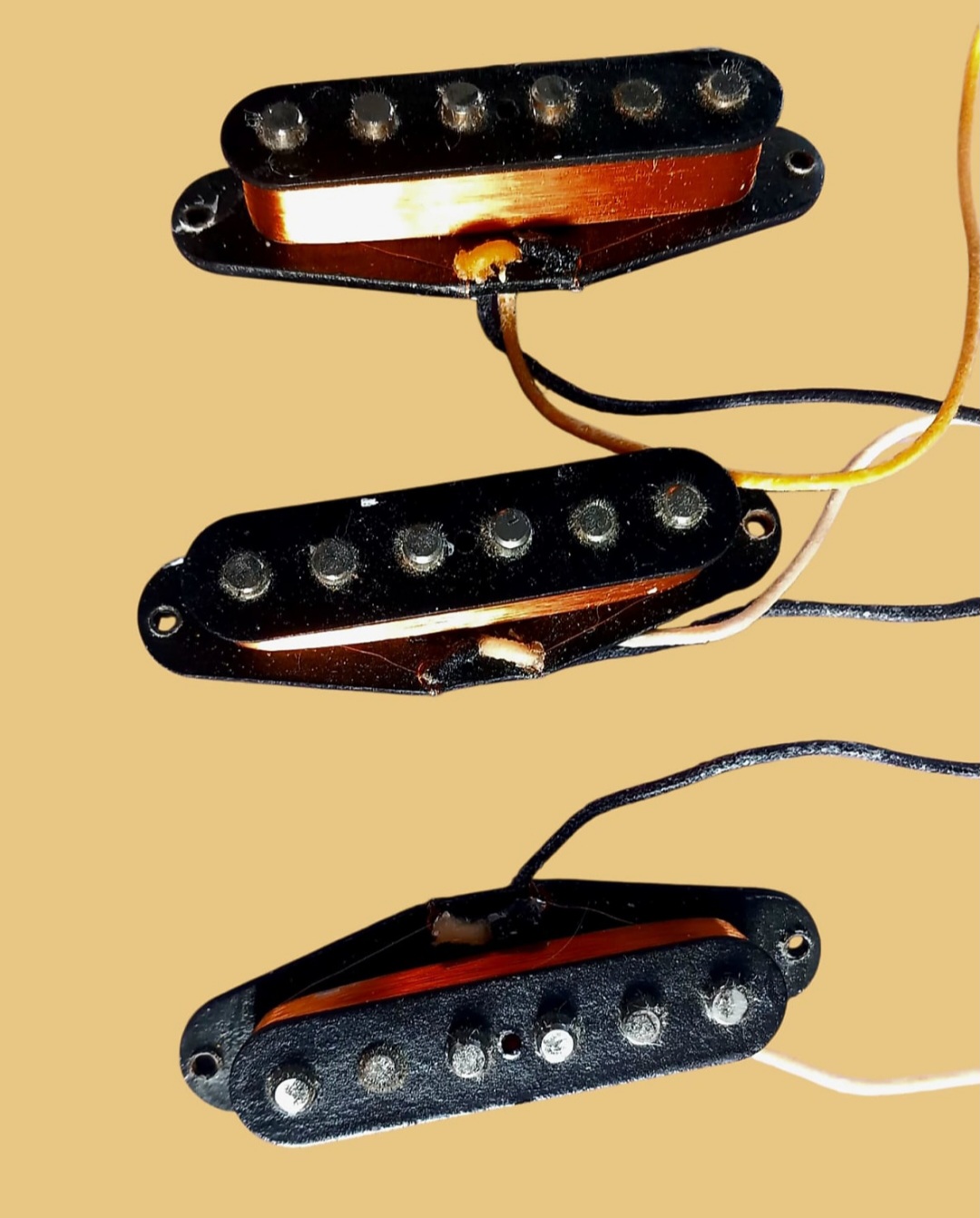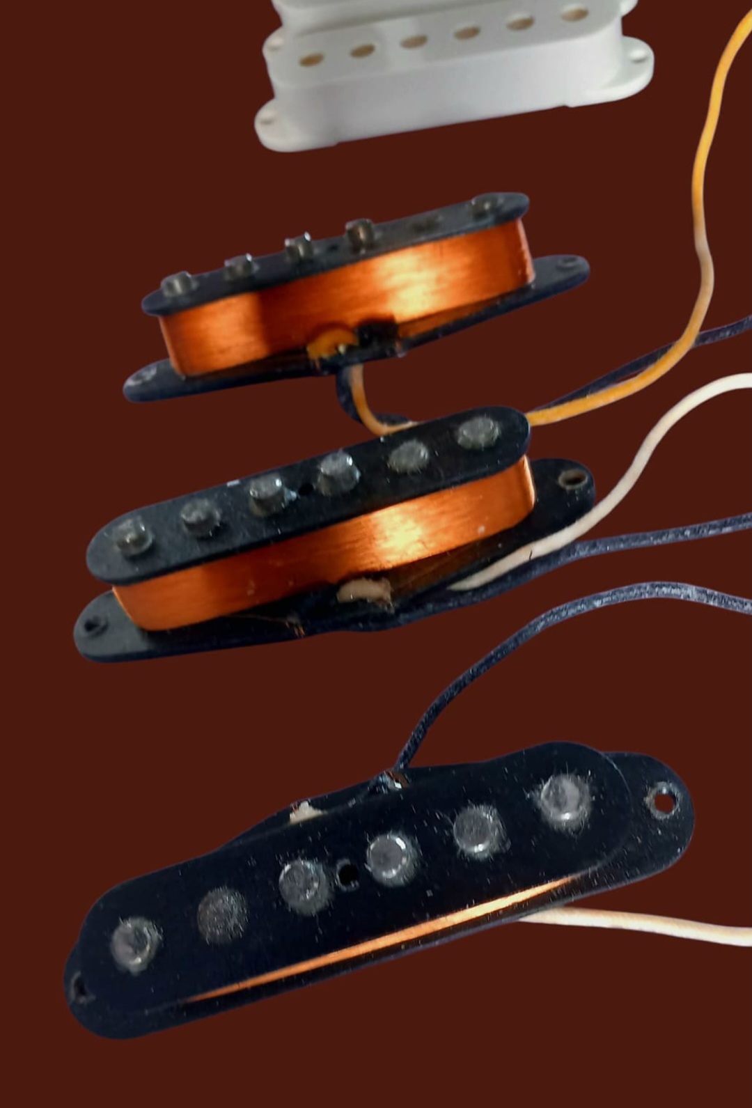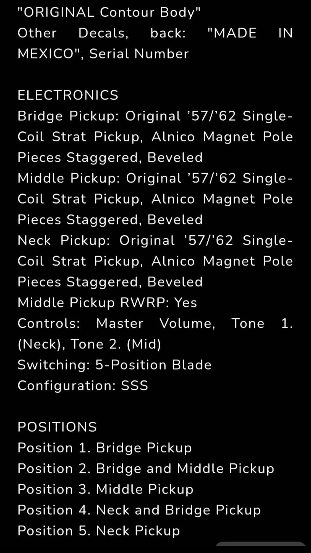 Set fender provenant d'une Stratocaster 2012 voir photosLes micros à simples bobinages Fender Pure Vintage '57/'62 Strat ont été créés à partir des modèles d'une guitare Stratocaster de 1963. Ils reproduisent le son et les sensations des Strat vintage, avec des aigus éclatants et des graves chaleureux. De la construction vintage des bobines jusqu'au câblage en tissu d'époque, tous les micros Fender Pure Vintage sont bobinés selon des spécifications précises afin de vous faire profiter du son et des performances des modèles traditionnels de Fender avec une parfaite authenticité.