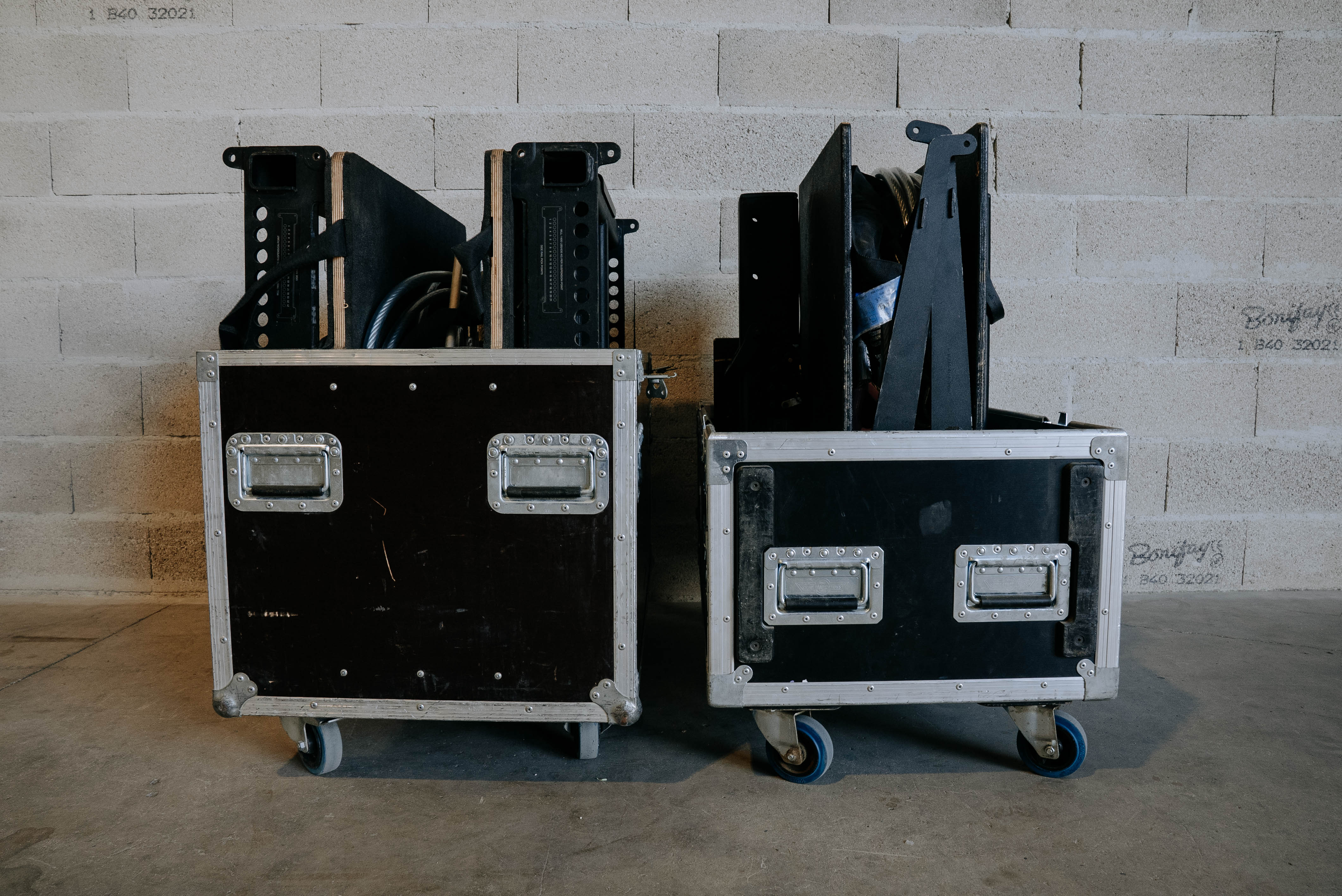 Têtes en partie sur flycases et dolly métalliques