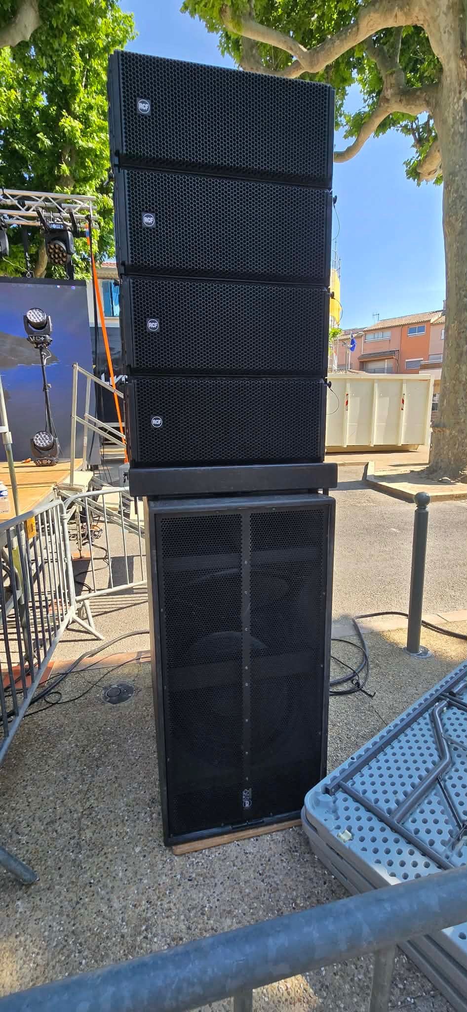 Bonjour je vend mon systeme son rcf composé de 16 enceintes Line array Hdl-30a rcf, équipée avec protection pluie et 4 caisson de basse tts-56a rcf ( 2x21 pouces ). Le système est composé de 3 chariot pour les enceintes. J’ai aussi les 2 bumpers. Le système Line array est tout câblé ( xlr, powercon et rj45 ).Les caissons de basse sont équipés de housse de protection ainsi que les plaque pour protéger les grilles.