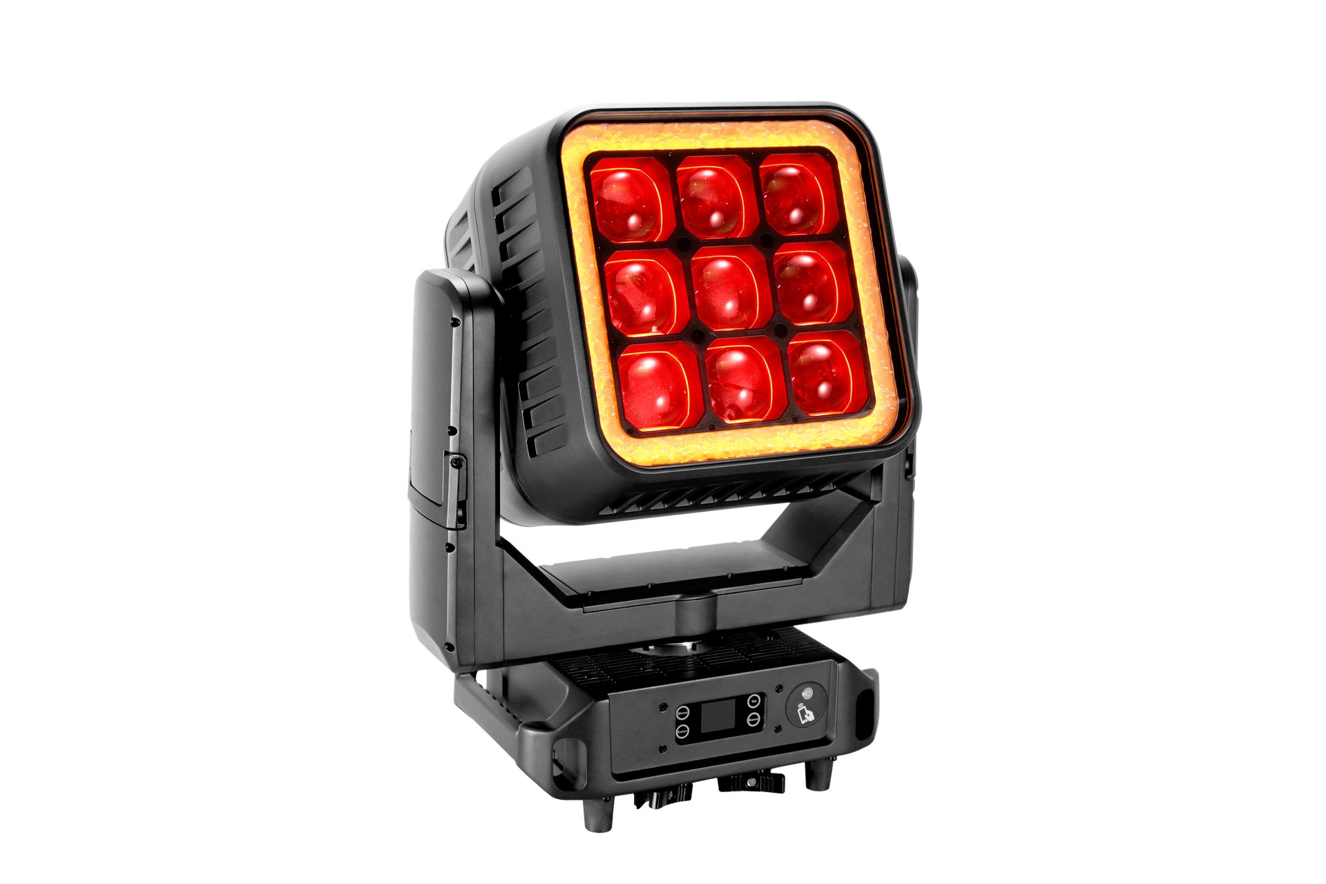 - Face A (wash) : 9 LEDs RGBL de 90W + 84 LEDs blanches (puissance non communiquée)