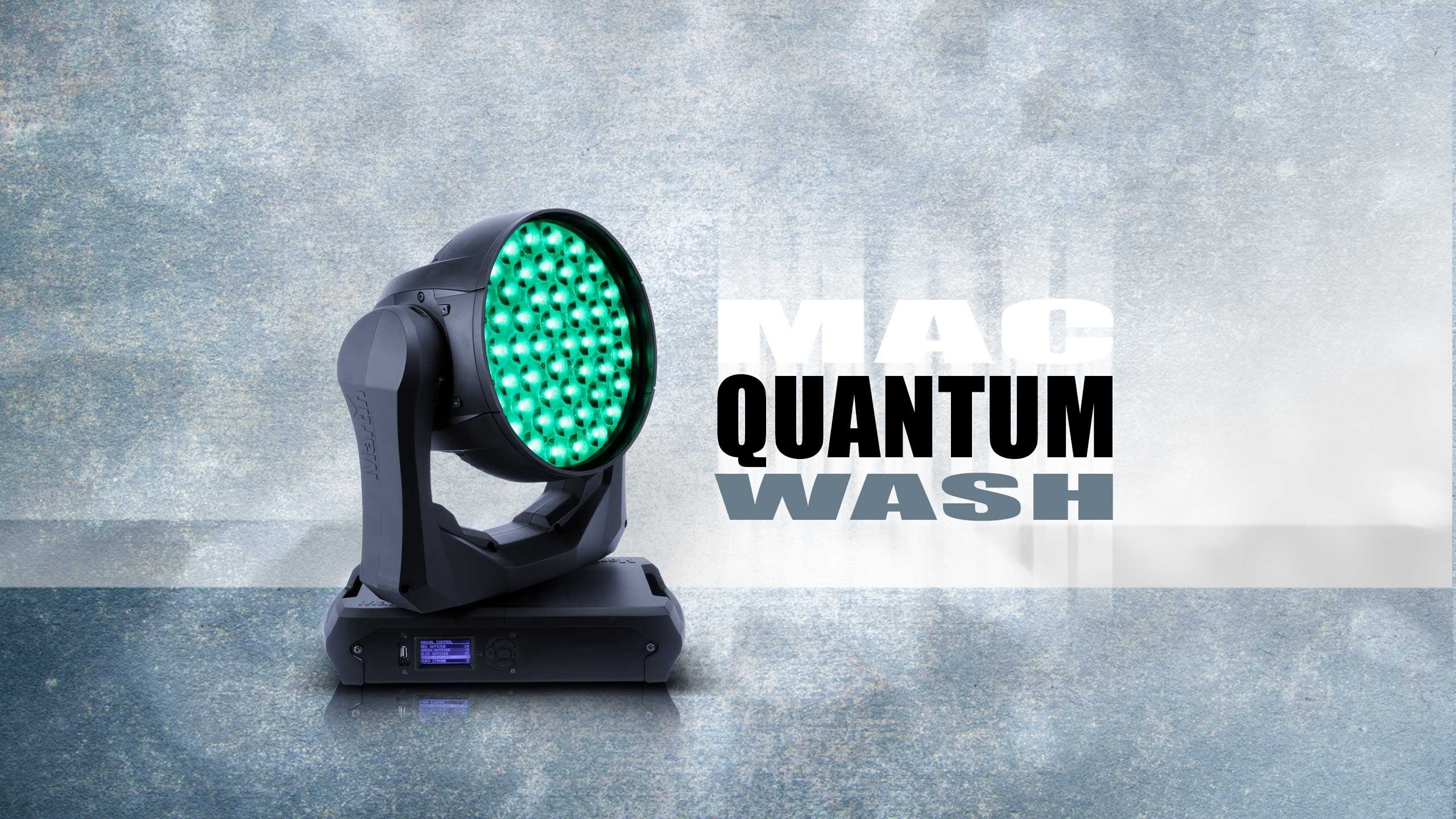 Le Mac Quantum Wash est équipé de 50 LEDs 15W RGBW, permettant d’obtenir un flux de 15400 Lumens, le nouveau système équipant ce projecteur permet un effet banane, un effet de morphing et de rotation du faisceau. Il dispose également d’un zoom au 1:6, proposant une ouverture réglable de 11 à 59° pour un effet wash large.