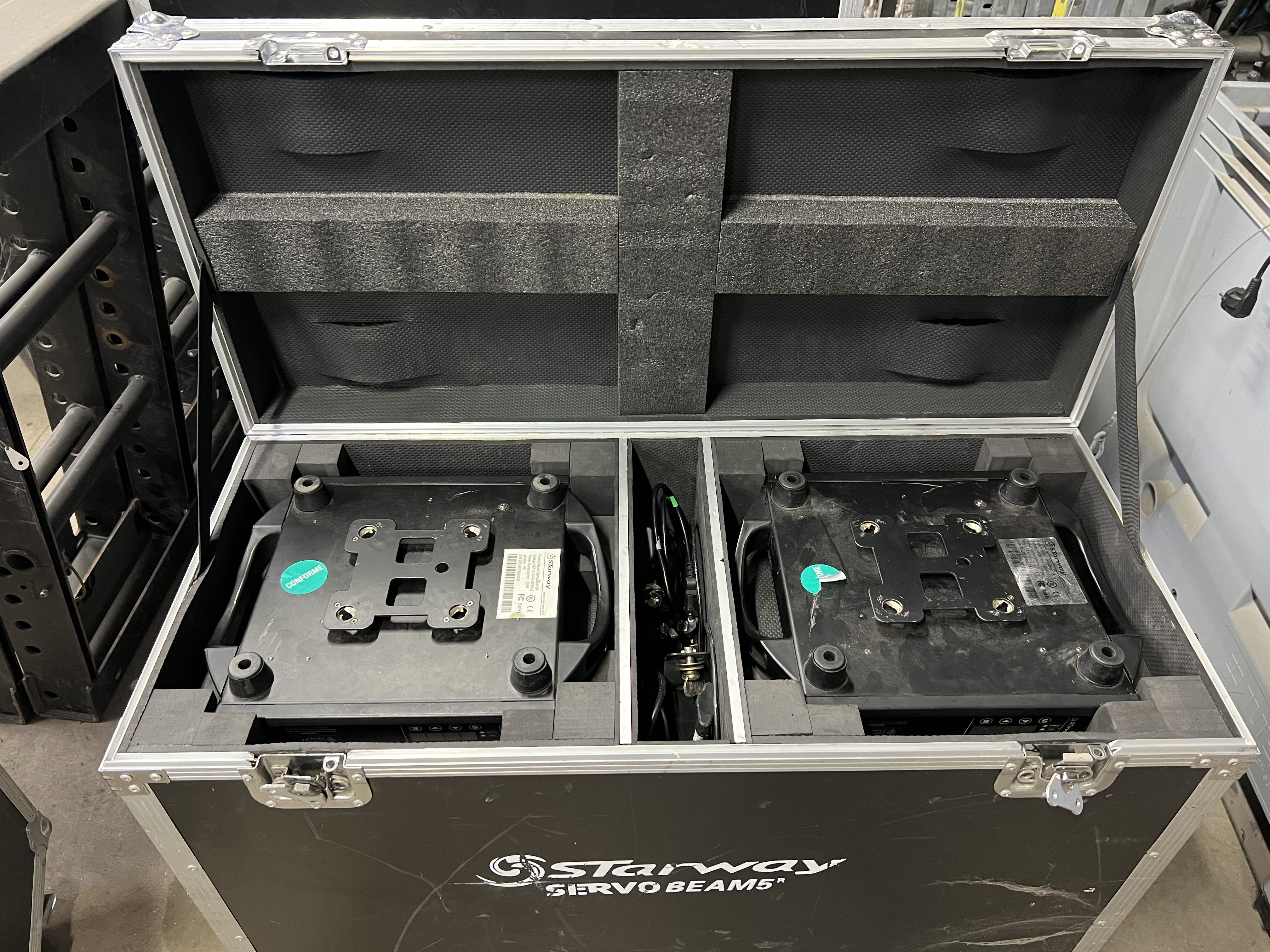 Prix pour un flight case de 2 SERVOBEAM 5R avec alimentation, élingue et crochets.