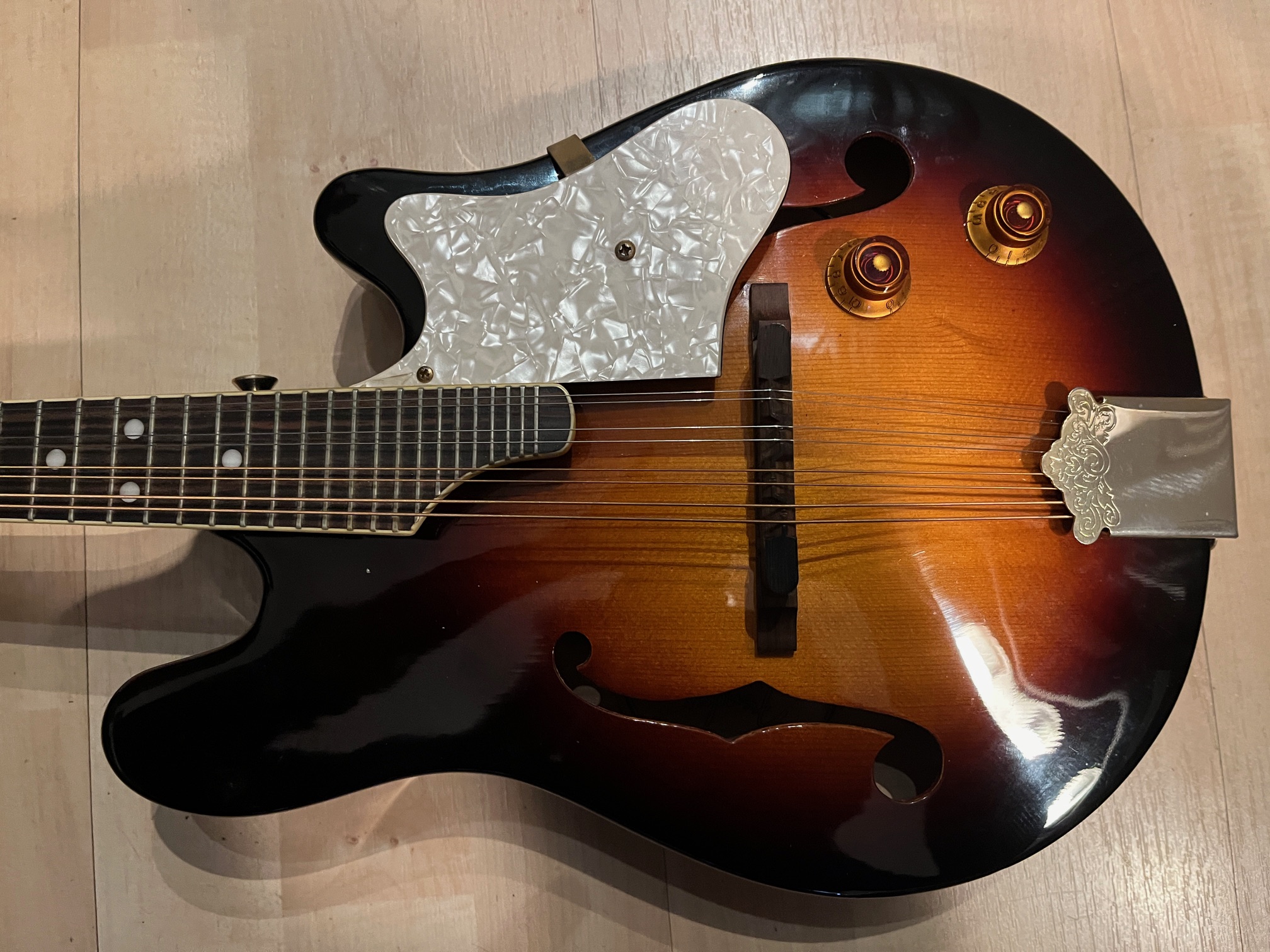 Mandoline électrique, un volume une tonalité, un petit "pet" sur le coté, rien de grave.