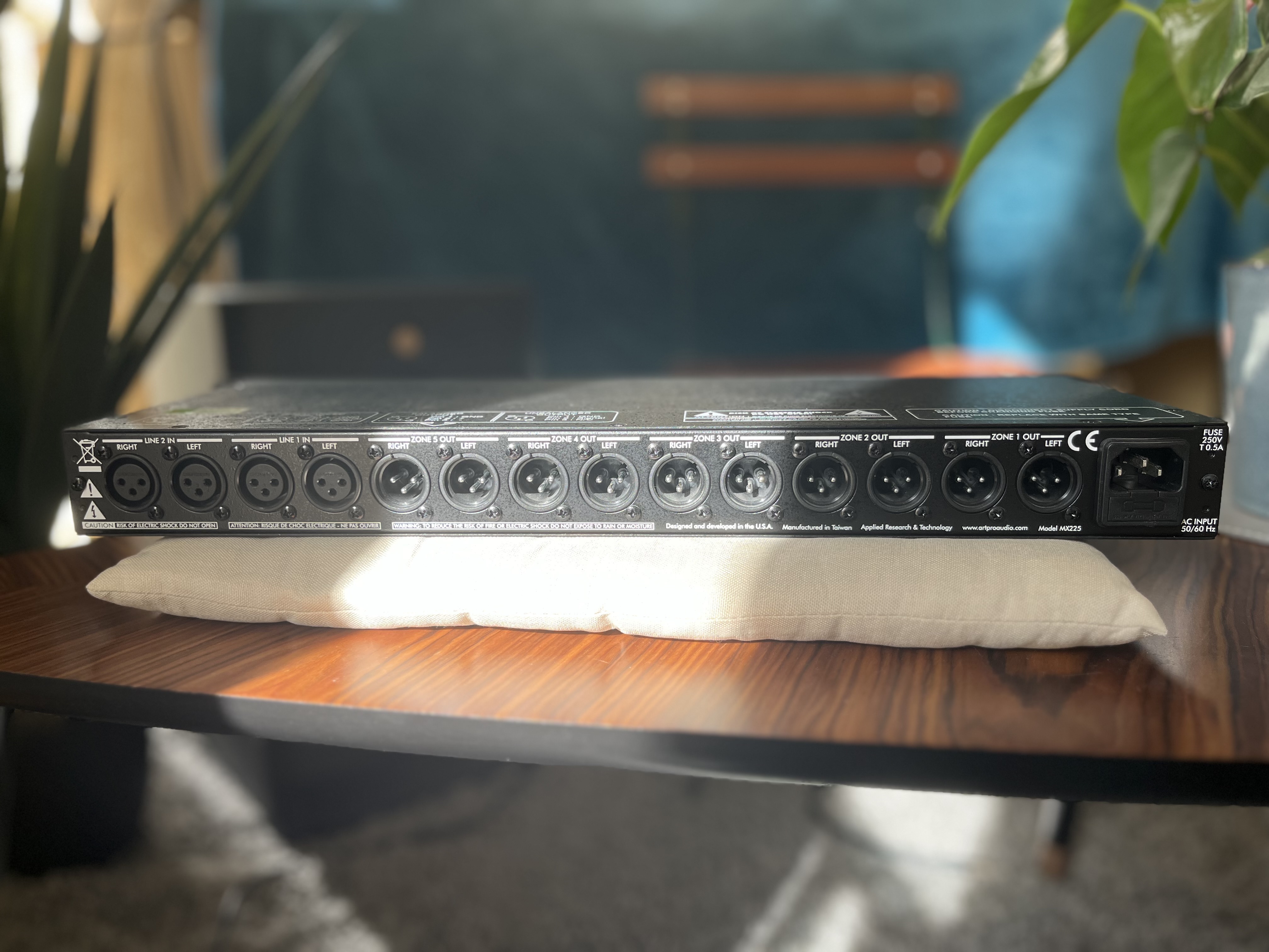 Zoneur analogique ART MX-225 entièrement fonctionnel. Permet de diviser 2 canaux stereo en 5 destinations stereo, avec contrôle de volume individuel pour chaque canal stereo en sortie.J’ai testé toutes les entrées et sorties, RAS.