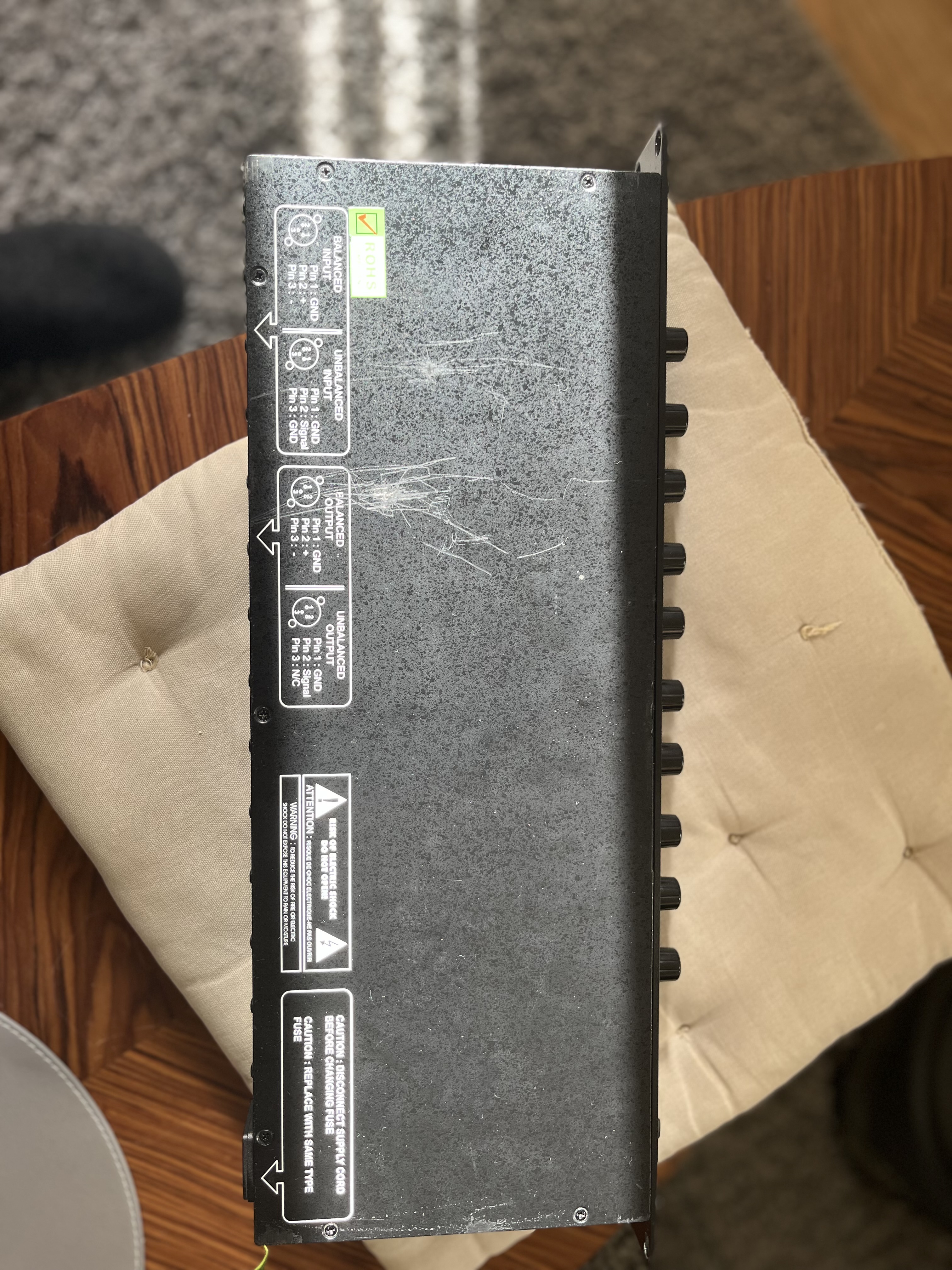 Le transformateur fait vibrer le chassis de manière légèrement audible si tenu en main (normal pour du rack de cette gamme). Plus aucune vibration si vous posez l’appareil sur une surface plane ou le montez sur un rack. Le son des sorties n’est pas affecté.