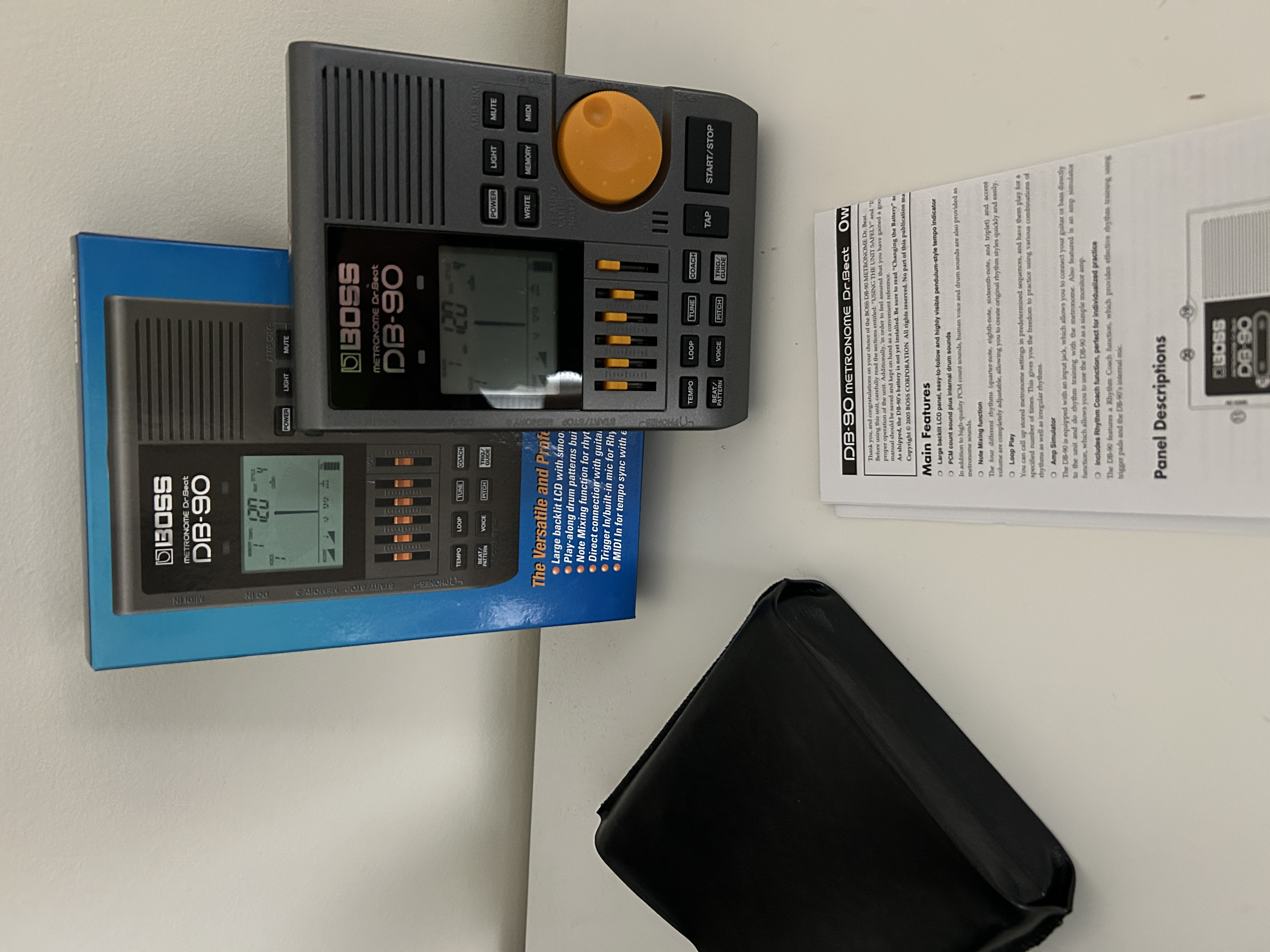 Avec manuel papier sa housse en simili cuir, l’adaptateur pour pied de micro. État esthétique comme neuf