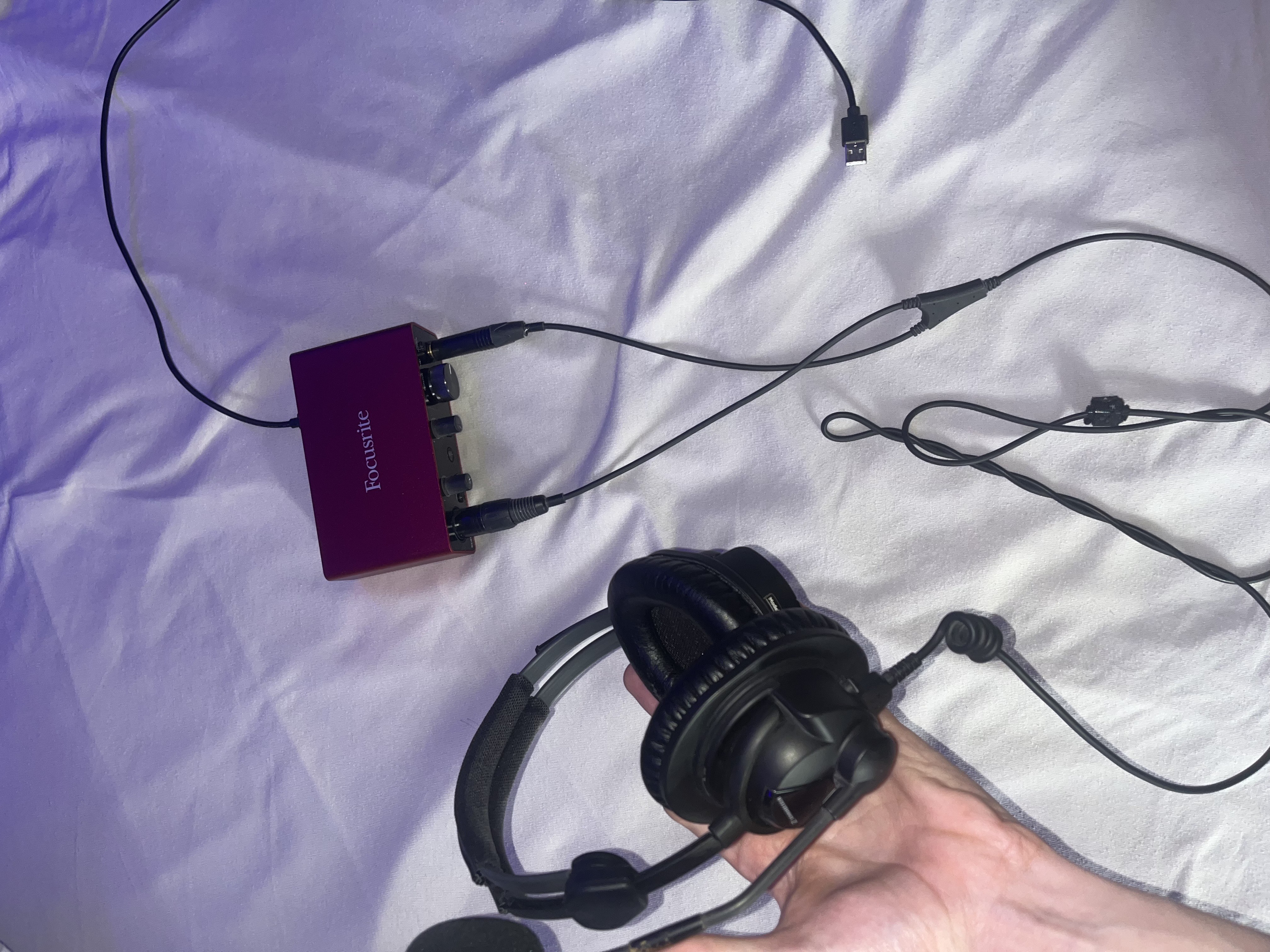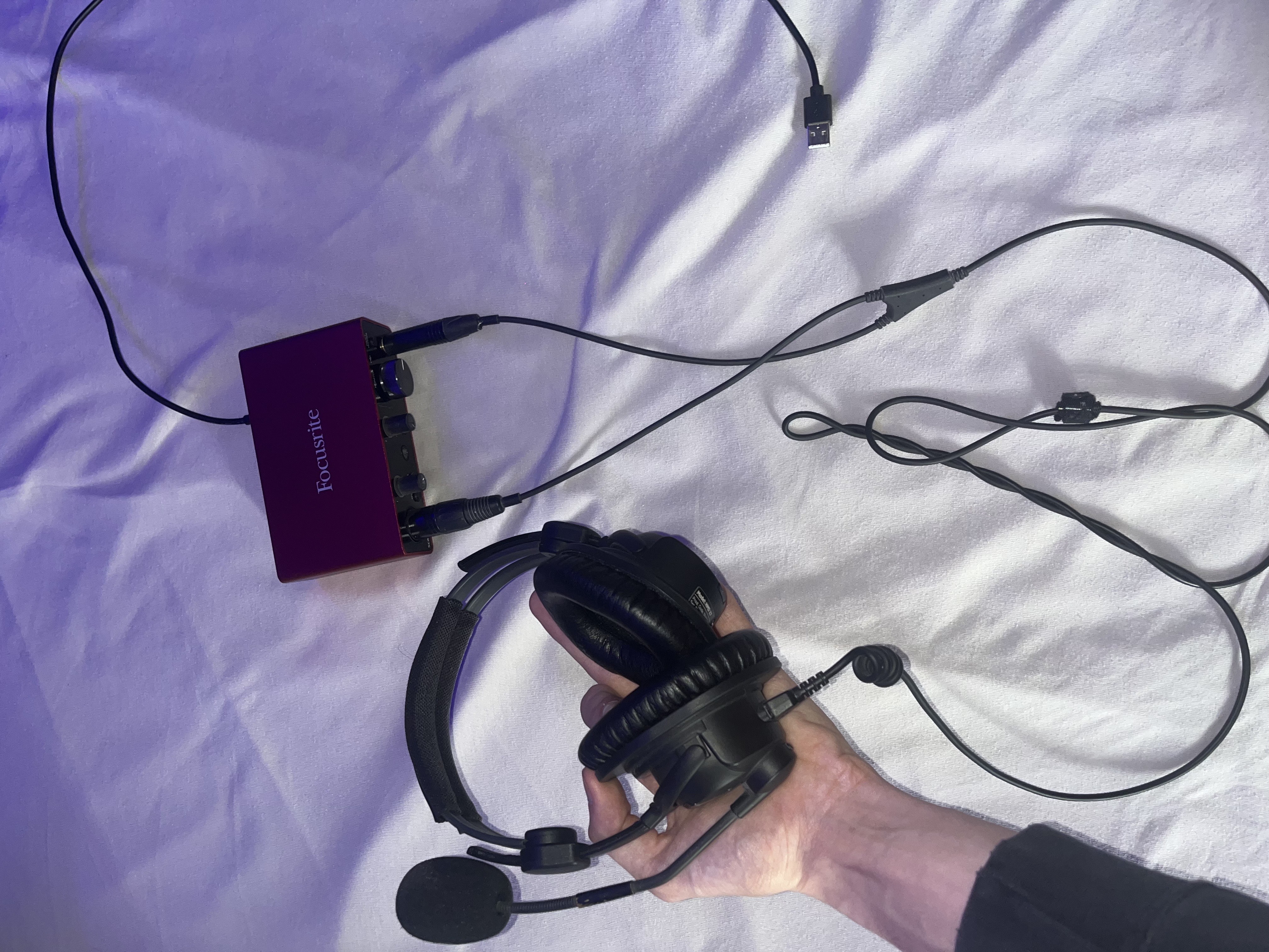 Je vend mon casque qui est en très bon état, tout le pack micro casque, carte son et câble sont nickel, simplement une usure légère que l'esthétique du casque à certain petit endroit discret mais rien d'arracher ou de rayer, juste de la décoloration d'un petit bout sur le micro du casque.Je vend le casque micro seul ou en pack avec sa carte son Focusrite Solo 3RD et son câble XLR obligatoirement nécessaire puisque sans ca le micro casque ne peut pas être branché.