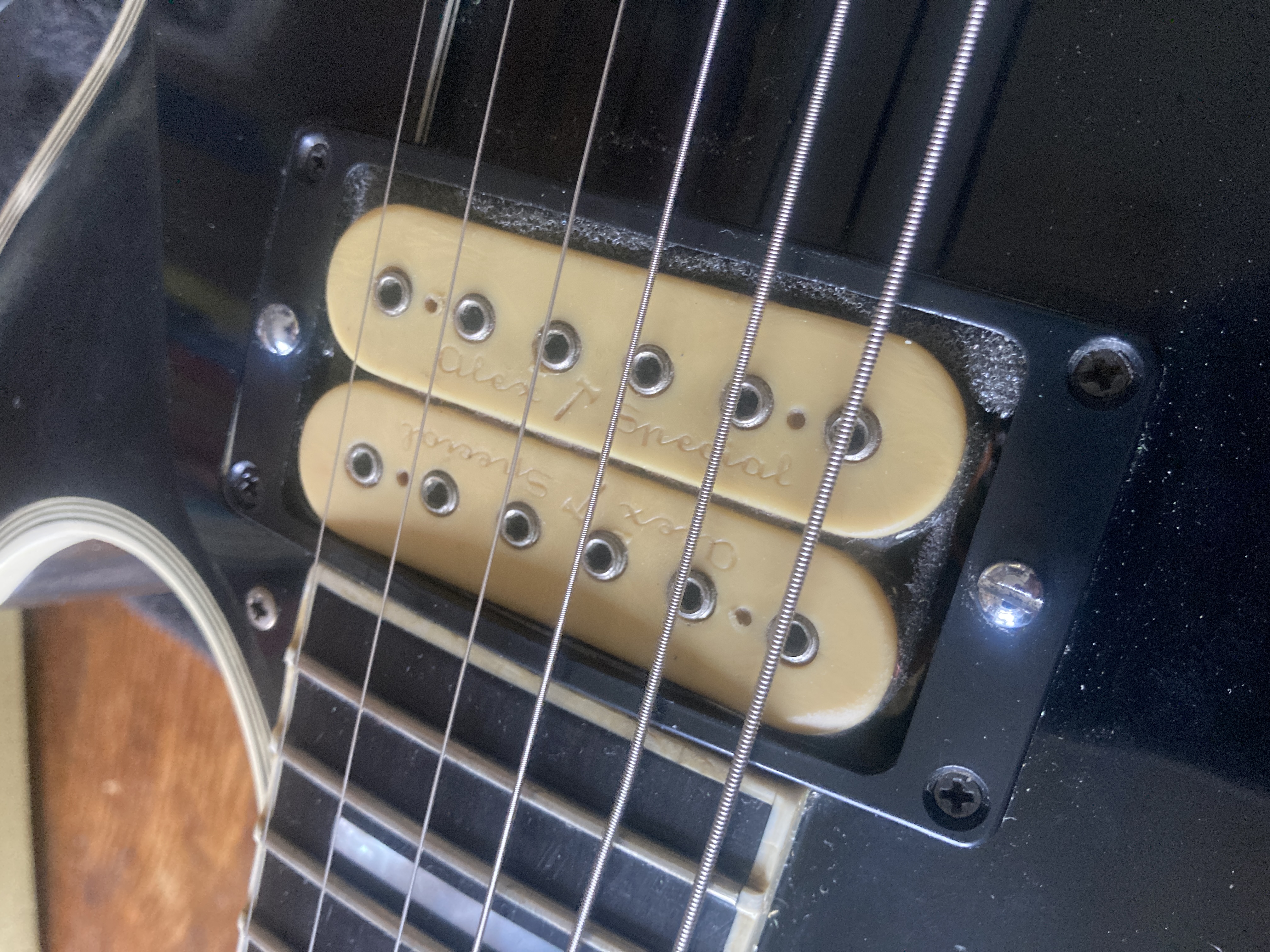 Bonjour à tous,Je vends ce micro Alex Axe Special. Il provient du magasin Alex Axe music qui était signé sur la 48e rue de New York. A l’époque, celui qui bobinait les micros s’appelait… Larry DiMarzio. On a donc affaire à un Super Distortion avant l’heure, probablement daté du début des années 1970. C’est un micro qui a plus de niveau de sortie que les PAF de l’époque tout en conservant de la clarté. Il était monté sur une Les Paul Custom.