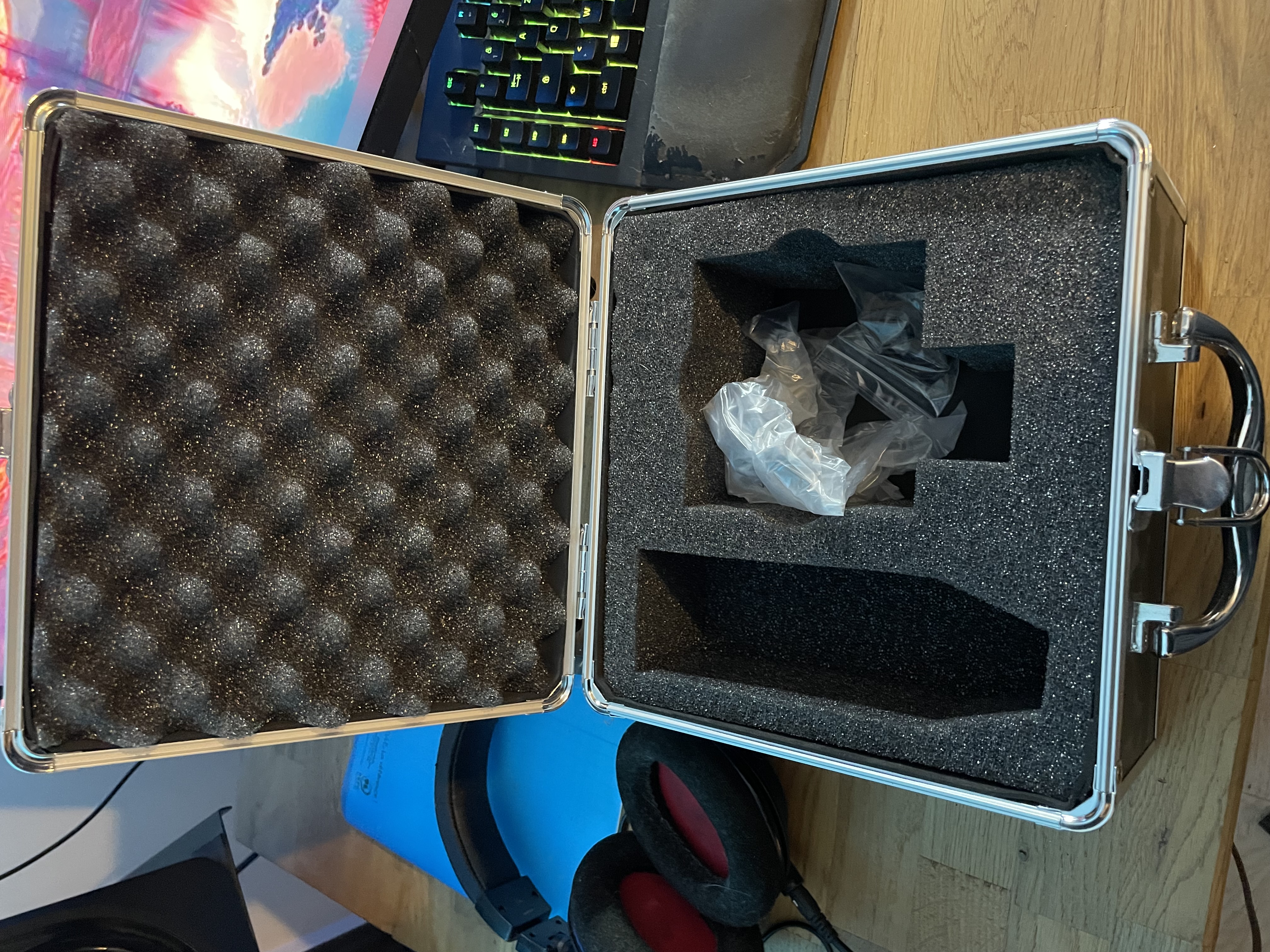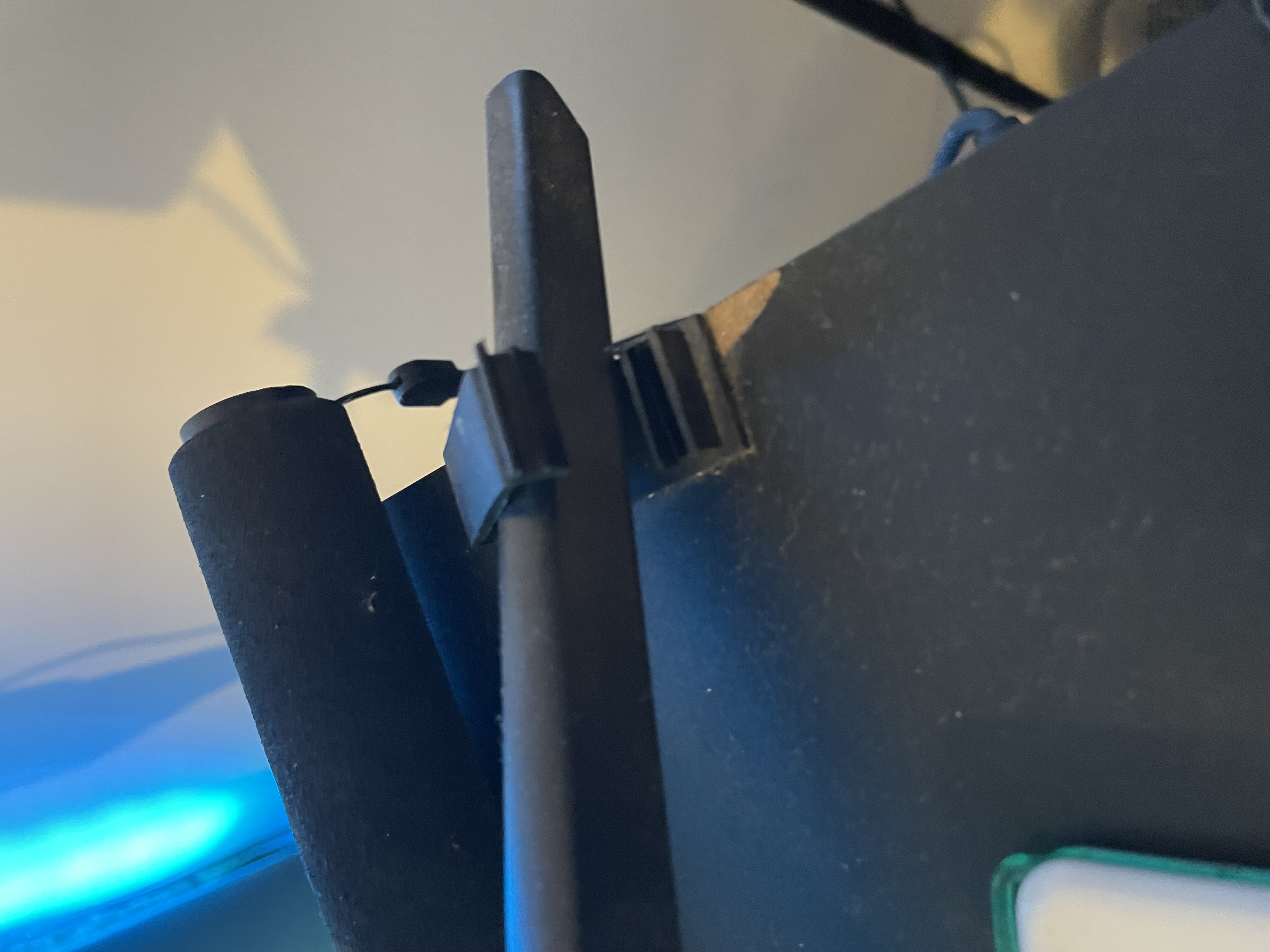 Une des enceintes a un petit morceau qui est parti du à un plastique que j’ai collé dessus pour accrocher mes leds ( voir photo)