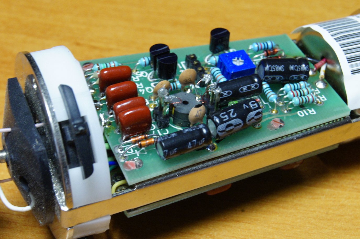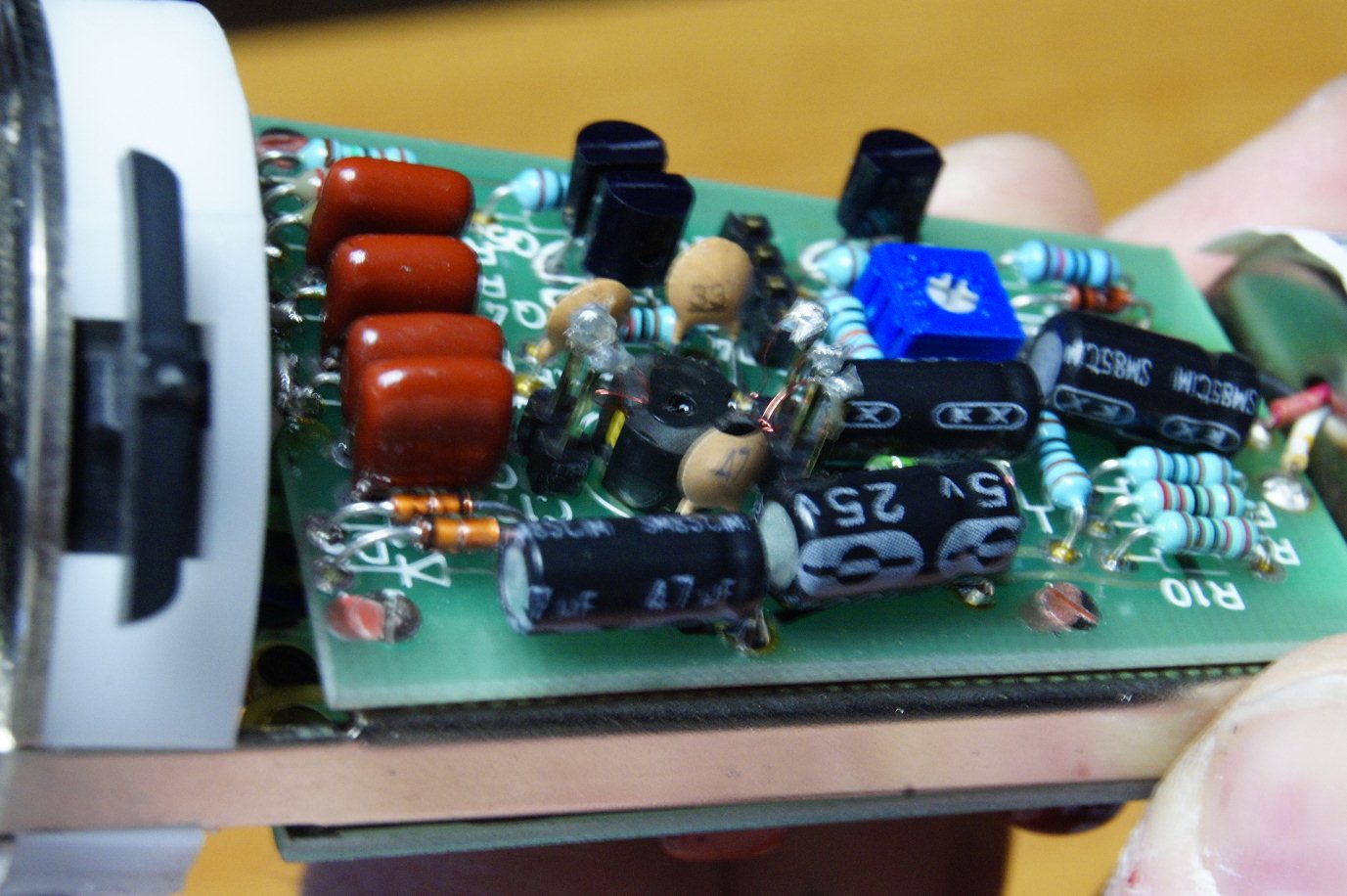 Suite à une chute, ce micro Alesis AM52 (statique multi-directivités) ne fonctionnait plus : faible niveau de sortie noyé dans le bruit de fond.