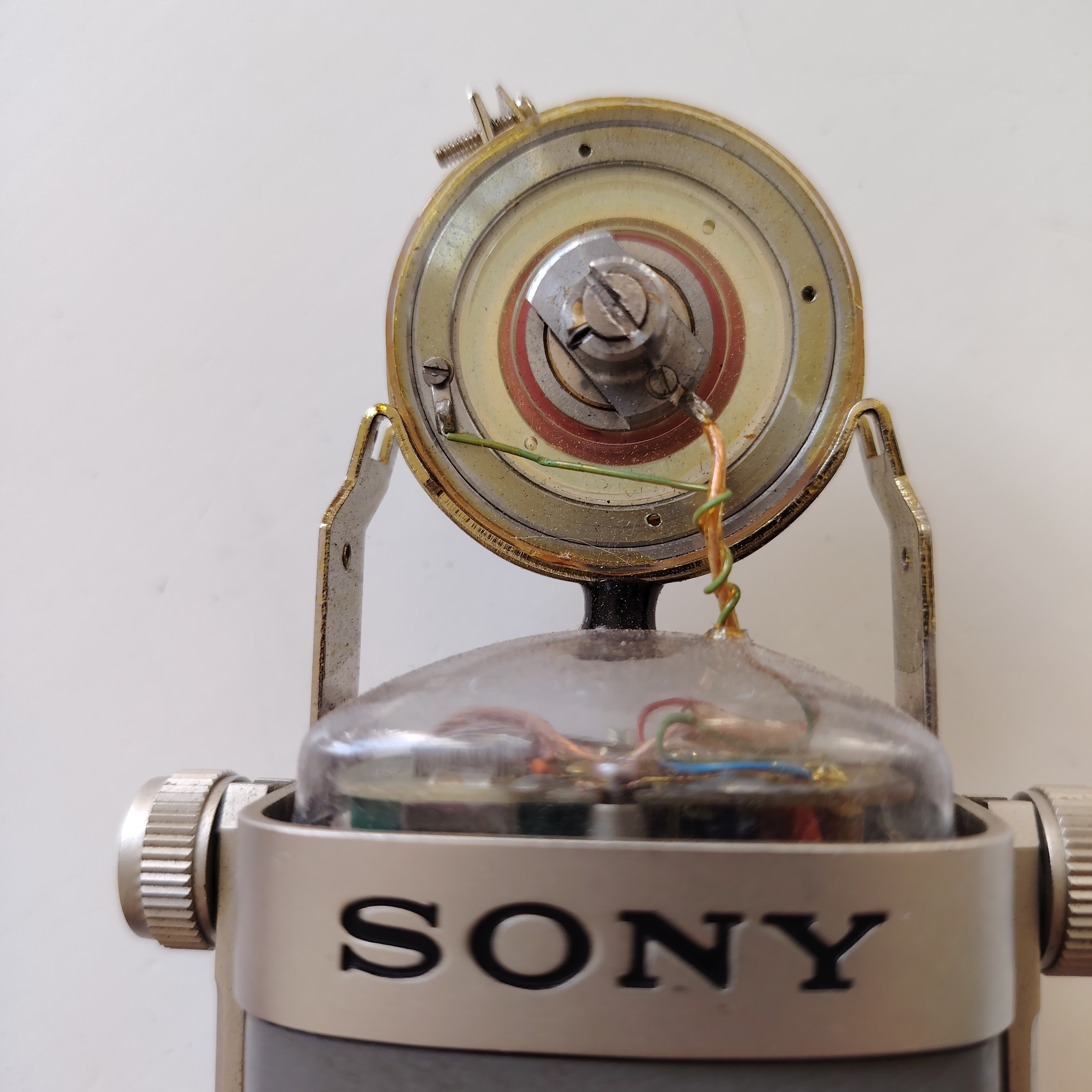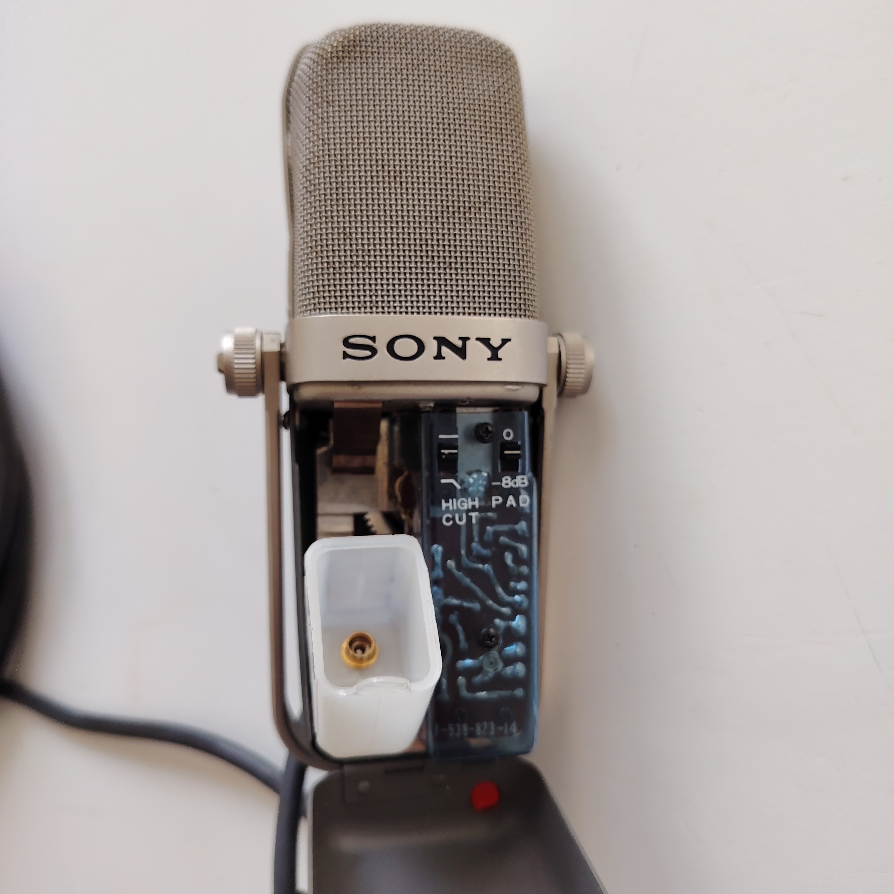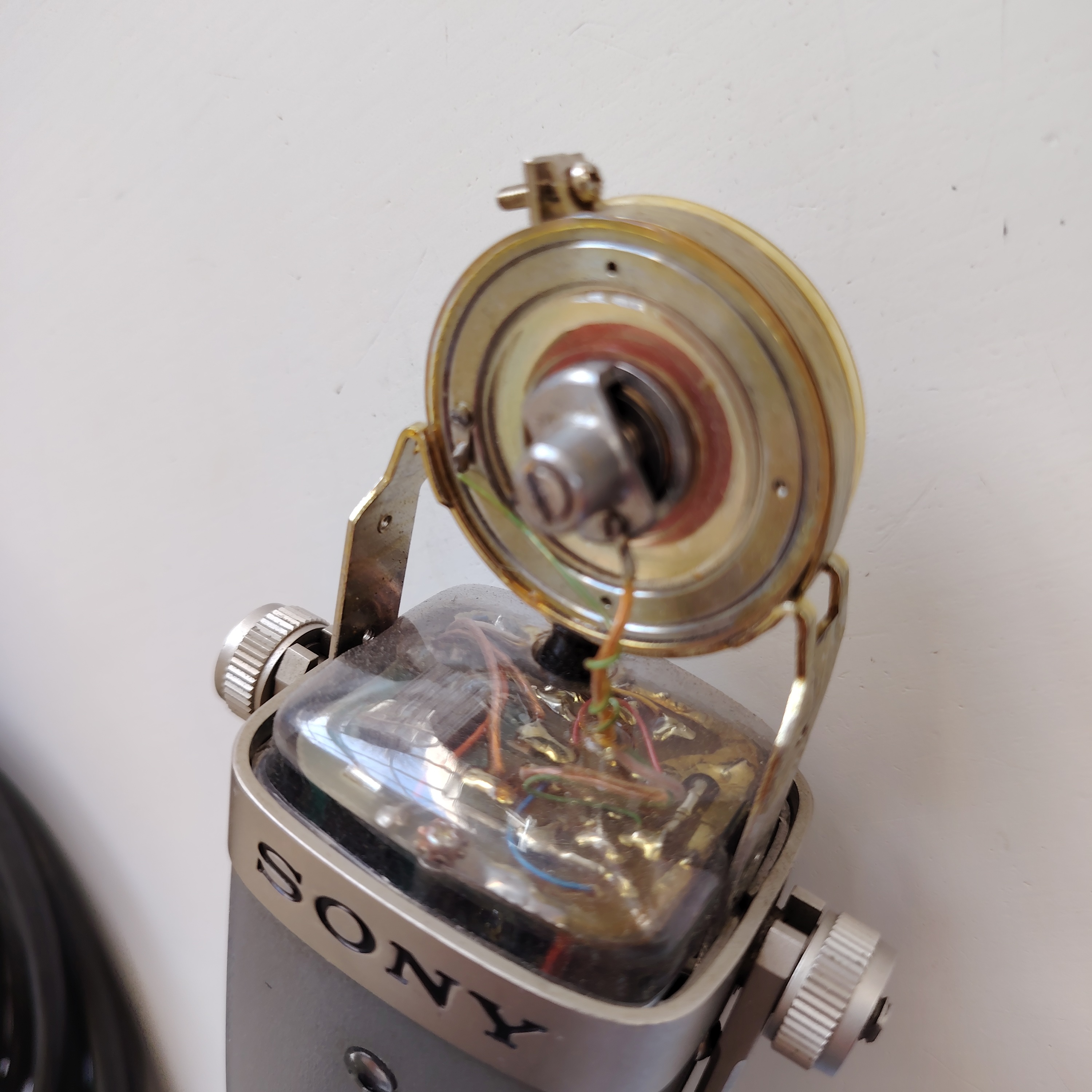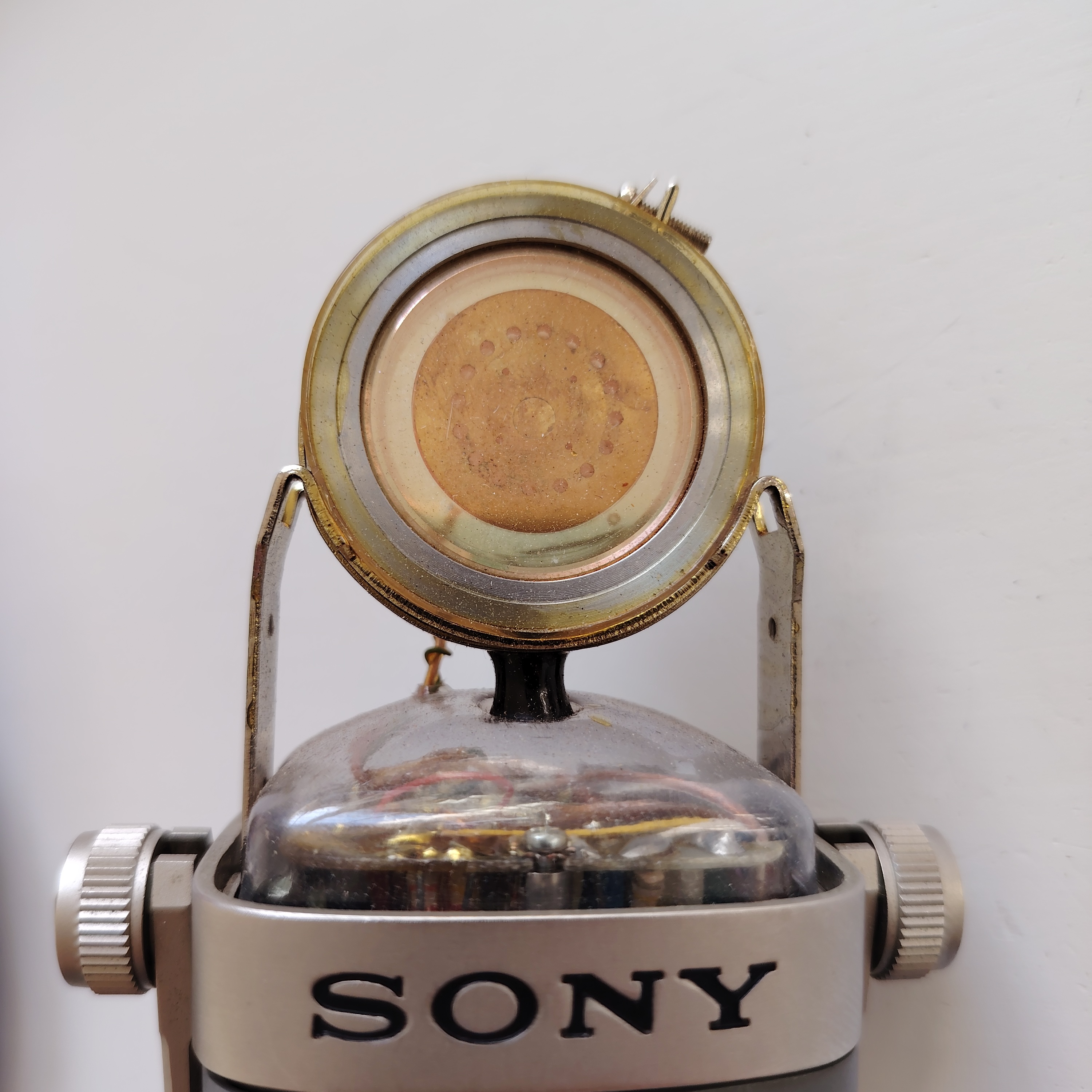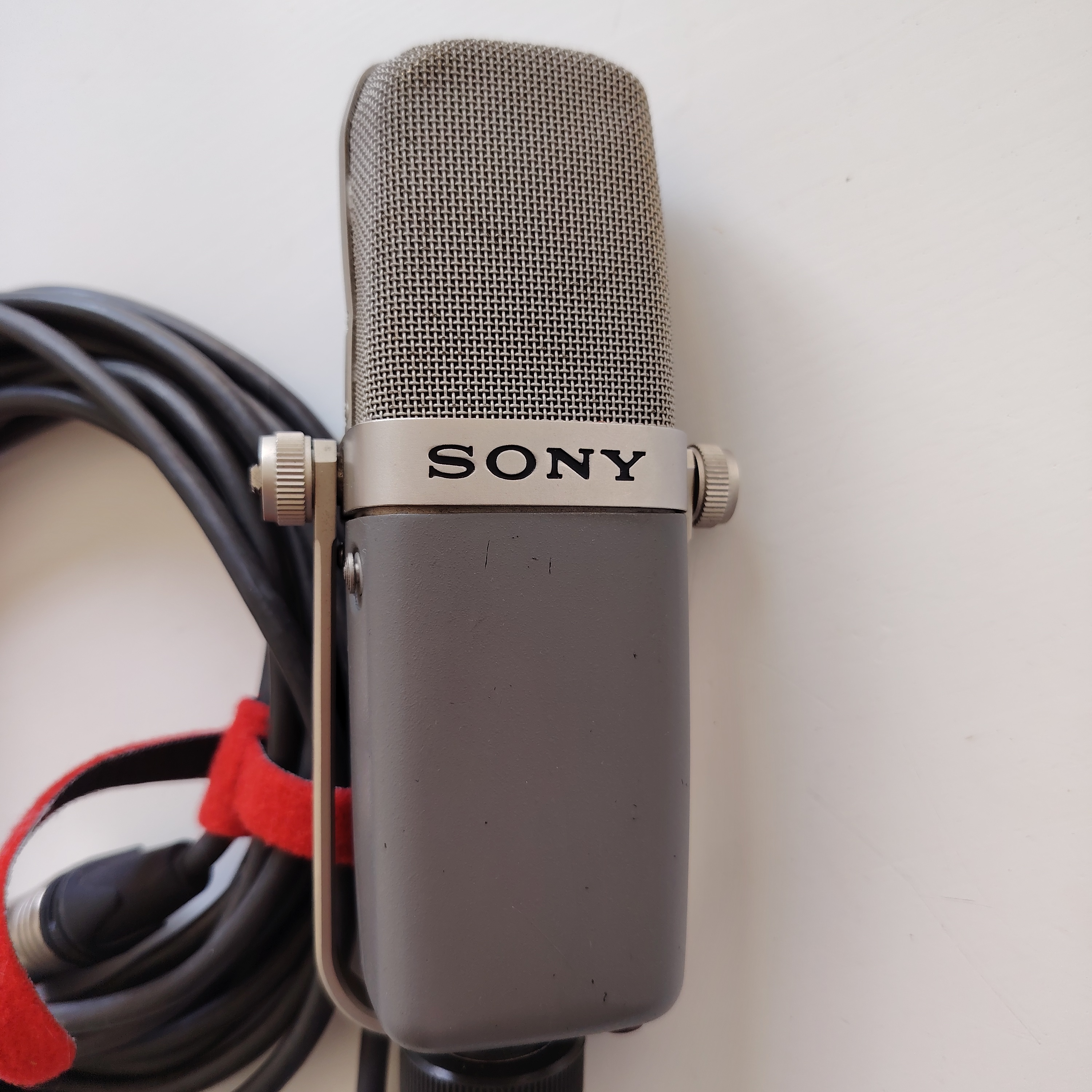 Très rare : vends micro électrostatique de studio Sony C38b, parfait état électronique et de fonctionnement, état esthétique d’usage (la double grille présente quelques défaut en partie extérieure, mais pas intérieure, voir photos).Le prix comprend le petit défaut sur la grille et l’absence de la boite d’origine.