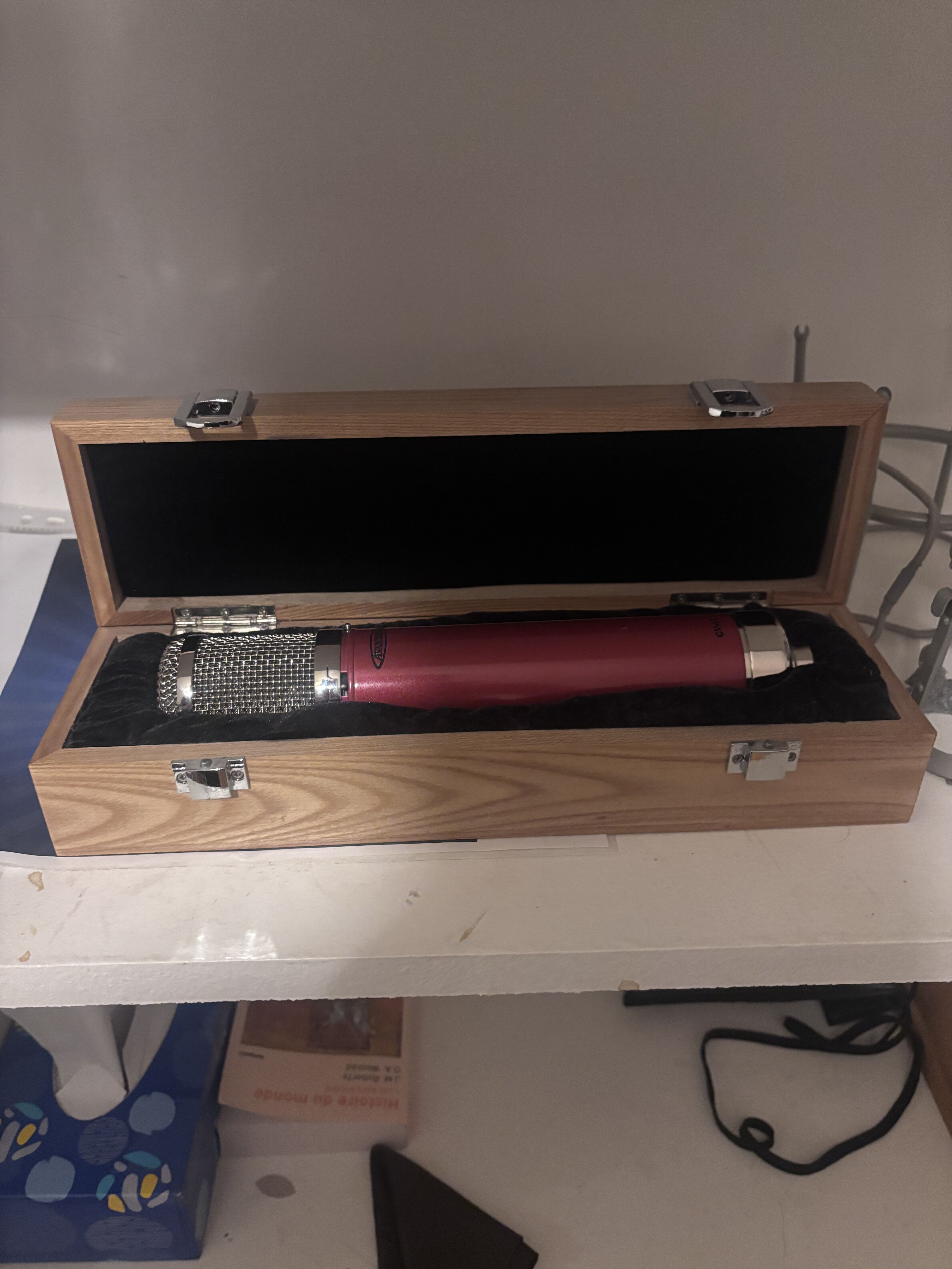 L'Avantone est placé tête-bêche avec mon Rode NT1 (qu'il est censé remplacer) dans une cabine de prise.