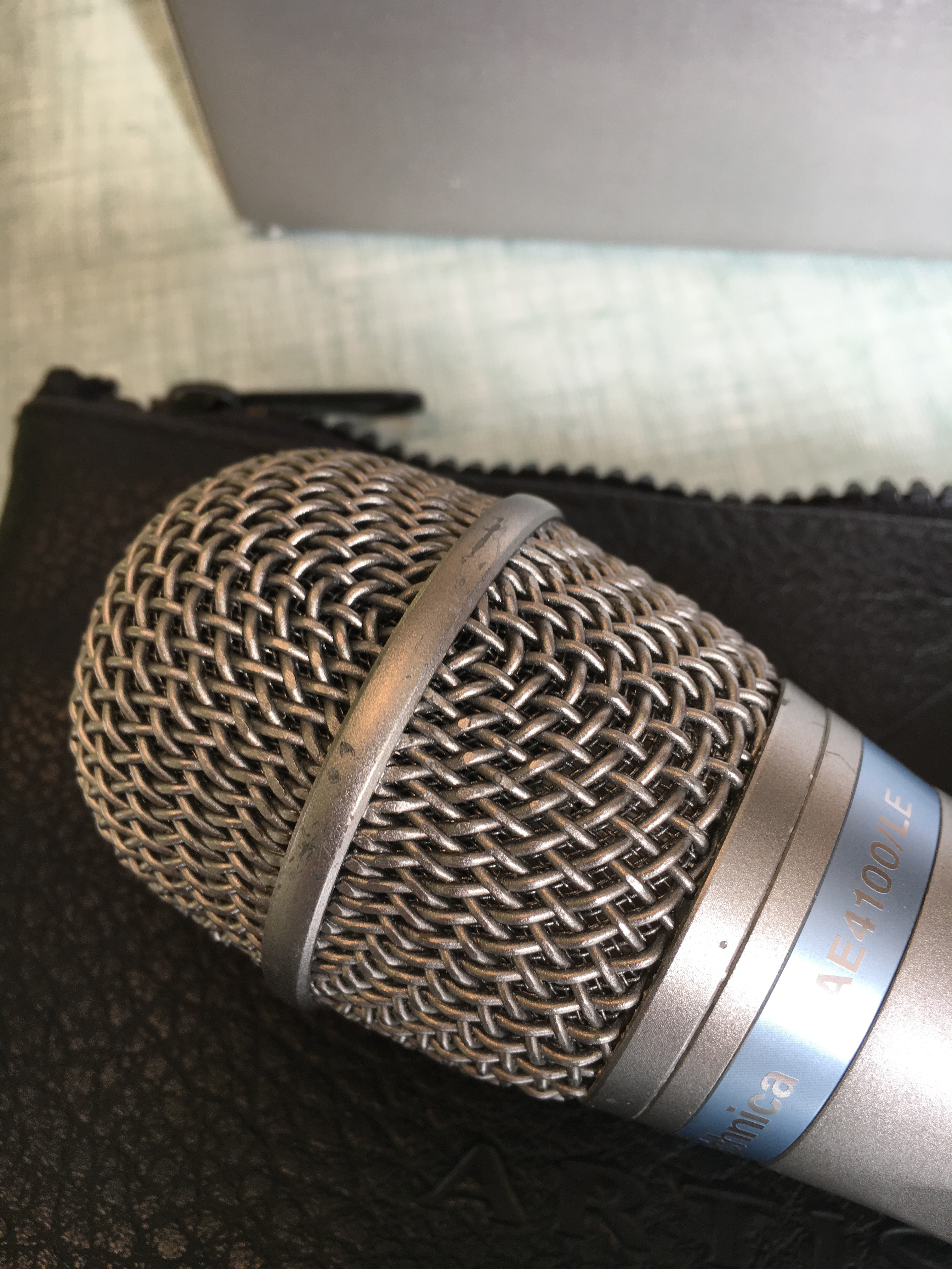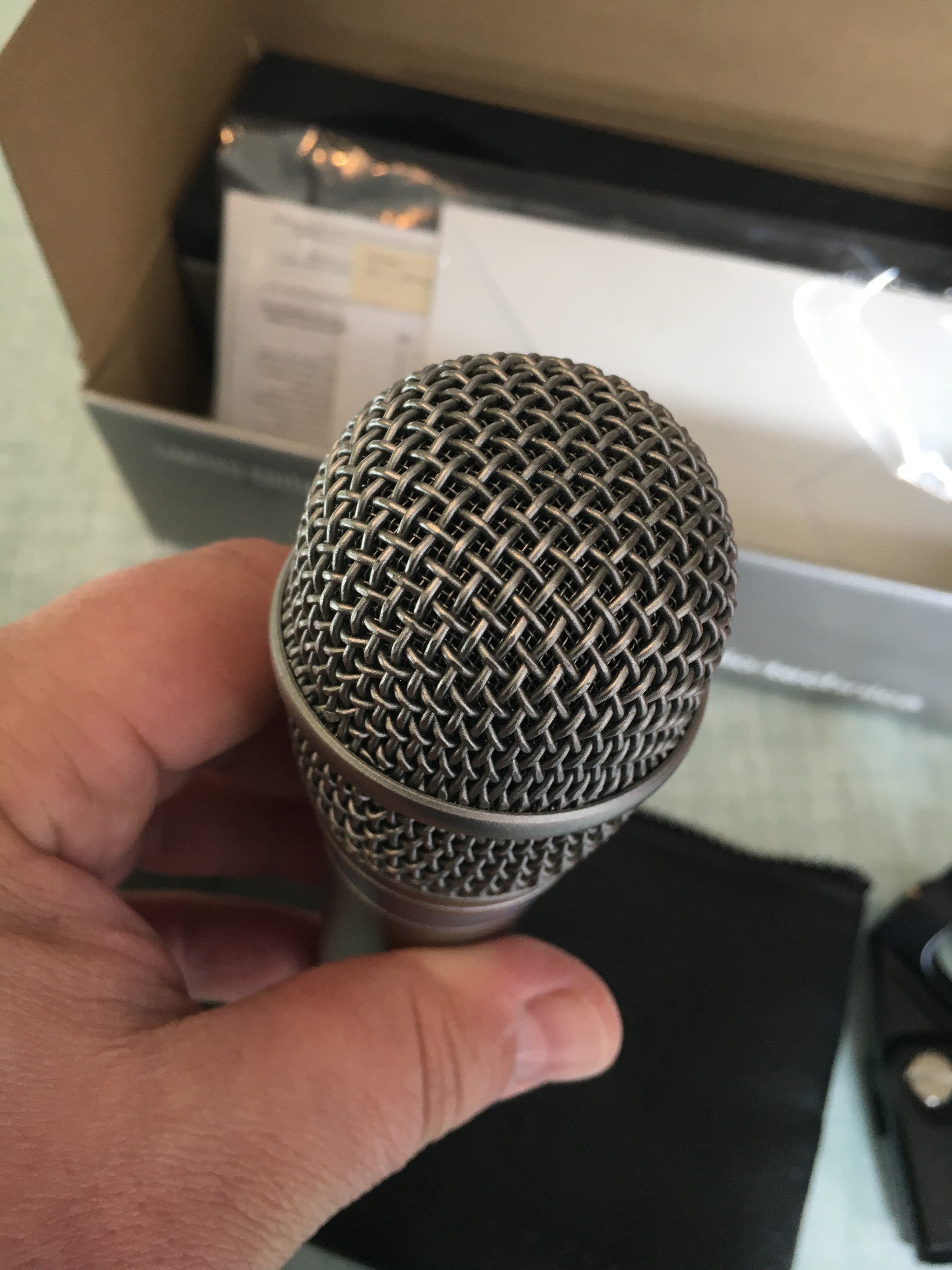 Quelques petites égratignures sur le cerclage de la grille et une à la base du micro (voir photos).