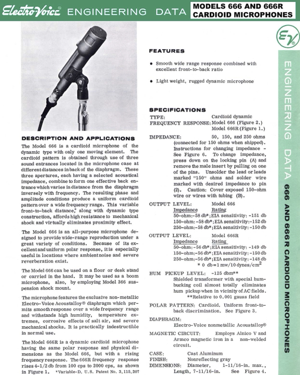 Le modèle 666 est un microphone tout usage conçu pour répondre aux exigences de reproduction dans une grande variété de conditions.