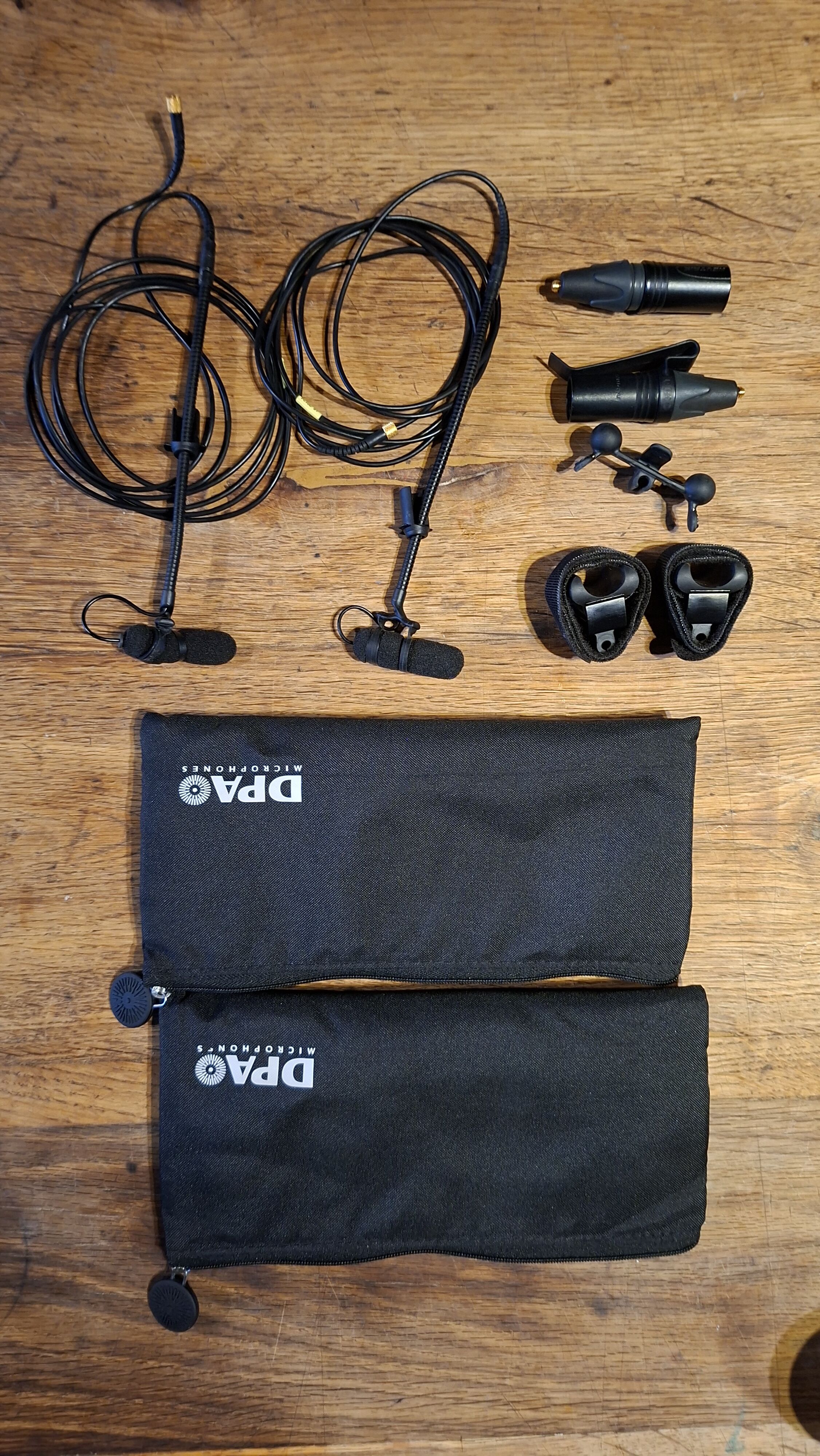 Valise « 4 rock », 4 micros, 4 pinces cuivres, 4 percussions, j’ai complété avec 4 pinces universelles, et 4 pinces guitares. En gros, je complète en fonction des besoins...