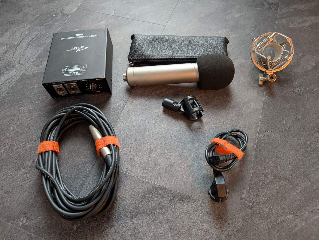 Je vends mon APEX 460, micro statique à lampe large membrane, en très bon état et parfaitement fonctionnel.Micro réputé pour sa base saine et sa belle réserve de chaleur, souvent utilisé comme alternative abordable aux classiques type U47 “budget”, et apprécié pour les modifications possibles (même si celui-ci est version d’origine, non modifié).