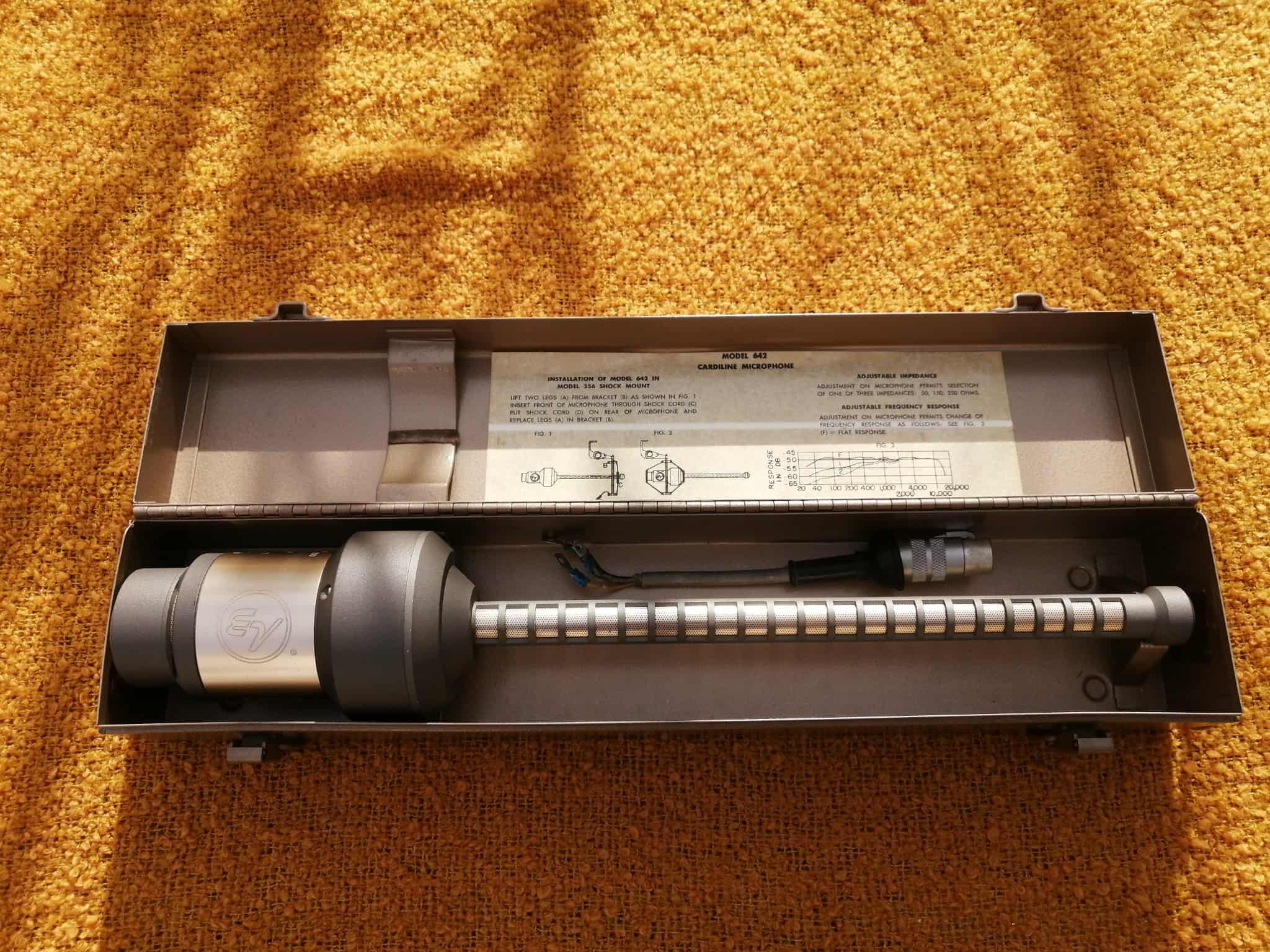 Microphone Electro-Voice 642 Cardiline canon dynamiqueEn excellent état esthétique, 100 % fonctionnel, livré avec sa boîte en métal et sa connectique XLR spécial.