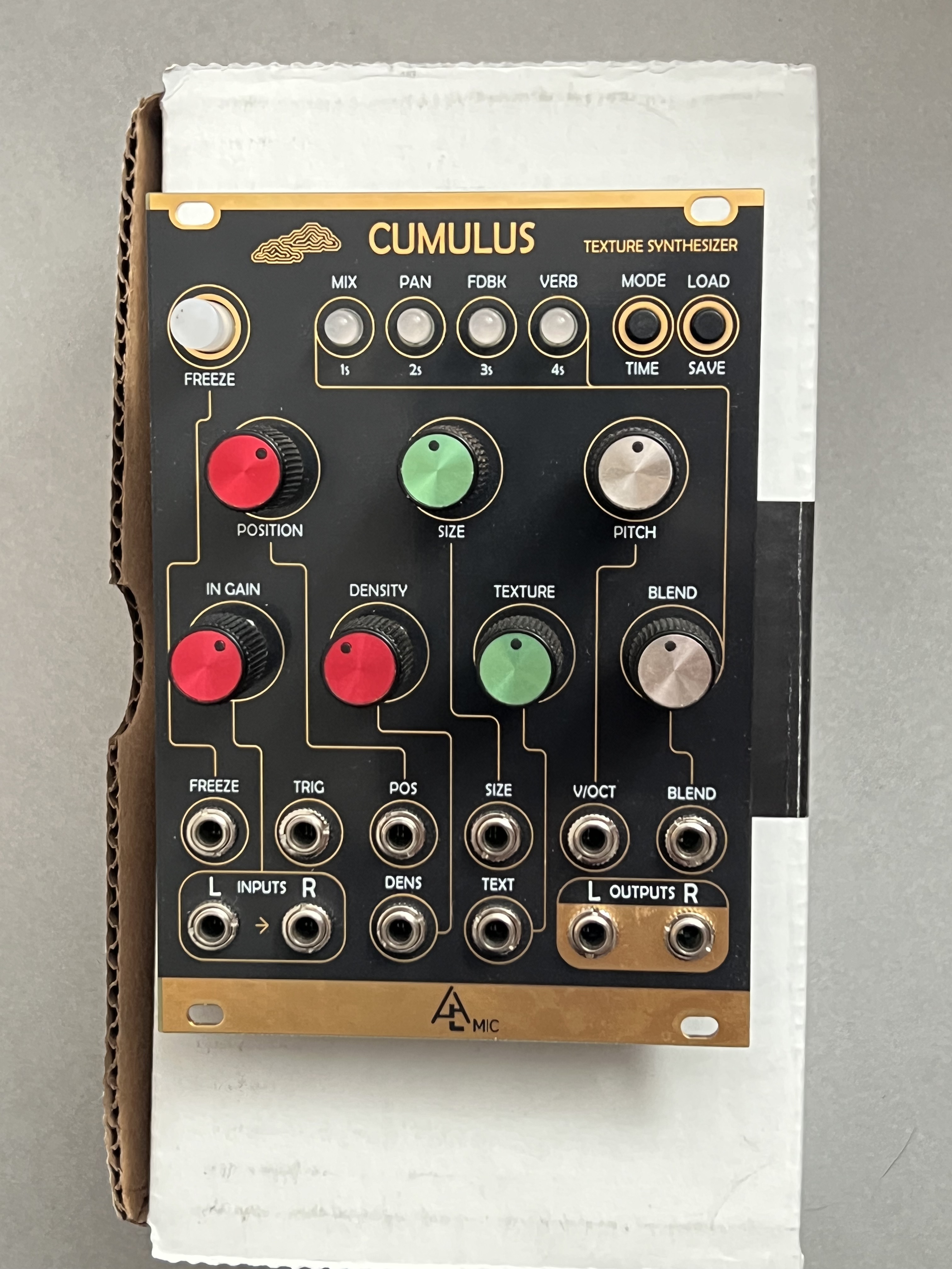 Cumulus de After Later Audio est une réplique à l'identique du populaire Mutable Instruments Clouds, une combinaison de delay, Pitch shifter et granular sampler. En plus de la combinaison ingénieuse de ces fonctions et des résultats parfois époustouflants, Mix, Panoramique, Feedback et Reverb sont accessibles via une fonction Shift, contrôlable et modulable avec le paramètre Blend. Les nombreuses entrées de tension de contrôle vous invitent explicitement à plonger encore plus profondément dans l'exploration sonore. Hormis la couleur et les boutons, Cumulus est exactement le même que le MI Clouds original.