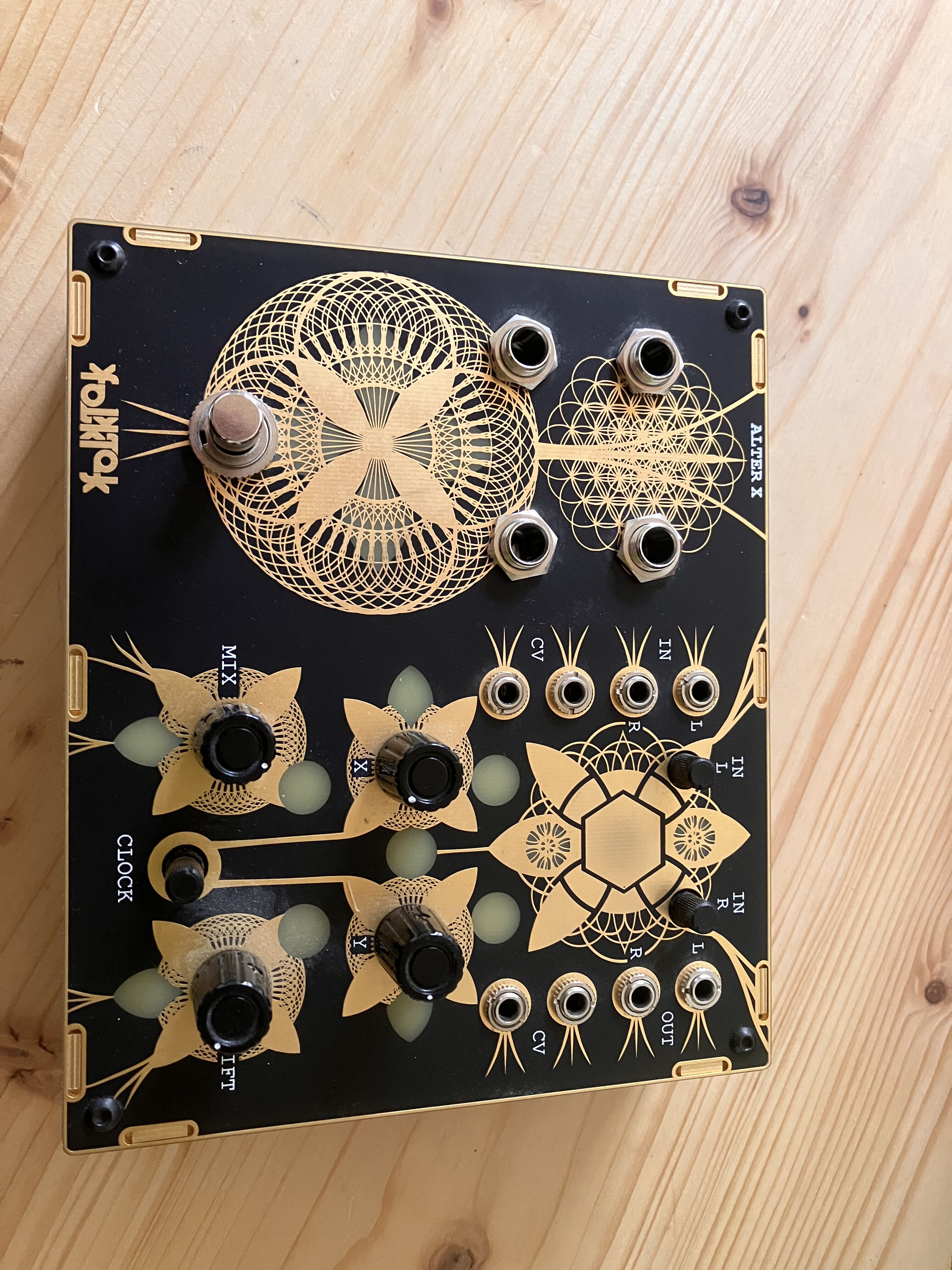 Alter X est la version pédale du module Eurorack Alter 1, dotée de quatre prises jack 6,35 mm en plus d'une prise jack 3,5 mm, ainsi que d'une commutation tamponnée qui permet d'obtenir des traînées sonores.Bien qu'elle fonctionne de la même manière que les autres pédales, celle-ci est légèrement différente. La plupart des pédales sont conçues pour les guitares, mais les artistes peuvent choisir de les utiliser de différentes manières. Nous avons conçu cette pédale pour qu'elle fonctionne avec des prises jack 6,35 mm standard (pour l'entrée et la sortie) ou des prises jack 3,5 mm pour une utilisation avec tout autre équipement. Pour ceux qui aiment utiliser le CV (tension de commande) pour tout format eurorack, clavier cv ou pédales qui produisent du cv (par exemple, expression ou séquençage), les quatre boutons principaux ont des entrées cv (mix, x, y, filtre) afin que vous puissiez contrôler vos boutons sans les toucher si vous le souhaitez.