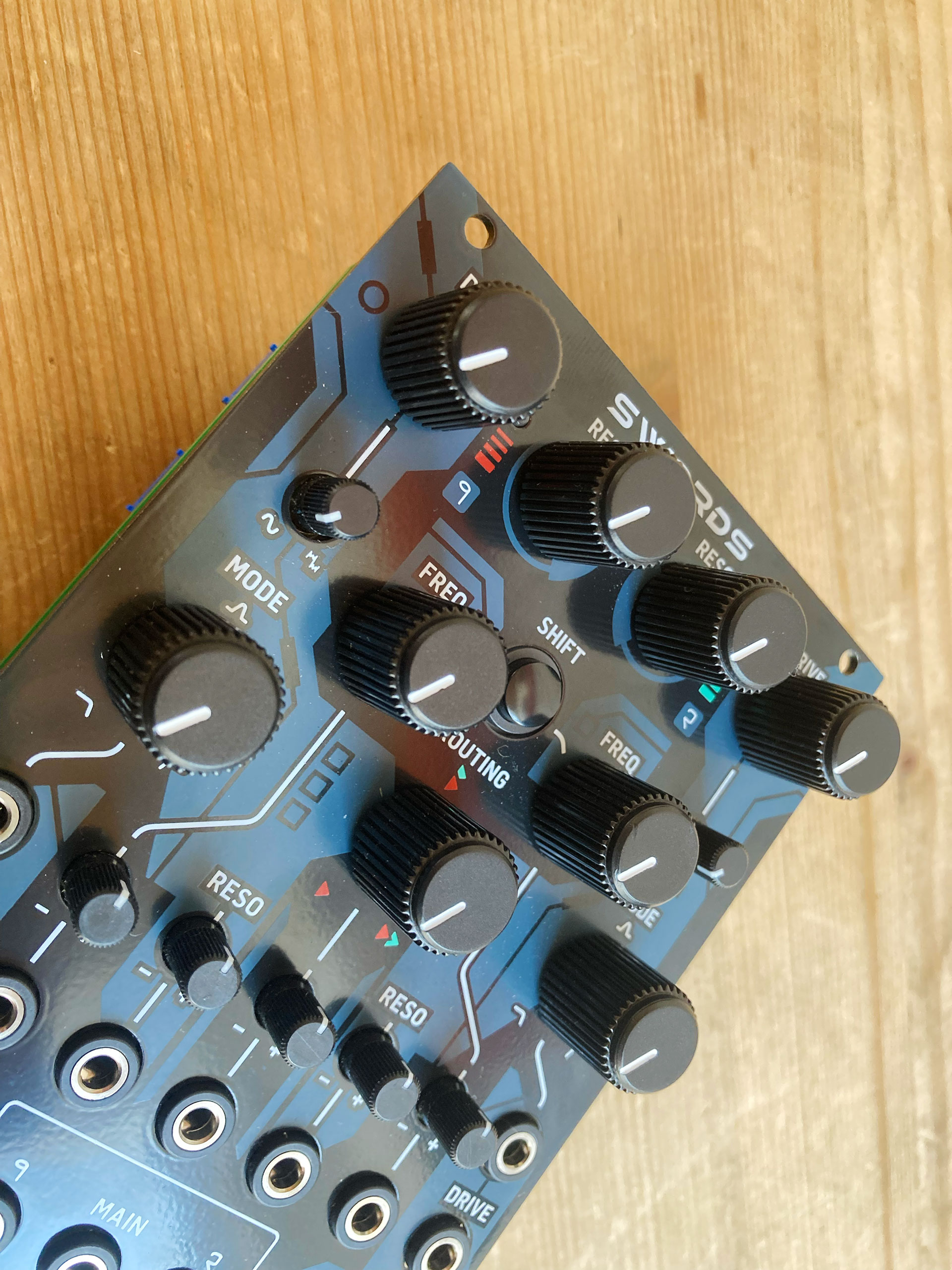 • Entrées CV pour fréquence, résonance et routage, chacune avec atténuateur bipolaire