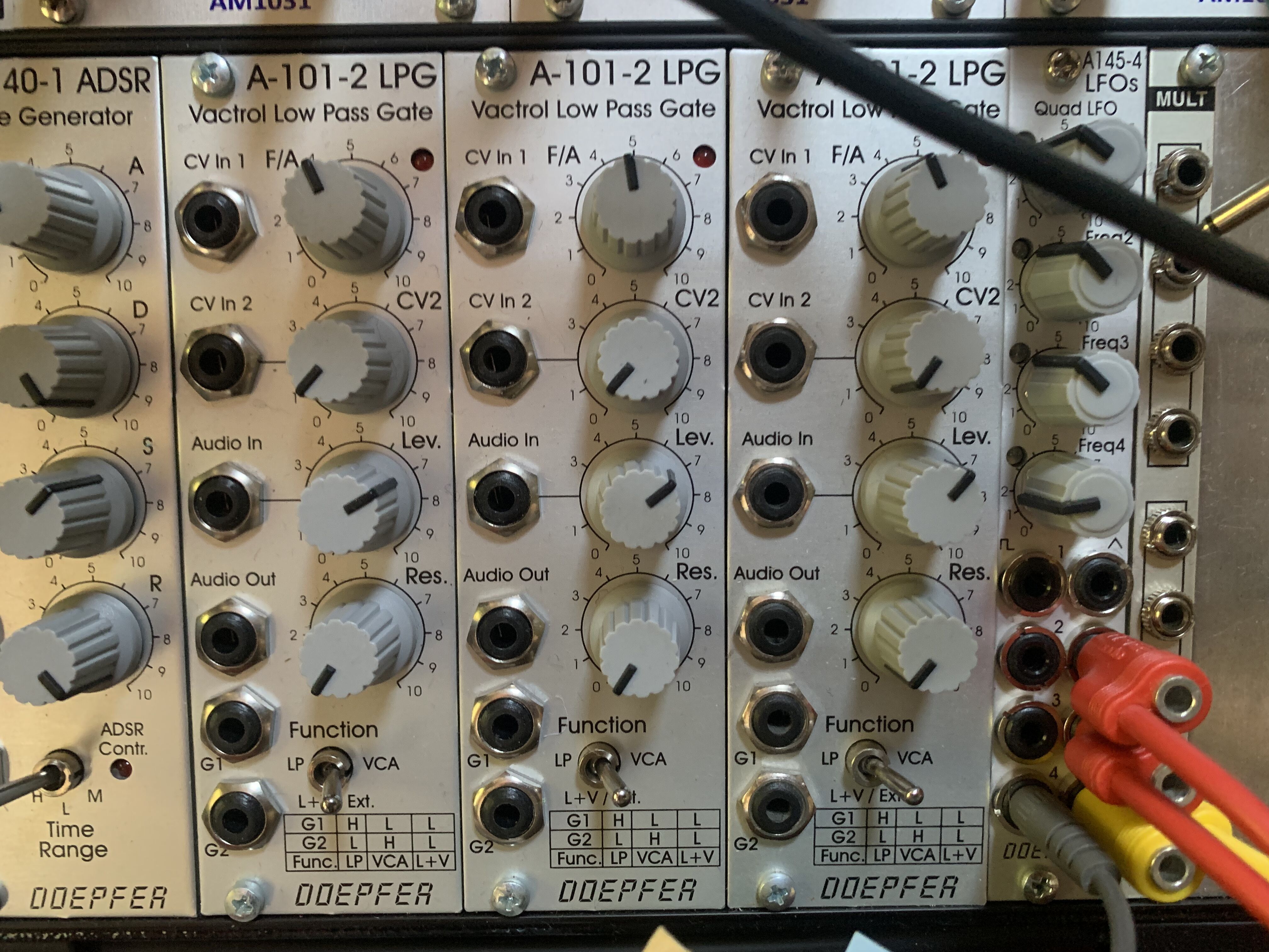 Vends Doefper A-101-2 LPG (Vactrol Low Pass Gate, son typique Buchla) en excellent état, car j'en ai deux autres. Fourni avec nappe d'alimentation et vis.