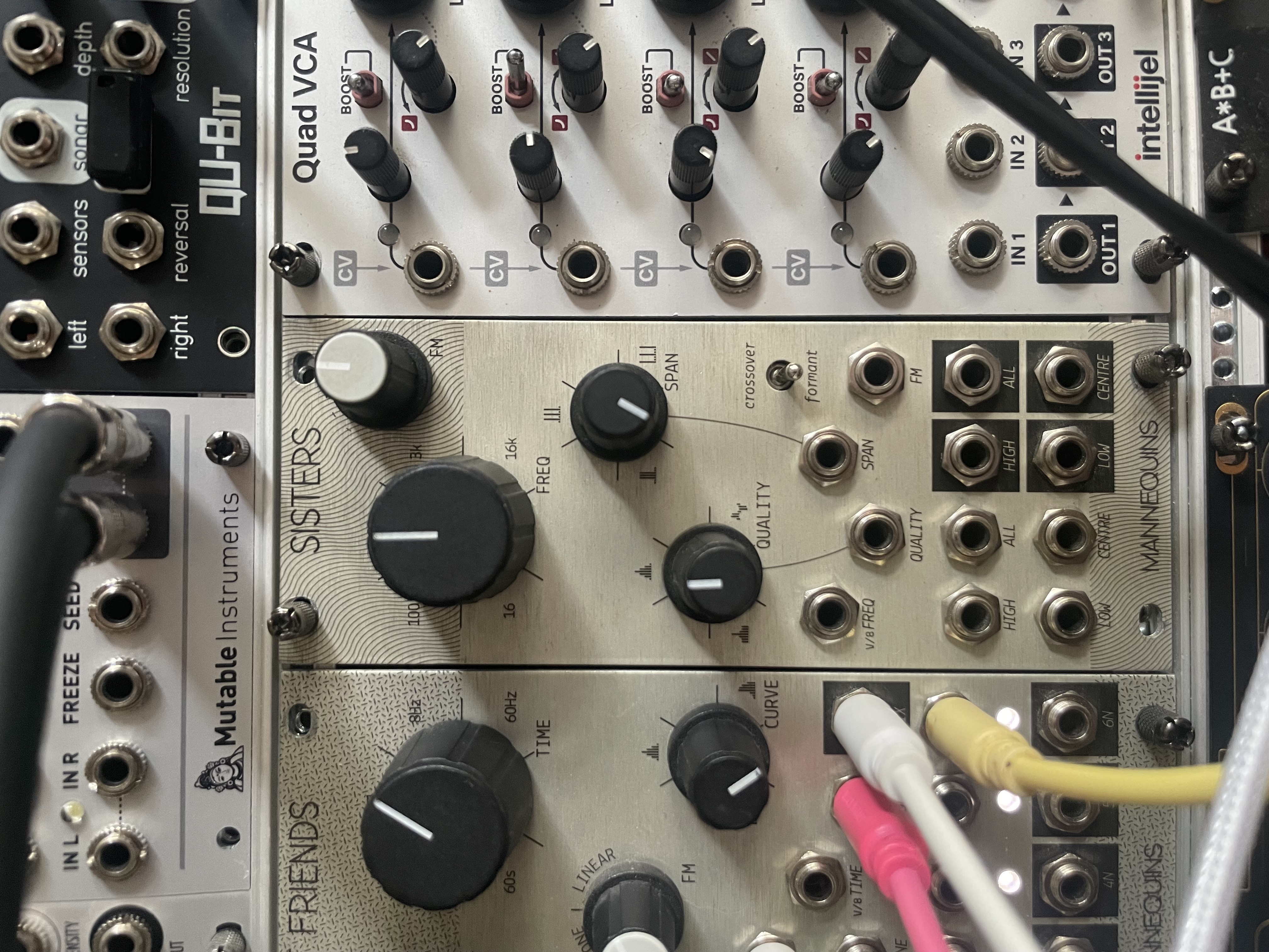 Je me sépare de mon Three Sisters.Première main. Parfait état de fonctionnement. Bon état esthétique : quelques traces de vis et le panneau n'est pas tout à fait droit (léger défaut de fabrication sur une certaine série dont fait partie ce module). Ca n'est évidemment pas gênant, sauf pour mettre les 4 vis :)