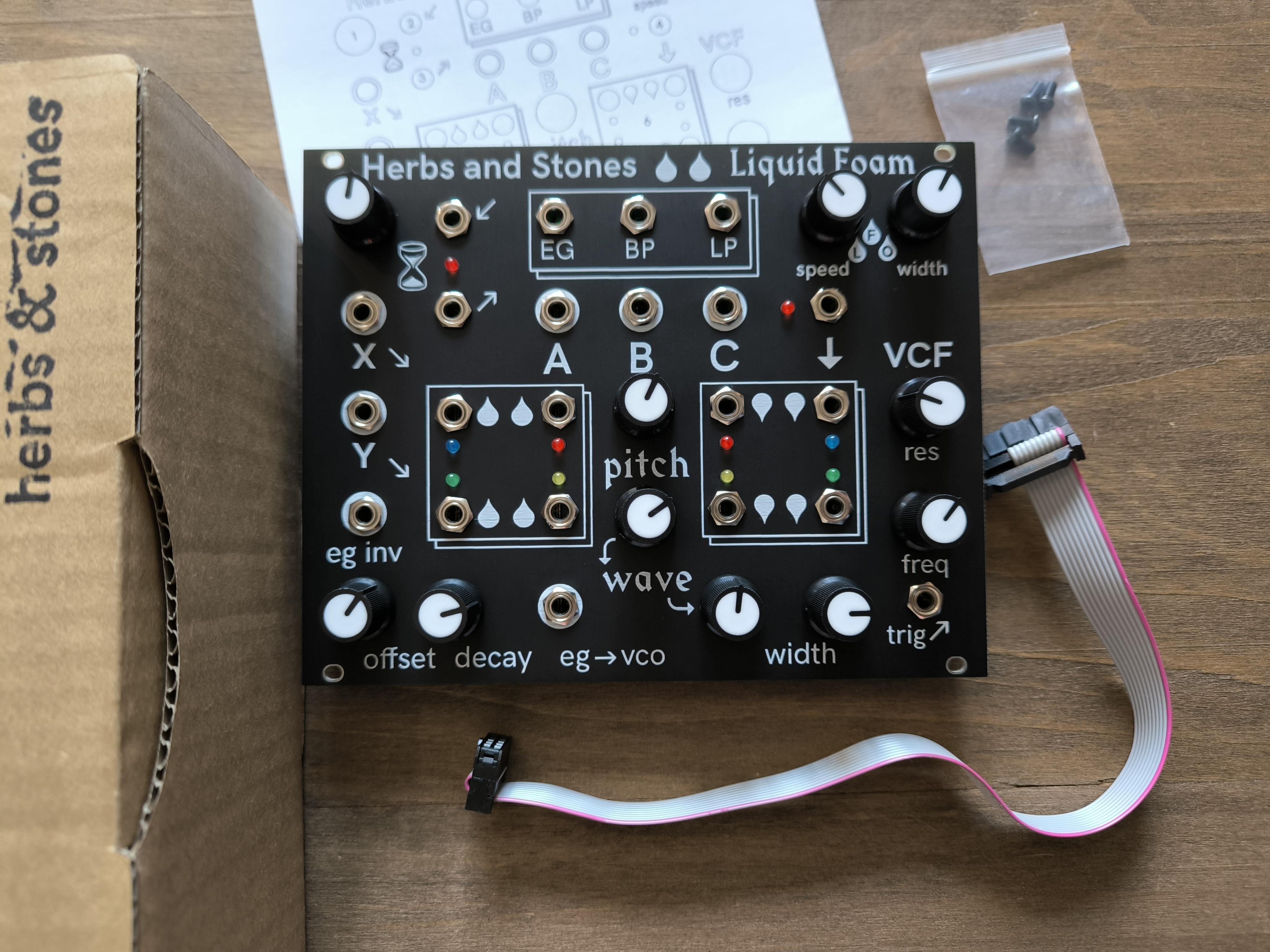 Module Eurorack Euro foam de Herbs and Stones. version Eurorack de la groovebox analogique Liquid foam en excellent état. vendu dans sa boîte avec notice, nappe d'alimentation + vis. envoi possible par Mondial Relay.