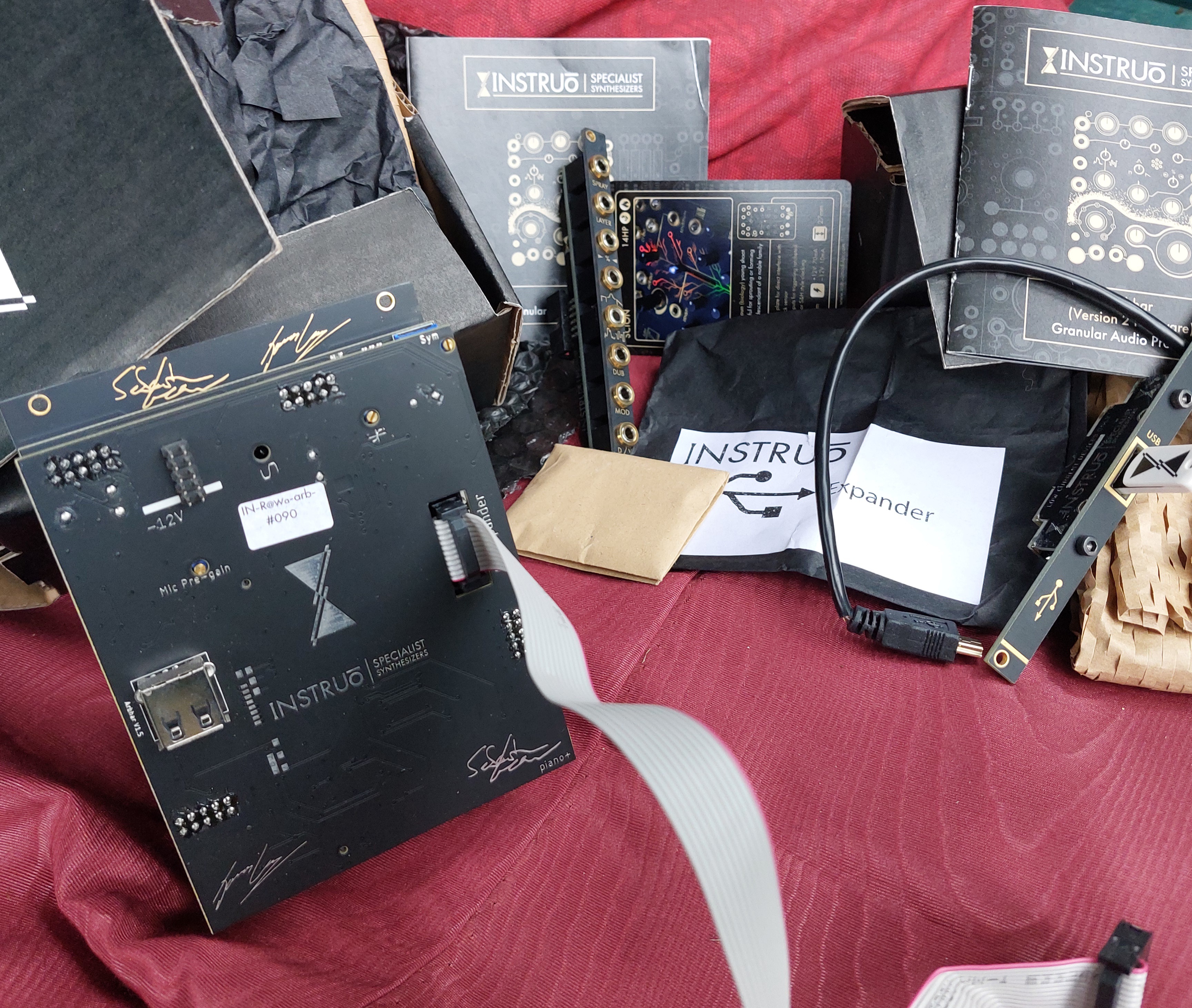Le module fonctionne parfaitement et l'état cosmétique est quasi neuf. Je suis plutôt maniaque pour la conservation et l'usage de mon matériel.Carton d'origine, notice d'emploi, nappe, 2 clefs usb d'origine et goodies.