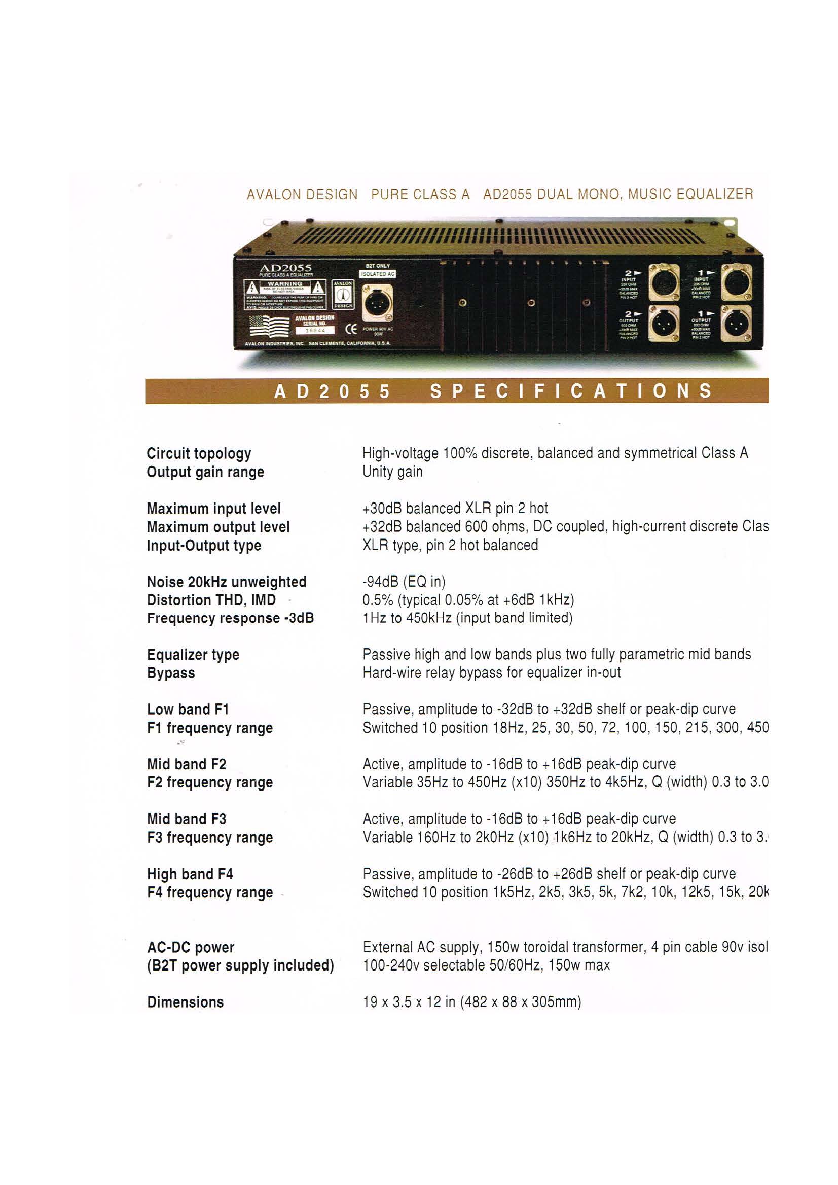 Equalizer AVALON AD2055 By pass professionelclasse A à faible bruit