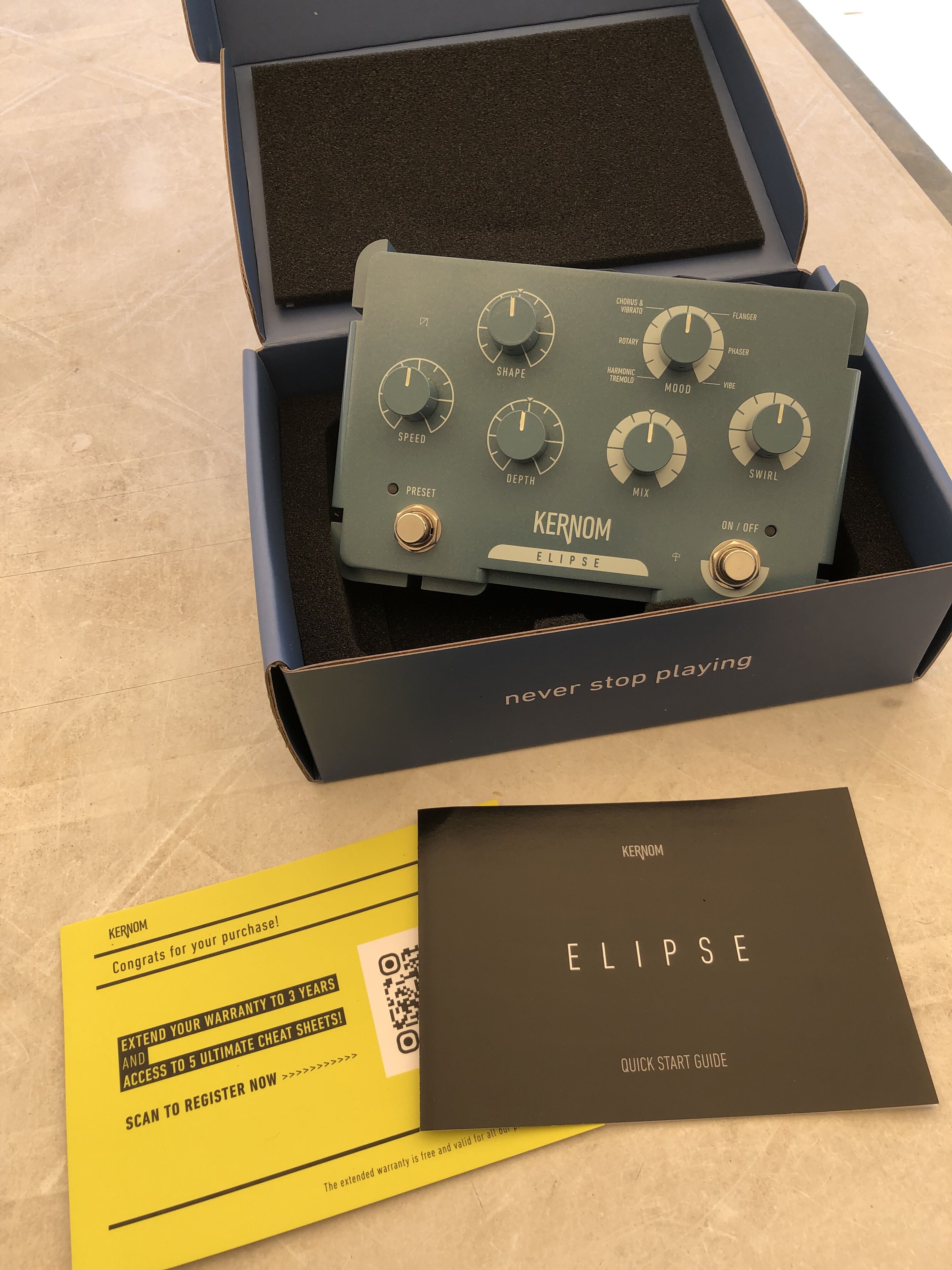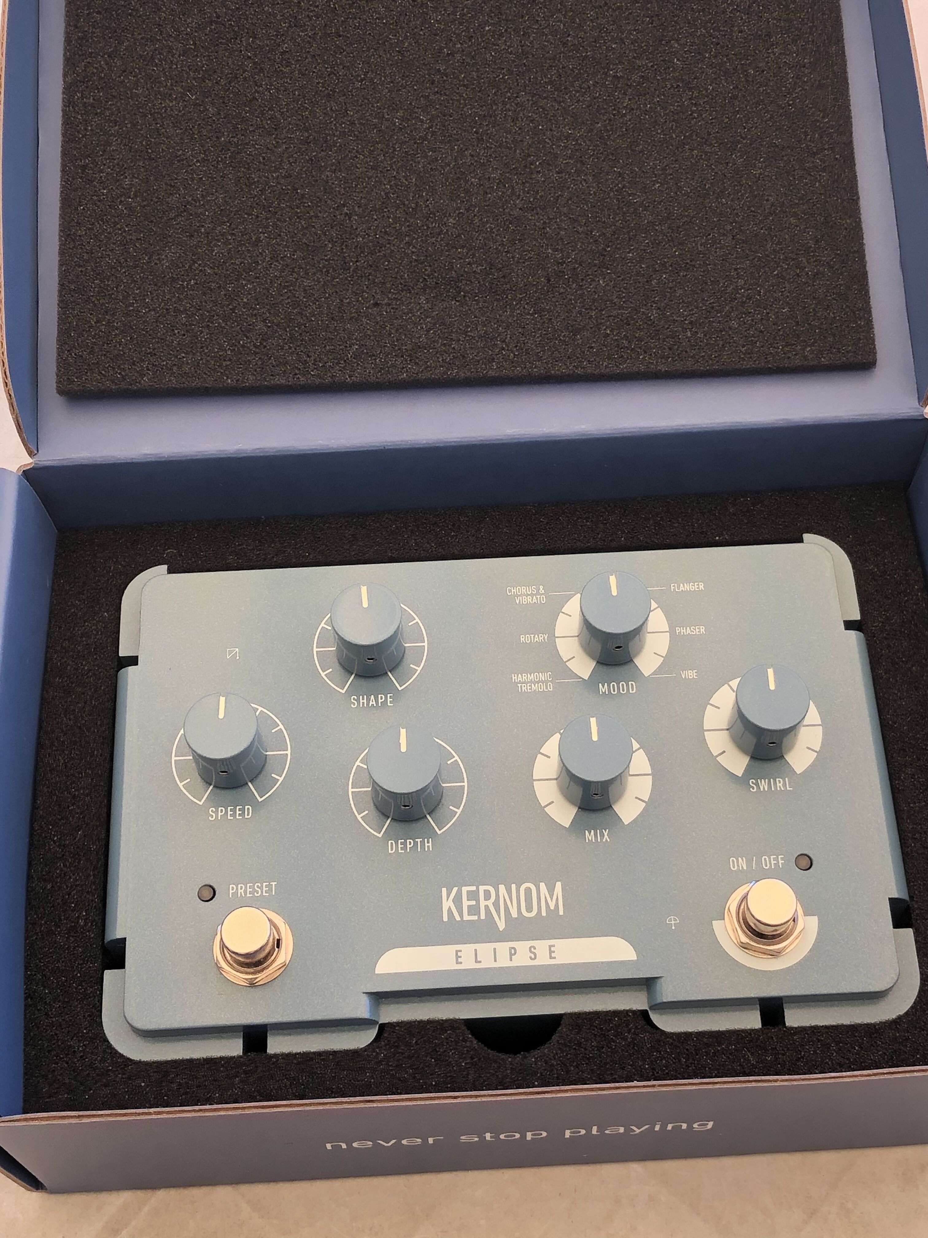 La Elipse est une pédale de modulation polyvalente haut de gamme offrant des effets riches et évolutifs (chorus, phaser, flanger, tremolo et variations dynamiques).