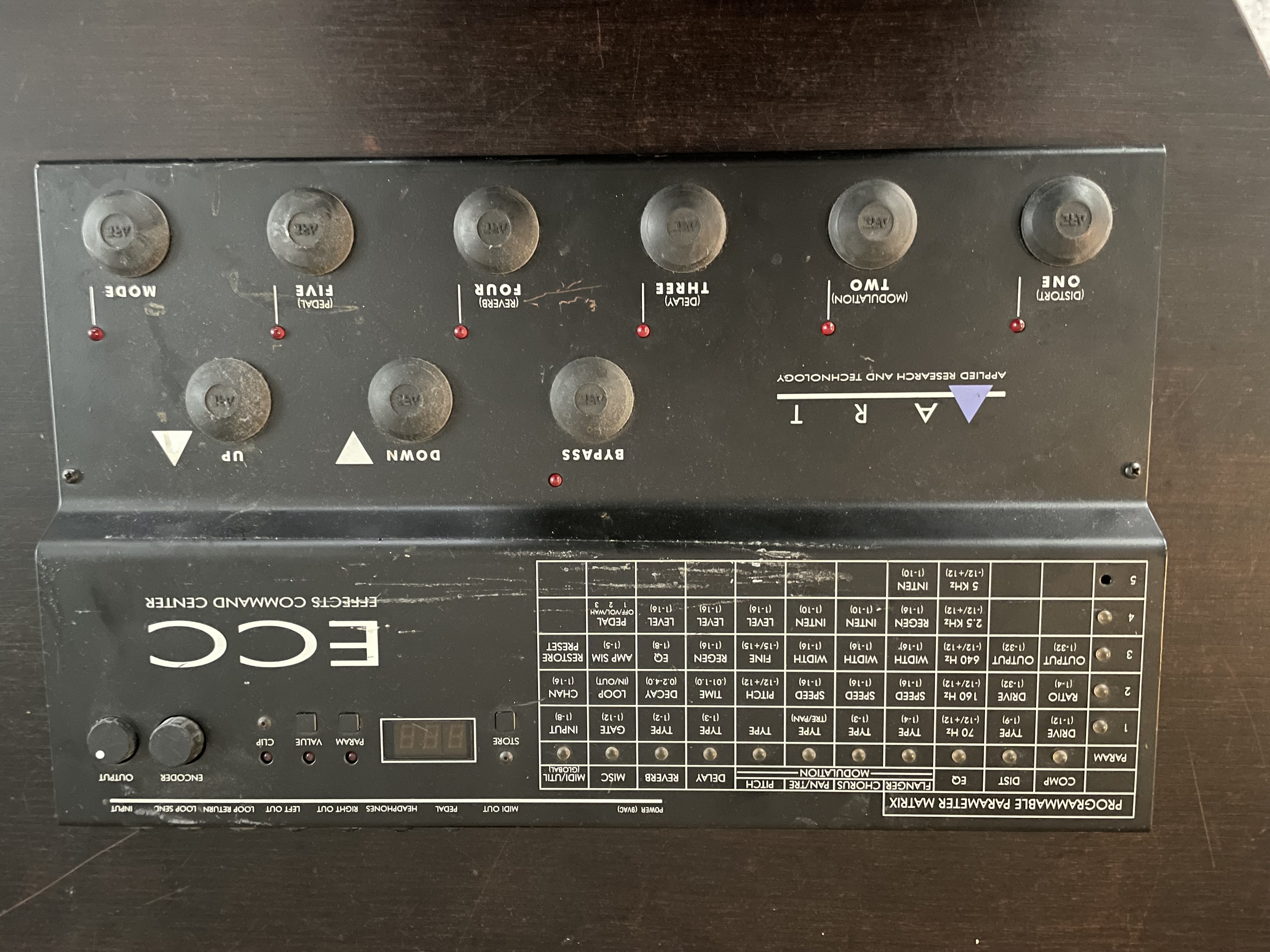 Connectique : MIDI IN/OUT, Pédale Exp, Casque, Sortie Stéréo, boucle effets SEND / RETURN, Input.