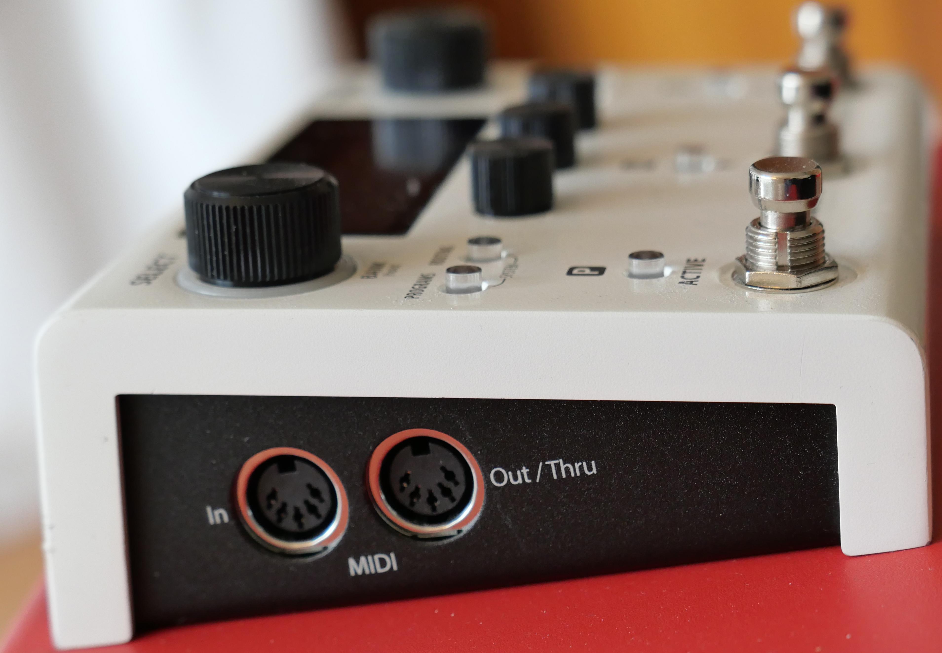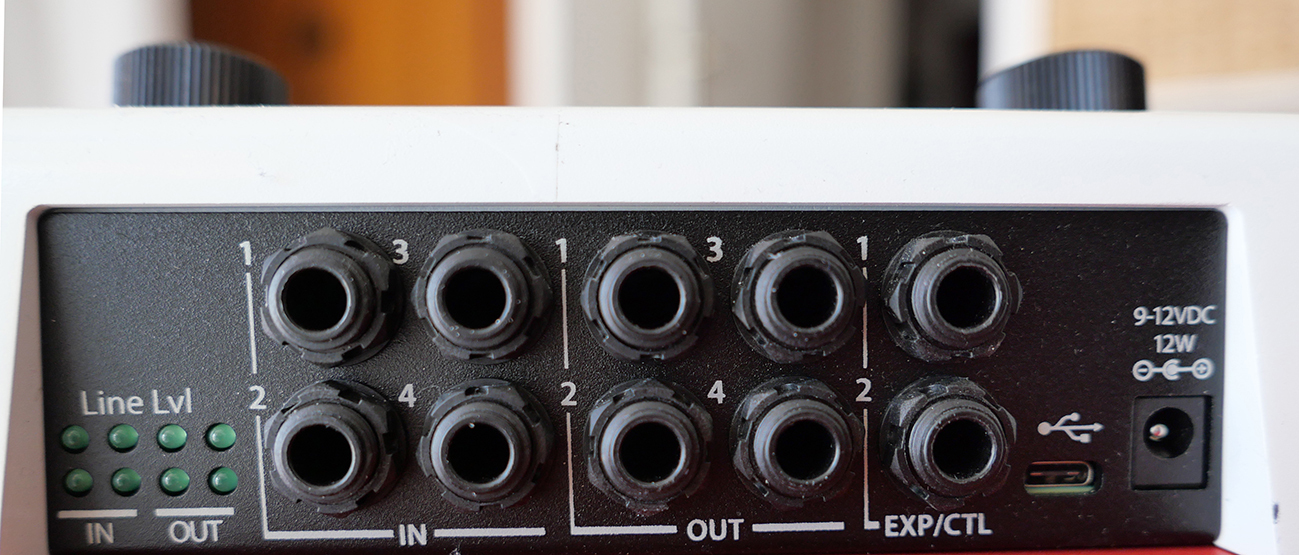 Ecran, encodeurs, sélecteurs; peut servir comme pédale d'effet ou dispositif de traitement en studio.