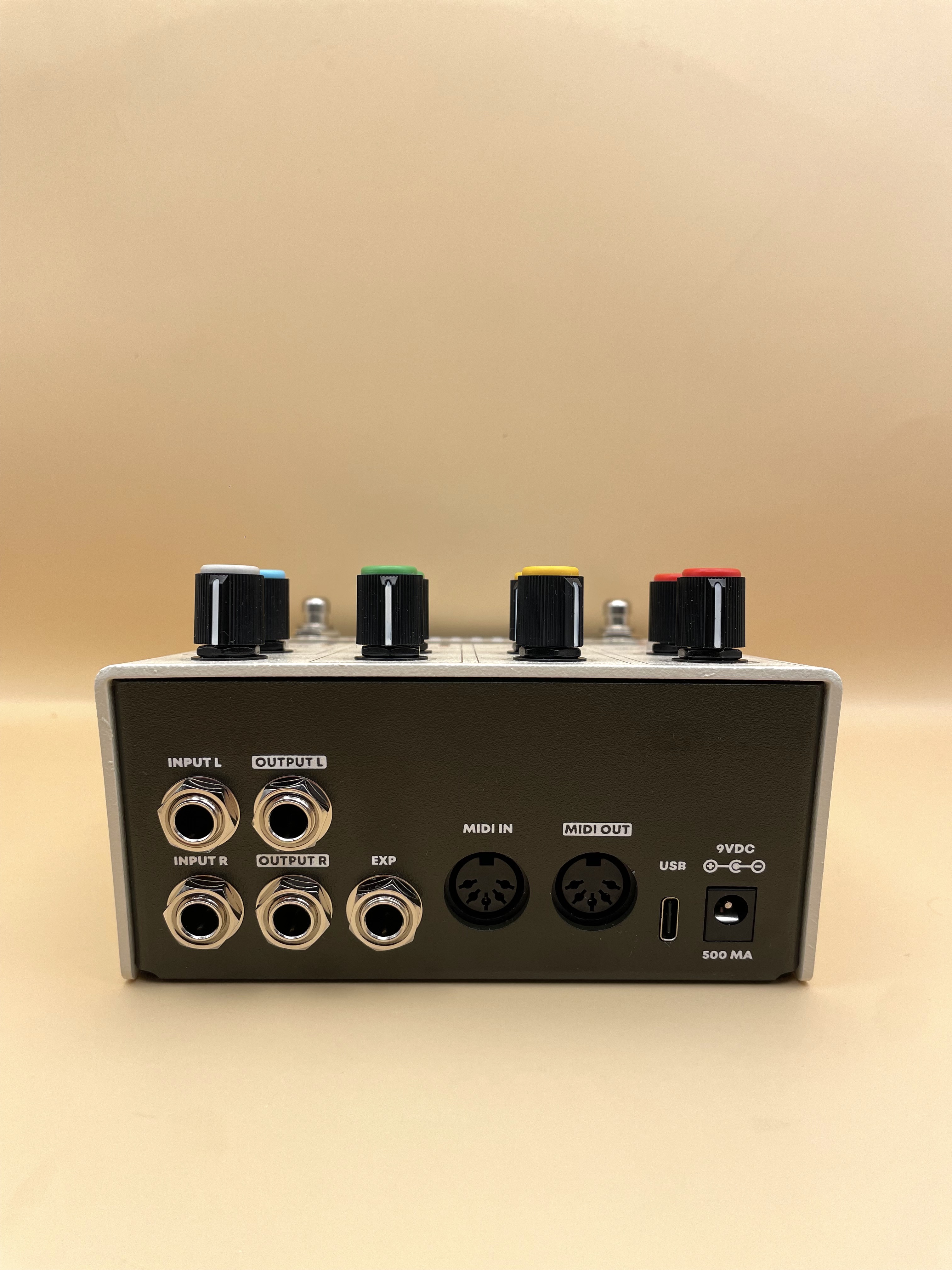 Chaque colonne d'effet est contrôlée par 2 potards qui gérent l'intensité de l'effet, son mix, sa coloration. Il y a une implantation midi pour synchroniser les effets sur une BAR ou un synthé, autrement ce sera par tap tempo.