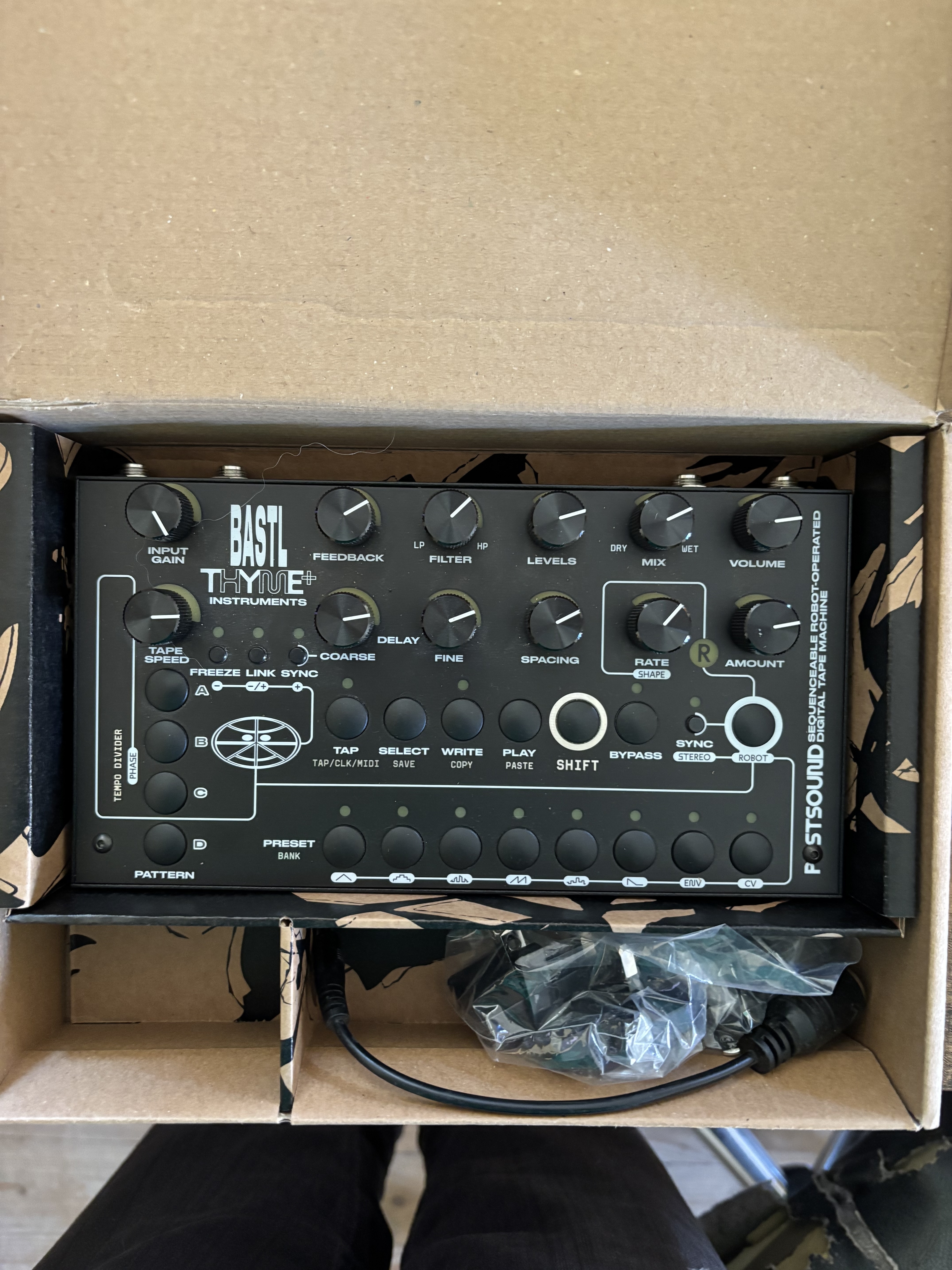 Pédale de delay assez folle, séquençable, contrôlable, feedbackable. Alim 9V standard.Envoi à votre charge.