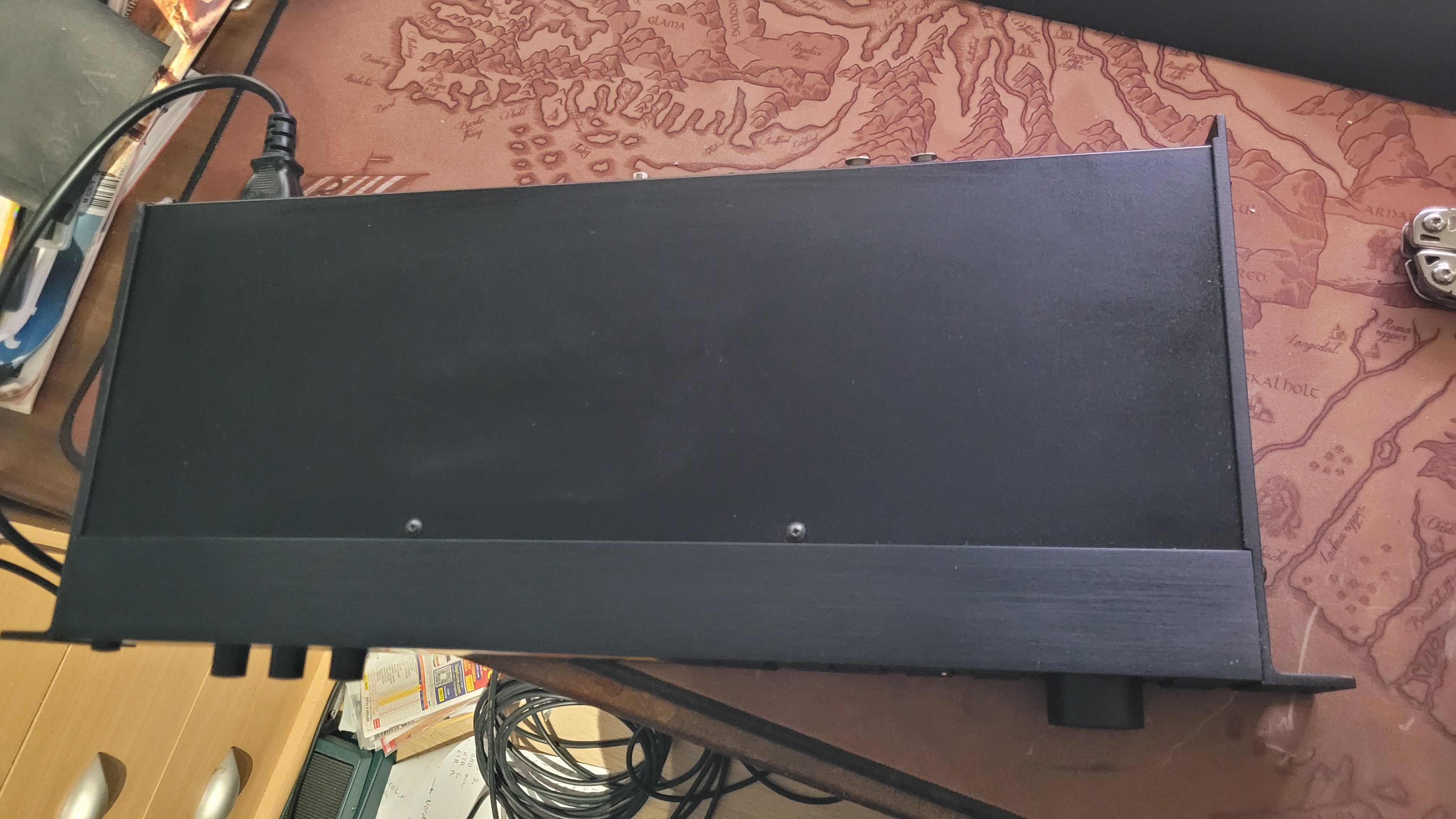 Reverb en excellent état, presque aucune rayure, tous les boutons et molette fonctionnent parfaitement. Seule la joue servant à racker la machine est cassée (voir photo) à l'arrière mais cela est sans conséquence sur le fonctionnement et le rackage de la machine.