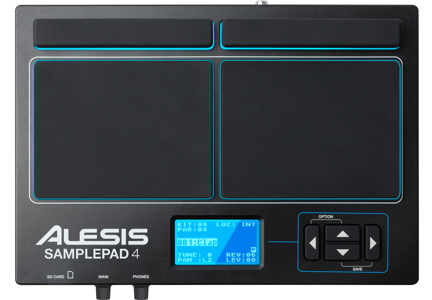 Le nouvel Alesis SamplePad 4 présente 4 pads en gomme entourés de LED bleues pour jouer n’importe quel son percussif et aussi déclencher des sons distants. Il dispose pour cela d’une entrée trigger double zone, d’un port USB MIDI, de sorties stéréo sur jacks, et d’une bibliothèque de 25 sons de percussions acoustiques et de batteries électroniques ainsi que 10 kits pré-configurés. Mais grâce au lecteur de carte SD/SDHC intégré, vous pourrez ajouter n’importe quel son, boucle ou kit, vous avez même la possibilité de faire transiter des samples sur votre Mac ou PC via le port USB sans retirer la carte.