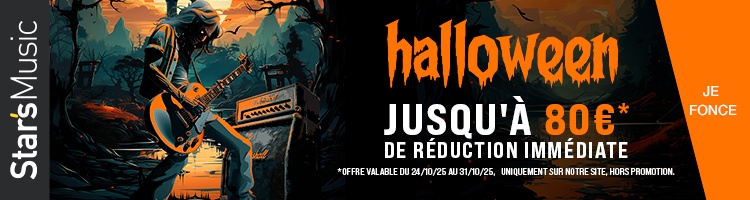 Pour célébrer Halloween comme il faut, nous avons troqué les traditionnels bonbons par des codes promo ! C'est l'occasion d'acheter vos instruments préférés à un prix très attractif : jusqu'à 80€ de réduction immédiate sur tout notre site internet (Hors promotions). Dépêchez-vous, ces offres sont valables jusqu'au 31 octobre 2025 !