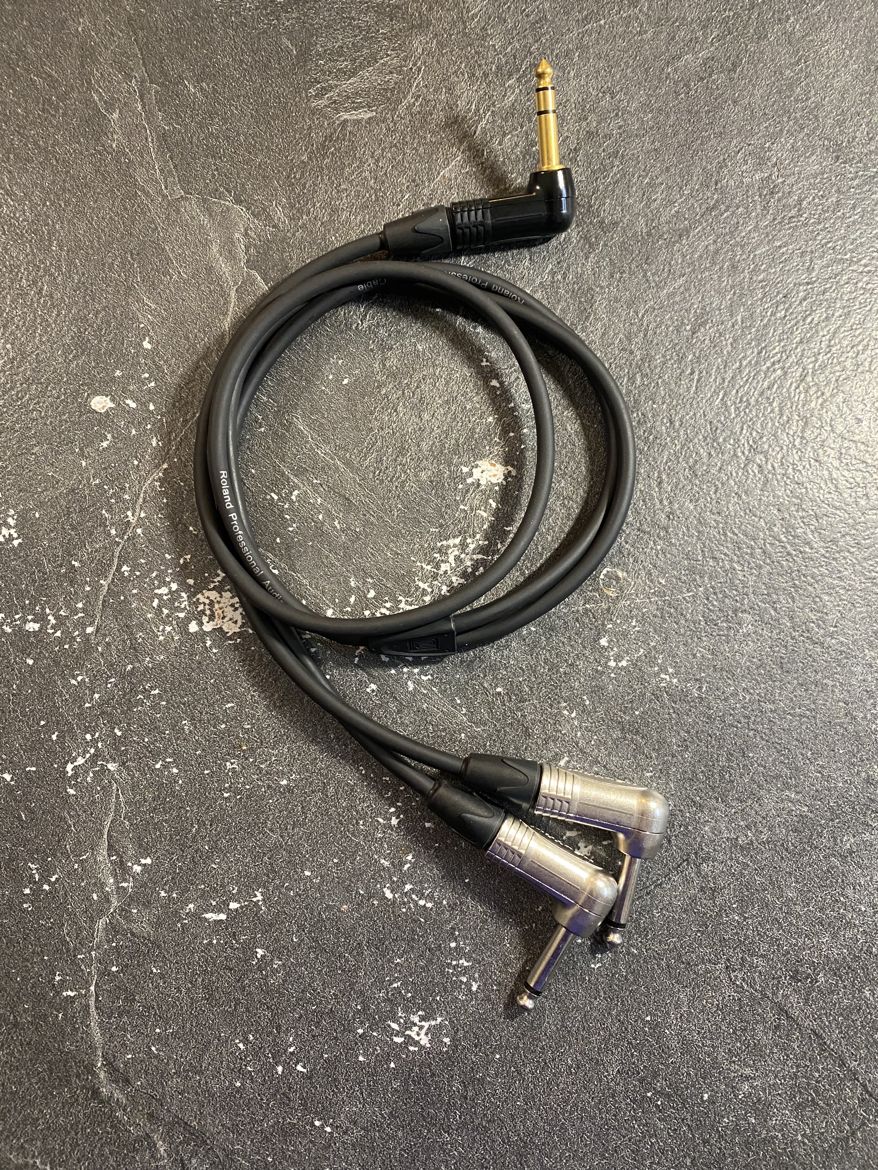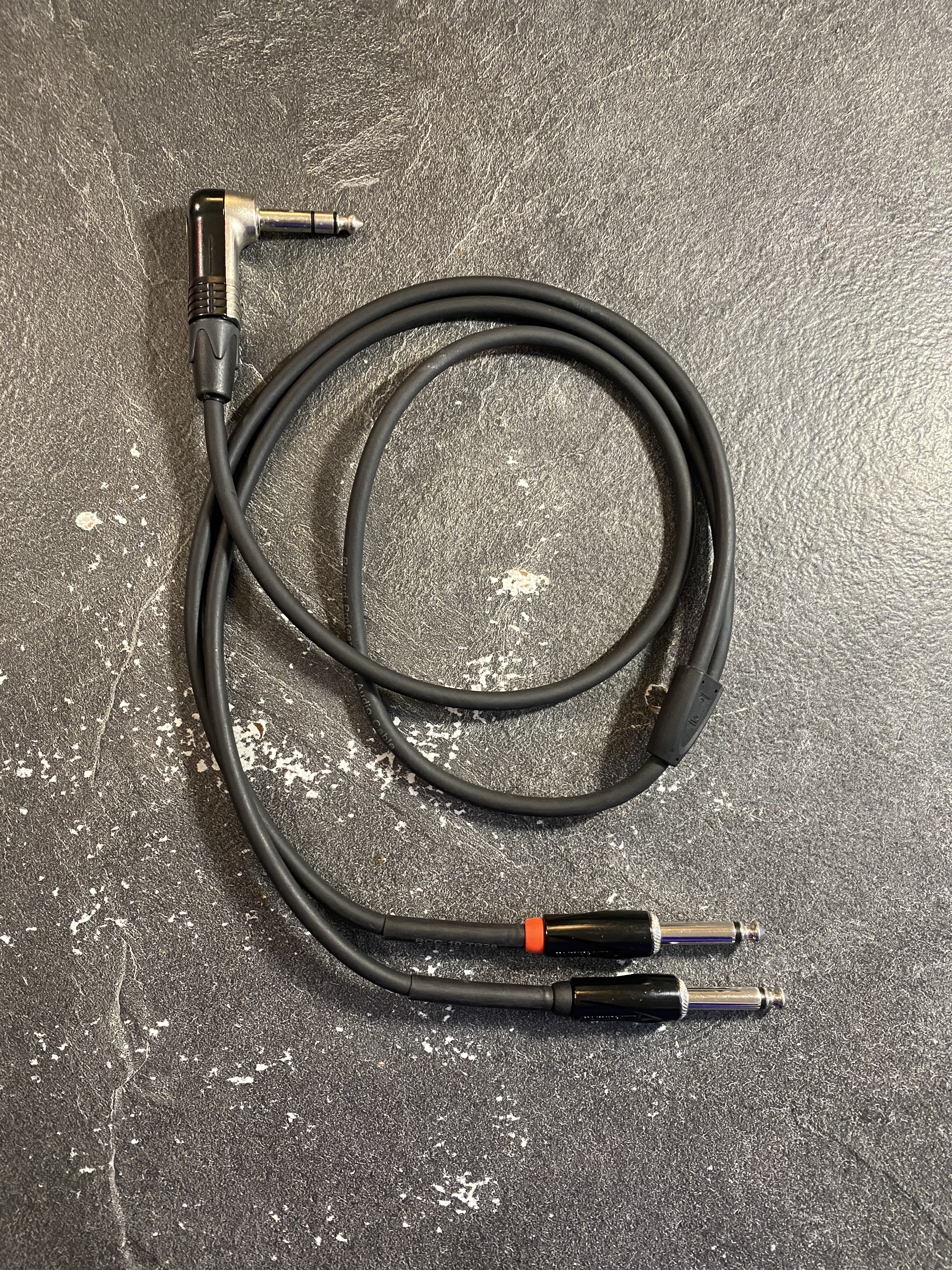 Je fournis deux cables en Y custom (x1 stéréo vers x2 mono) avec connectiques Neutrik.