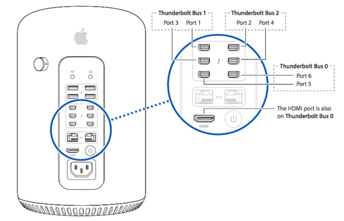 nombreuses connectiques ( 2 ethernet gigabit - 1 HDMI - 6 ports TB2 - 4 USB 3.0 - audio I/O minijack )
