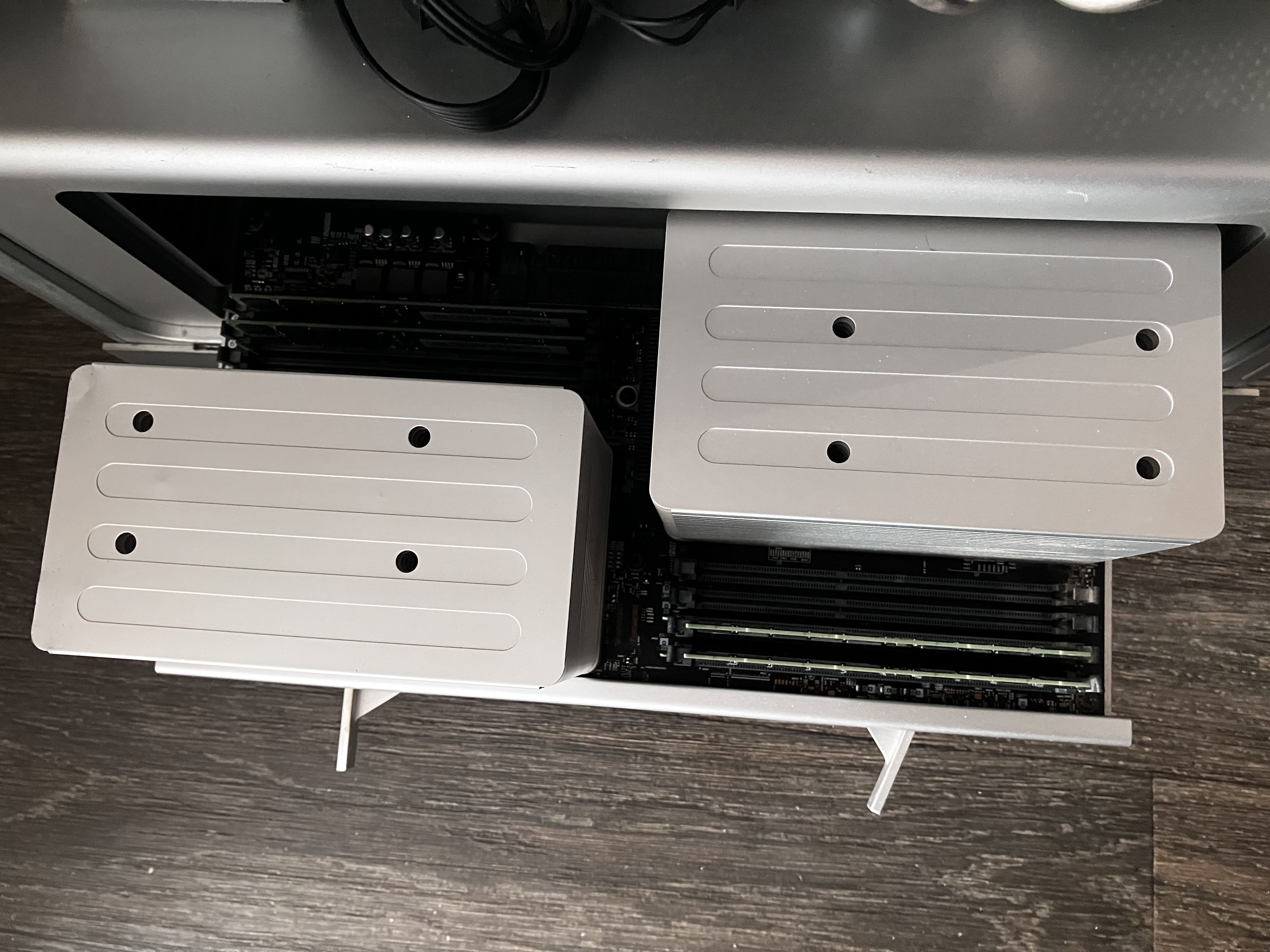- 2x carte PCIe pour SSD NVME (jusque 2x2To en SSD Nvme chacun), voir photo